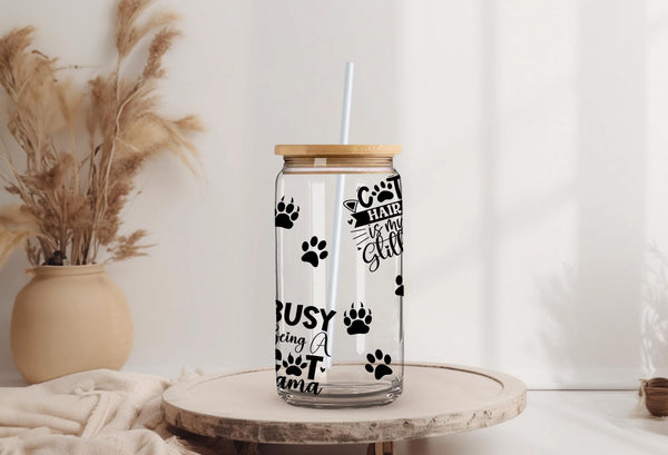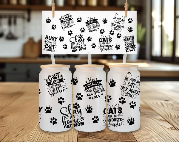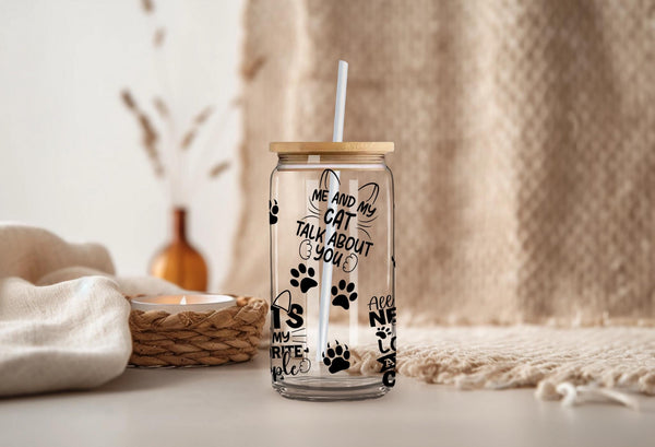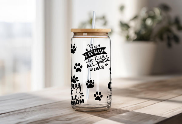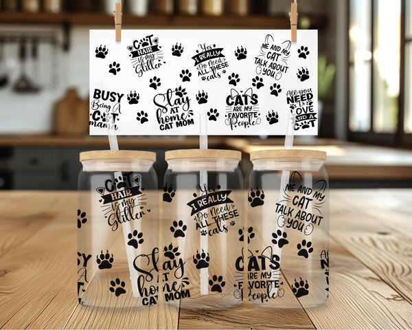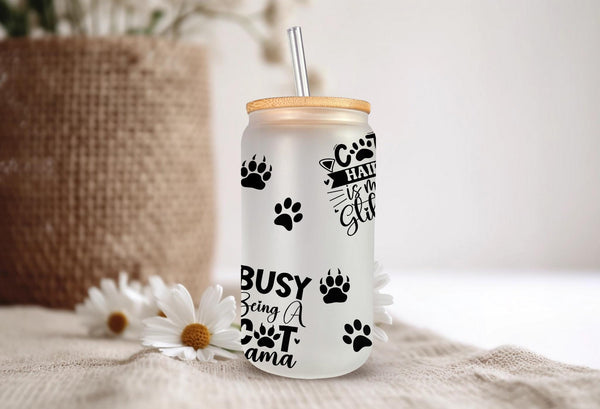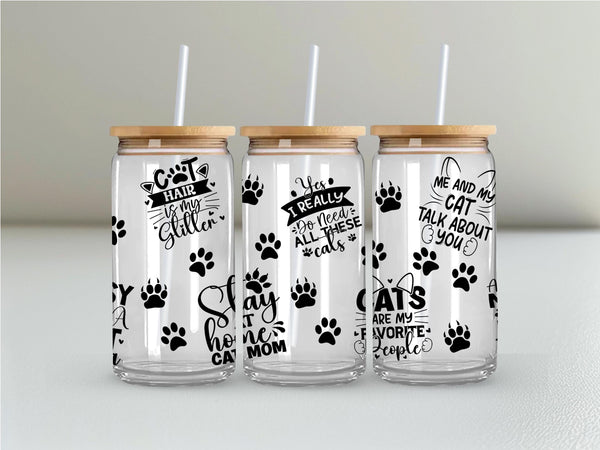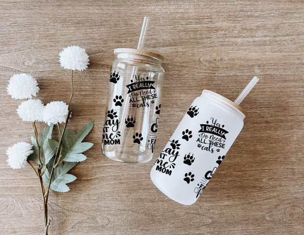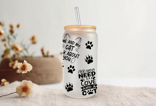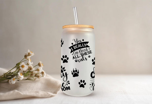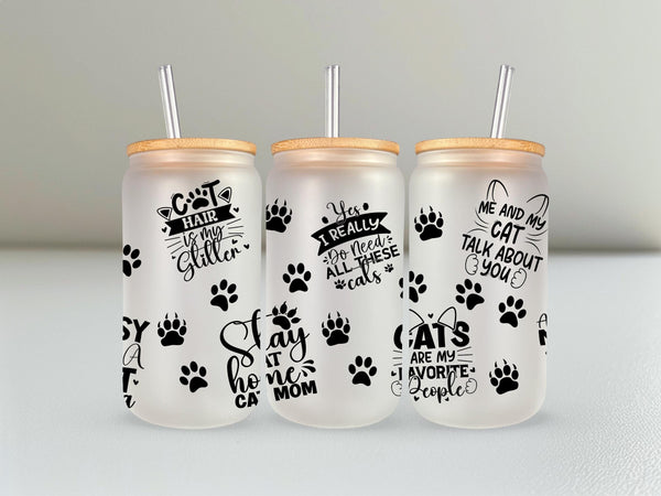 Capture your love for feline friends with our Cat Lover Glass Cup! Featuring charming cat lover sayings, this 16oz cup comes in clear or frosted and is perfect for enjoying your favorite beverage while showing off your love for cats. Upgrade your drinkware collection and express your passion for cats today!