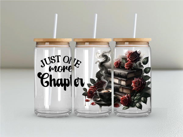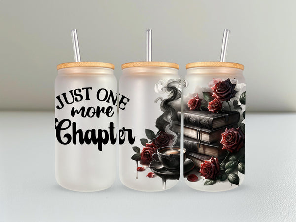 For the dedicated reader who can never put the book down! This stunning can-shaped glass tumbler perfectly captures the irresistible pull of a good story with the classic bookworm mantra: "Just One More Chapter."