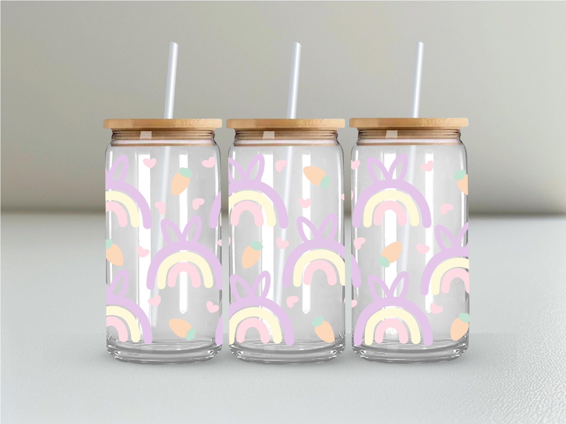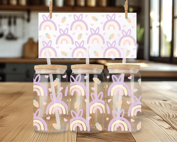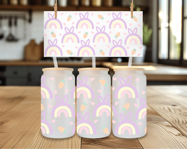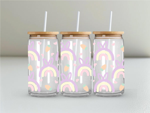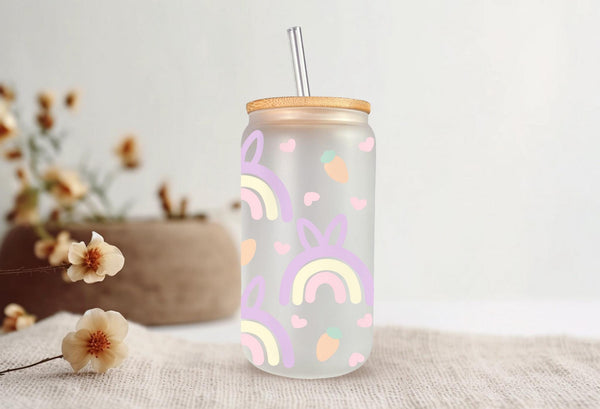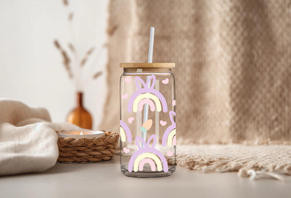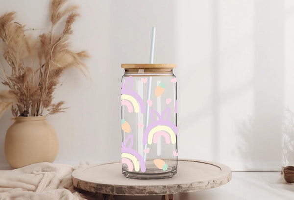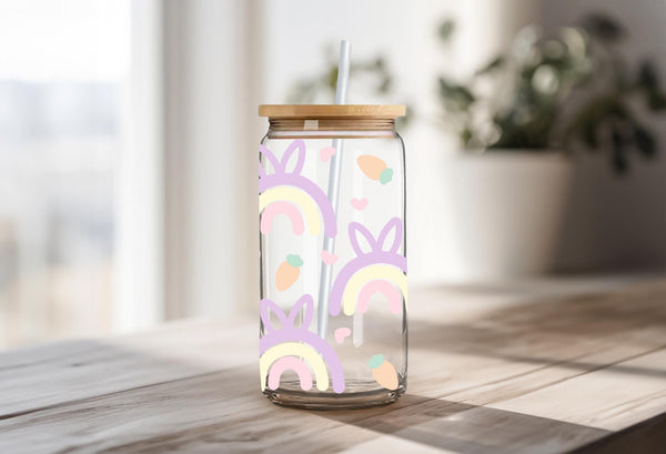 Add a pop of color to your Easter table with this quirky pastel rainbow glass cup! With a cute bunny ears pattern and a generous 16oz size, it's perfect for sipping on your favorite beverages. Hop to it and grab one now!