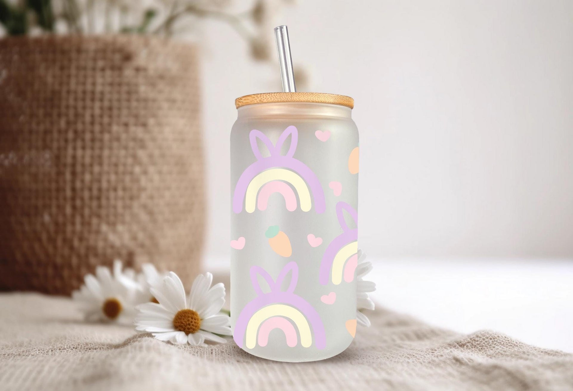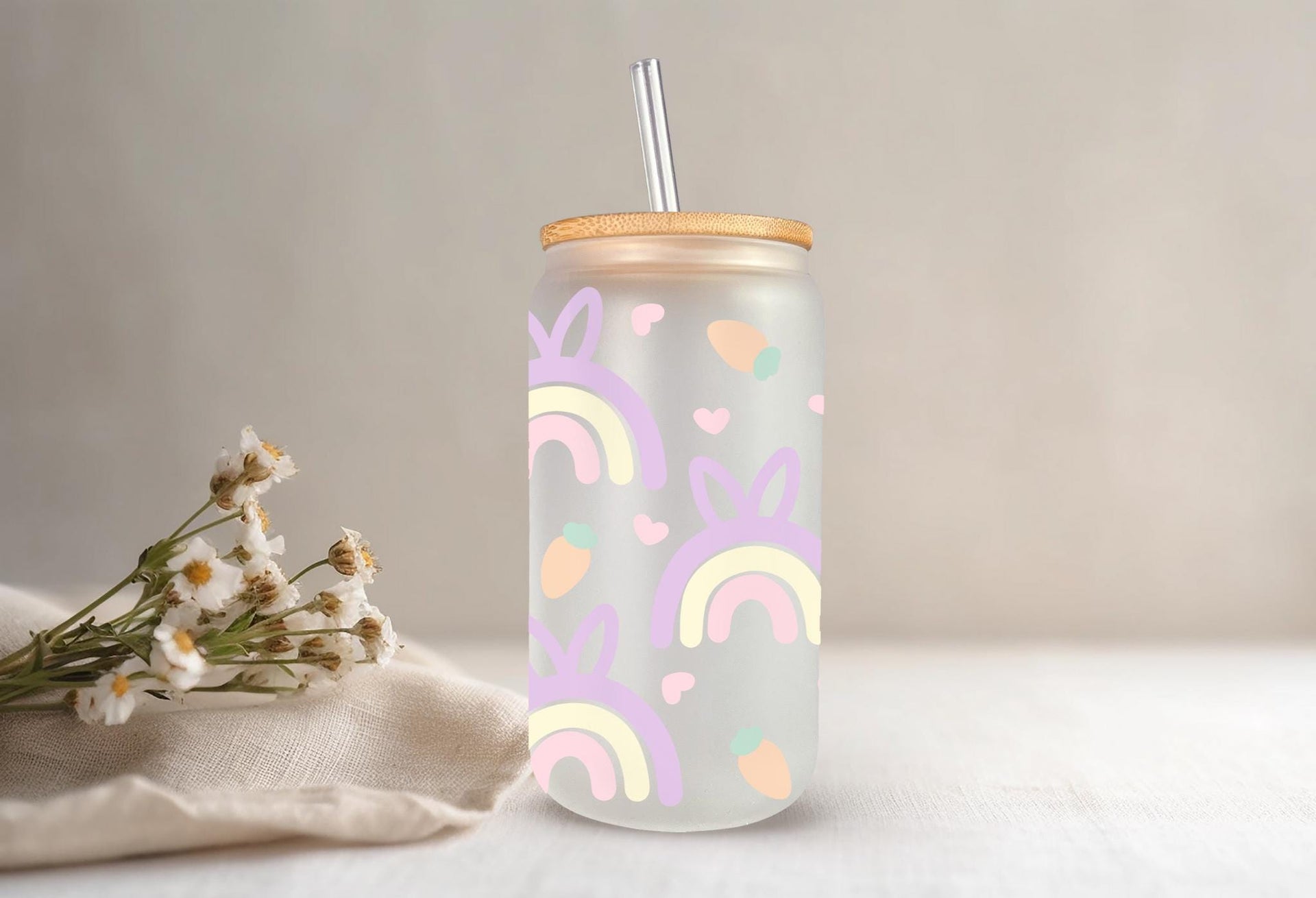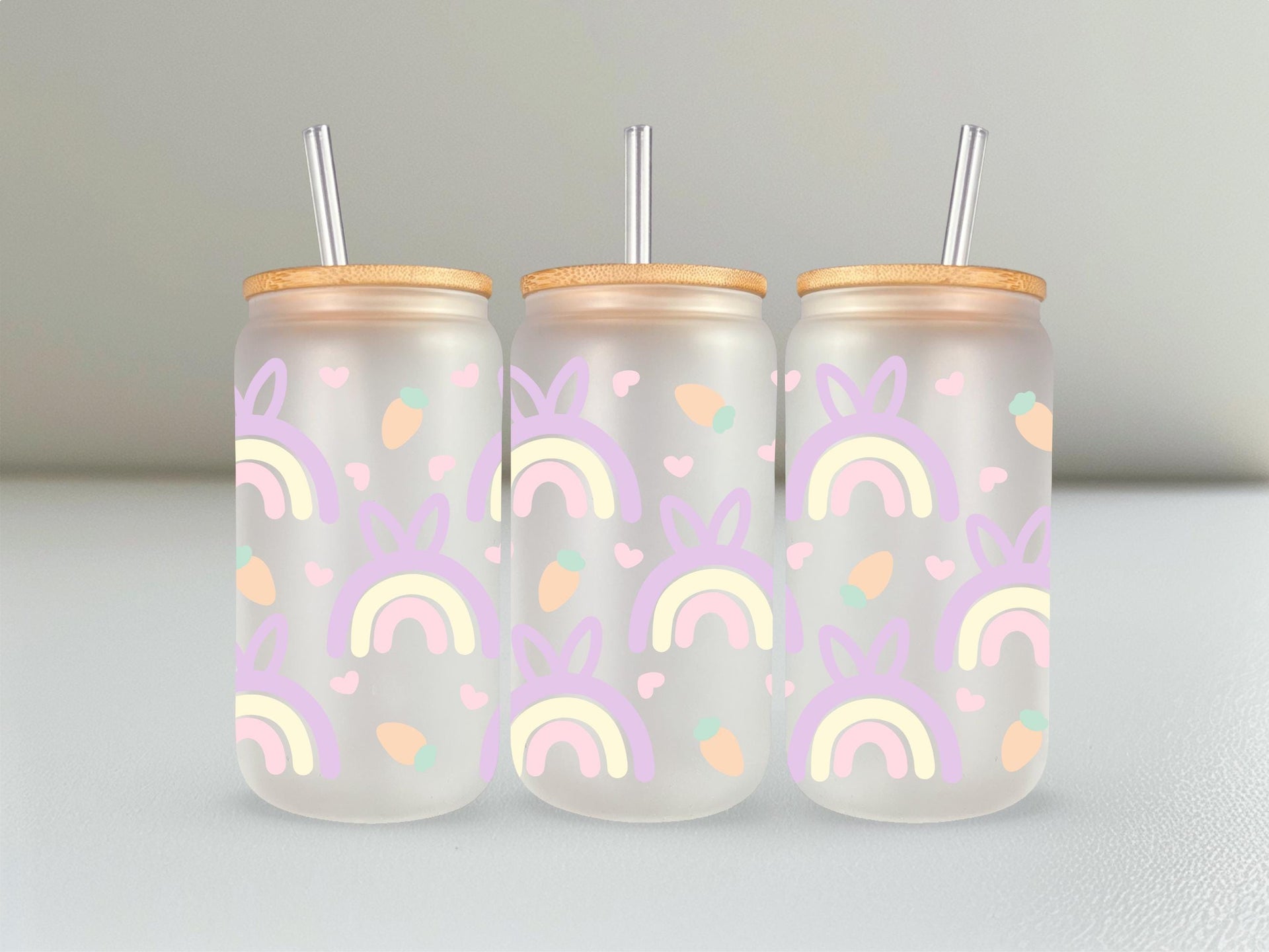Add a pop of color to your Easter table with this quirky pastel rainbow glass cup! With a cute bunny ears pattern and a generous 16oz size, it's perfect for sipping on your favorite beverages. Hop to it and grab one now!