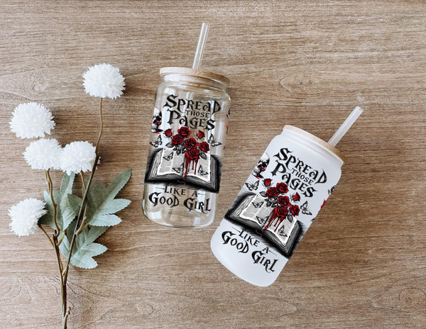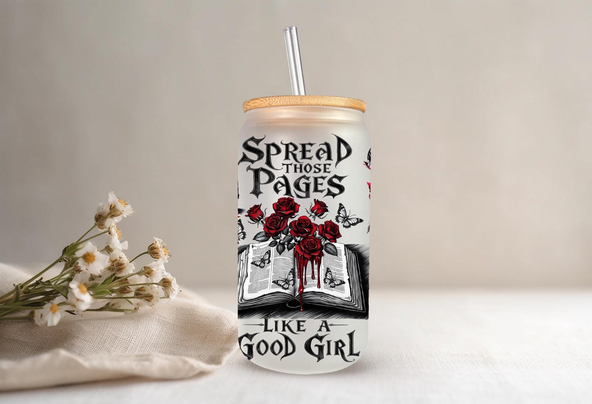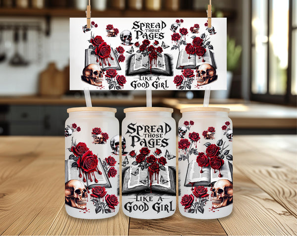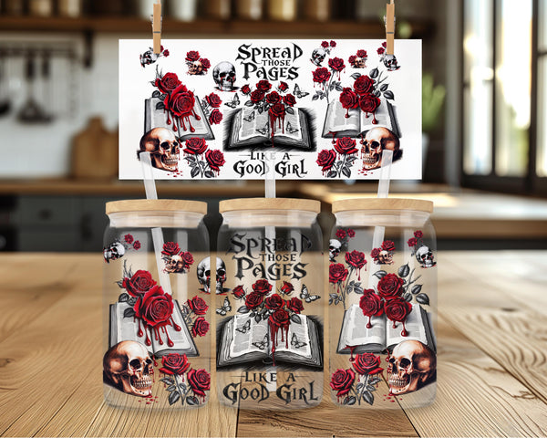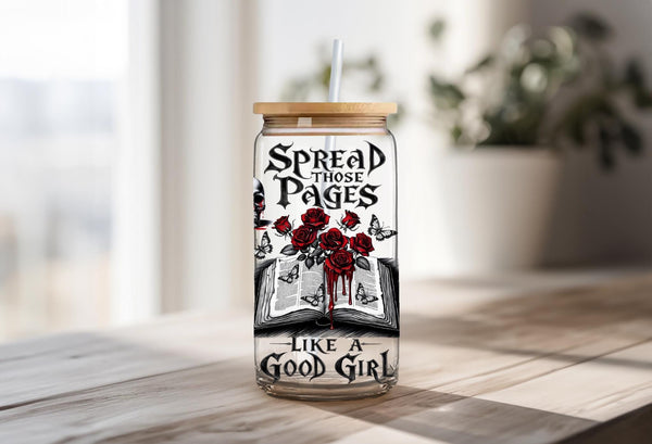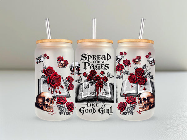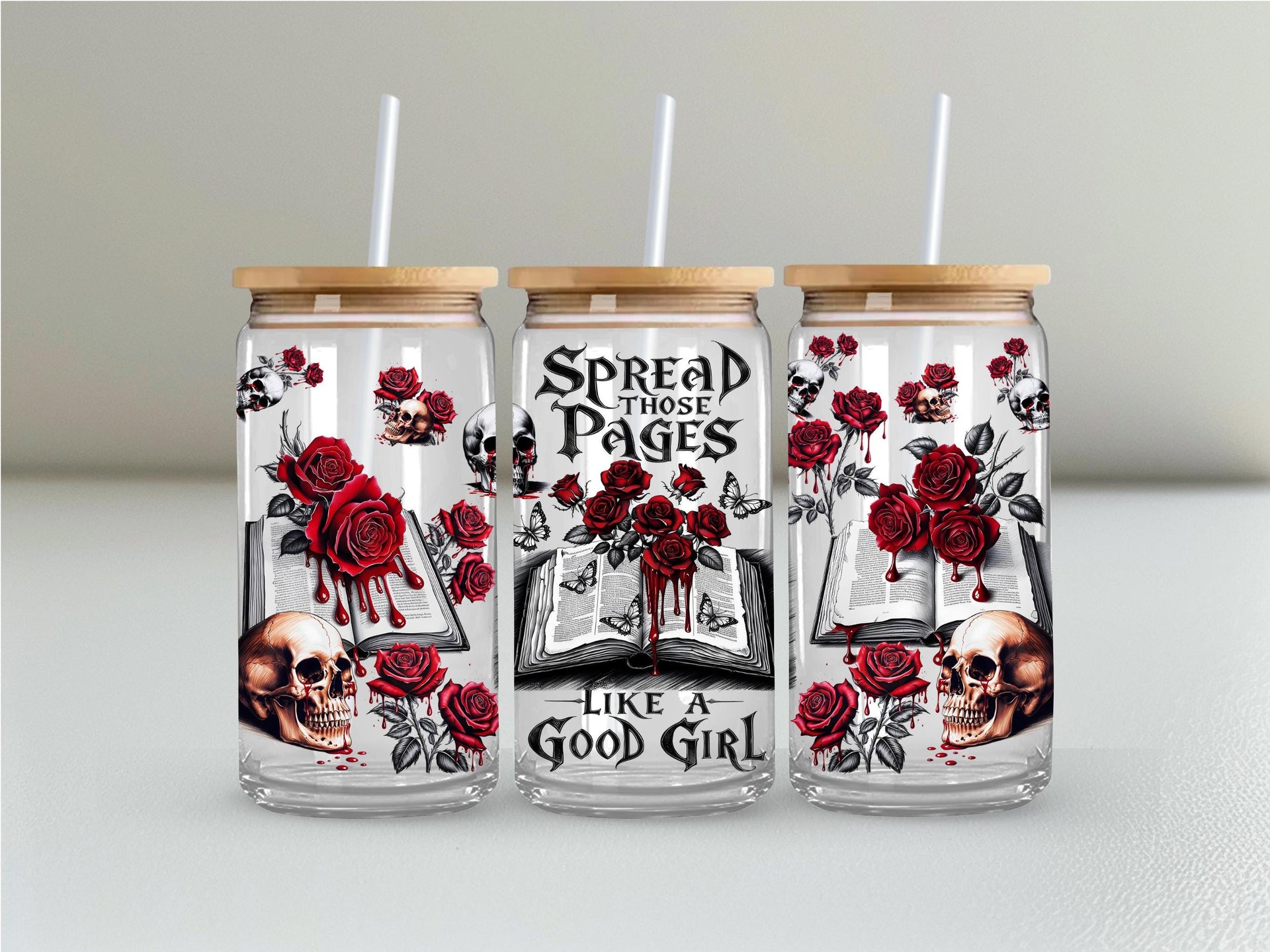 Gothic Skull & Roses Can Glass Tumbler – Dark Romance Bookish Gift