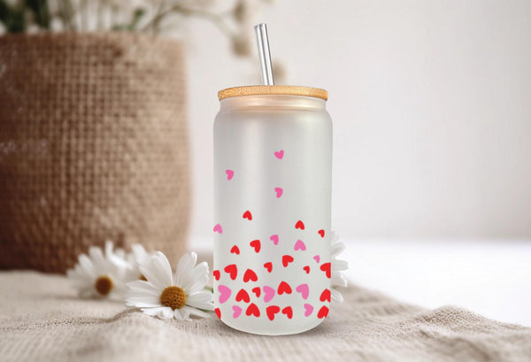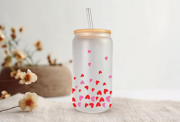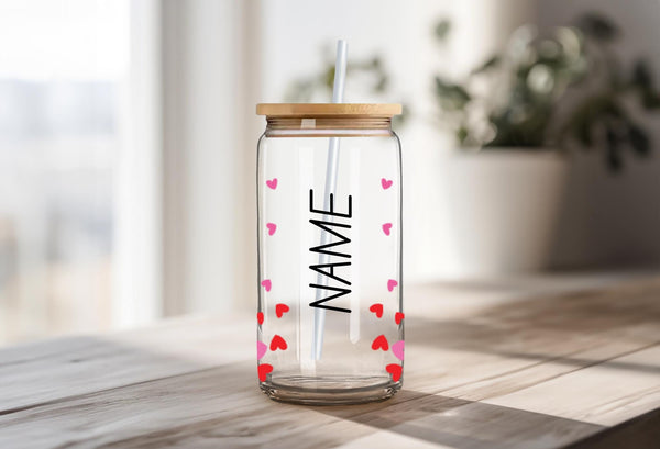 Heart Glass Tumbler: Personalized Iced Coffee Cup with Lid & Straw