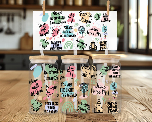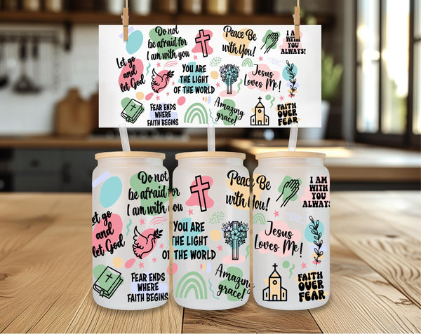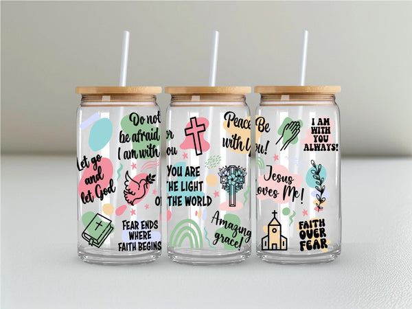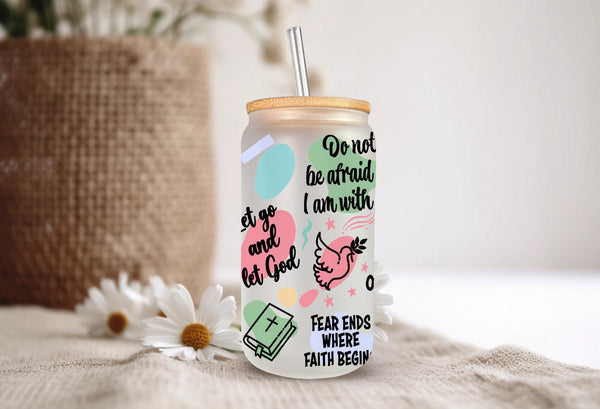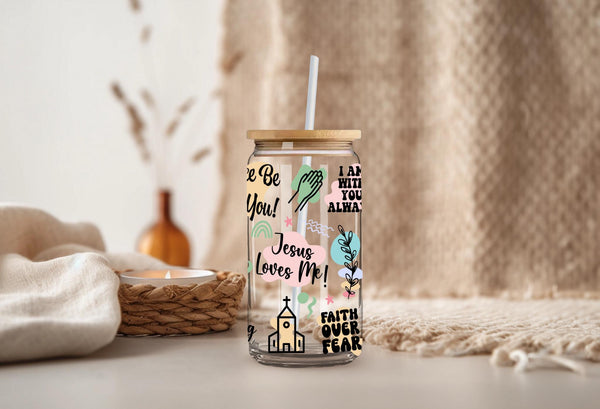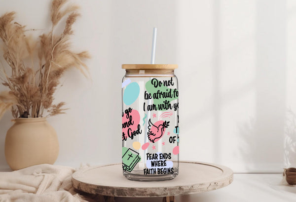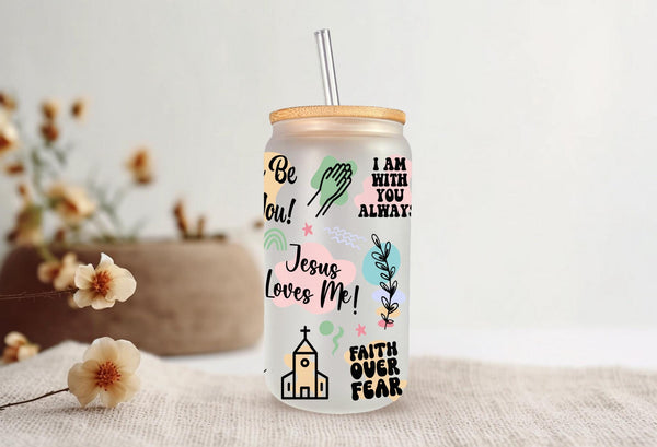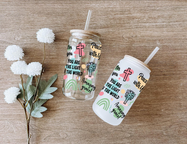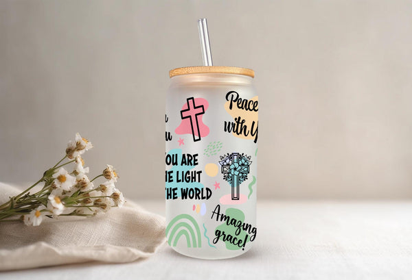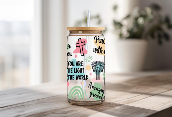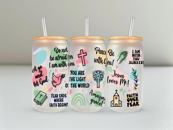 Experience daily inspiration with our Christian Sayings Glass Cup. Featuring uplifting Christian sayings, this 16oz glass cup is available in clear or frosted, perfect for any drink. Start your day with a positive message and enjoy the added touch of faith to your beverage.