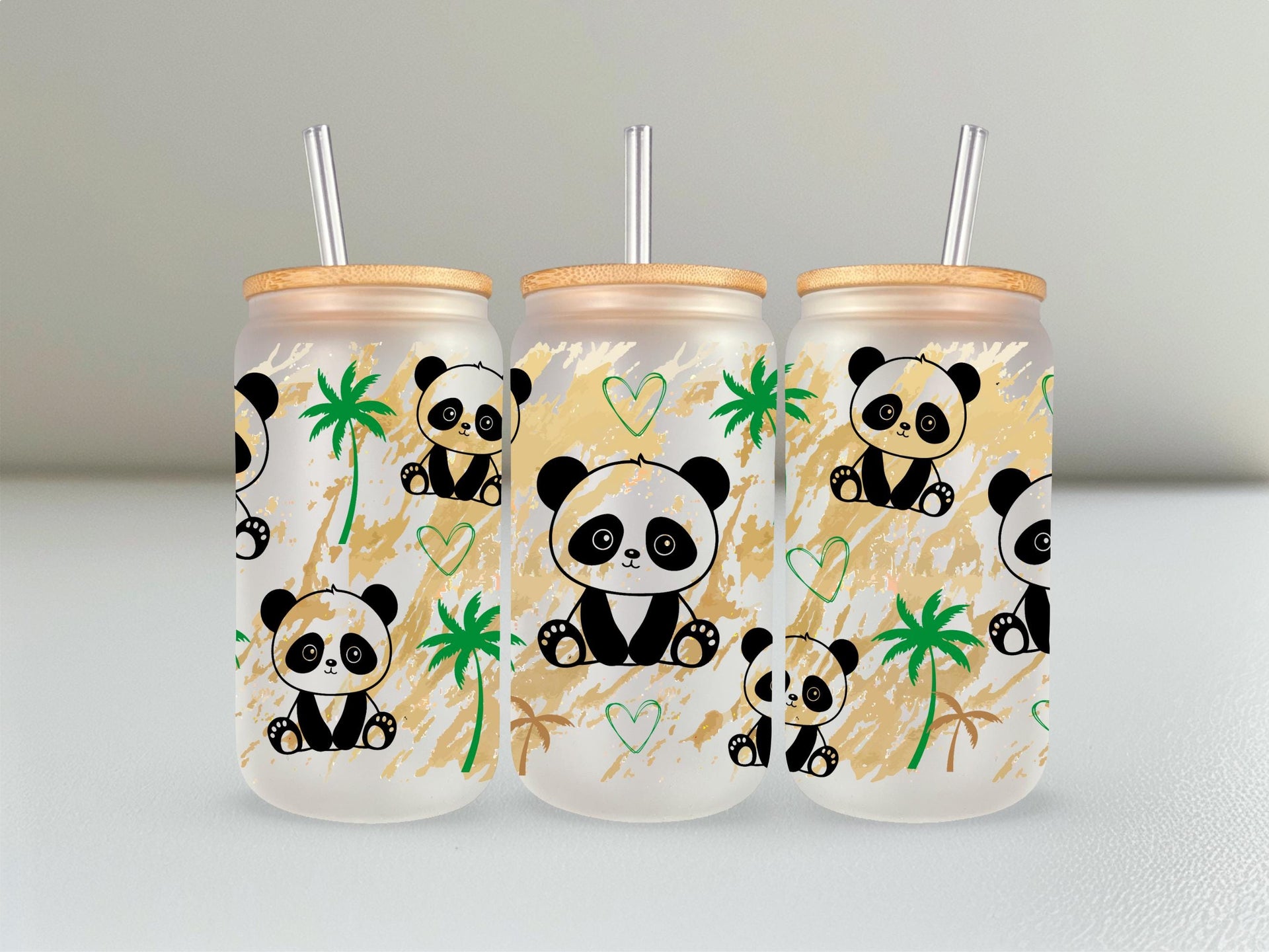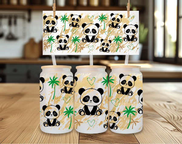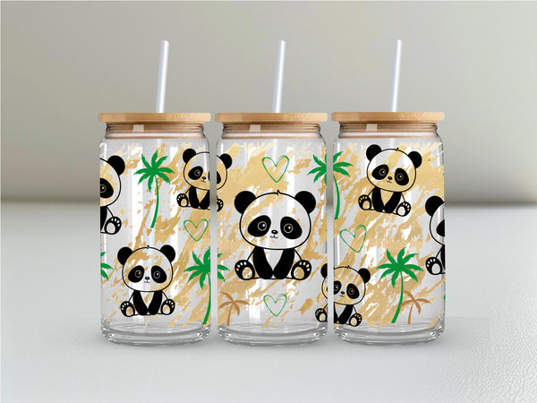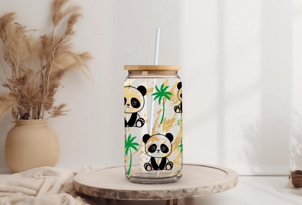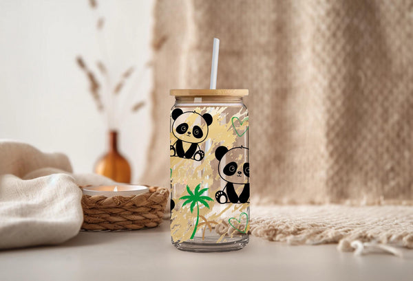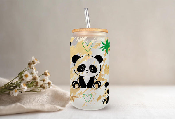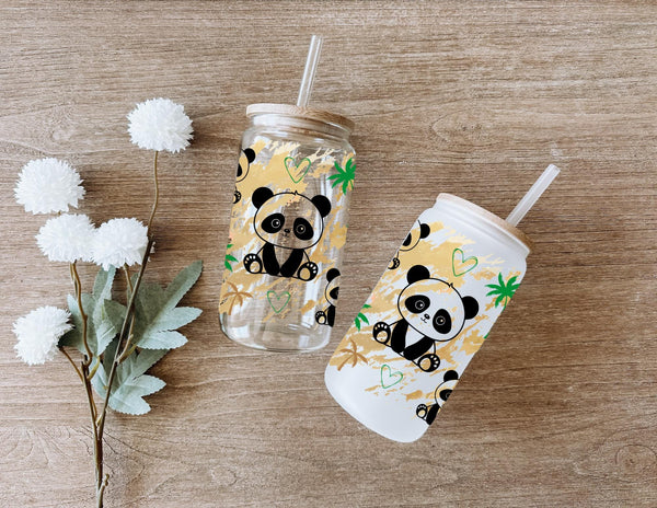 Experience sipping your favorite drink in our Panda Glass Cup! With a capacity of 16oz, this clear or frosted glass cup features adorable pandas that will surely bring joy to your day. A fun and unique addition to your kitchenware collection. Get yours now and feel the panda love!