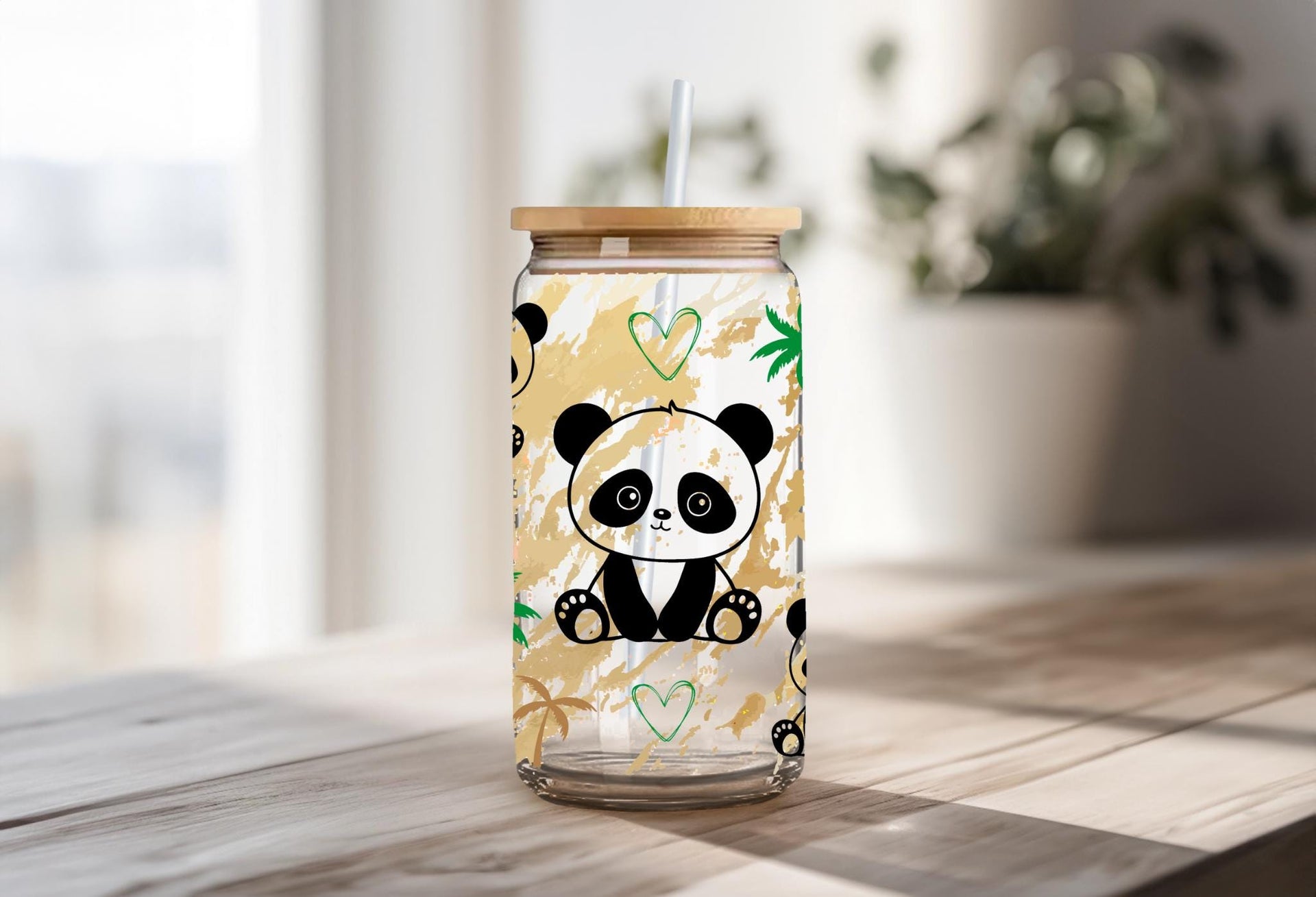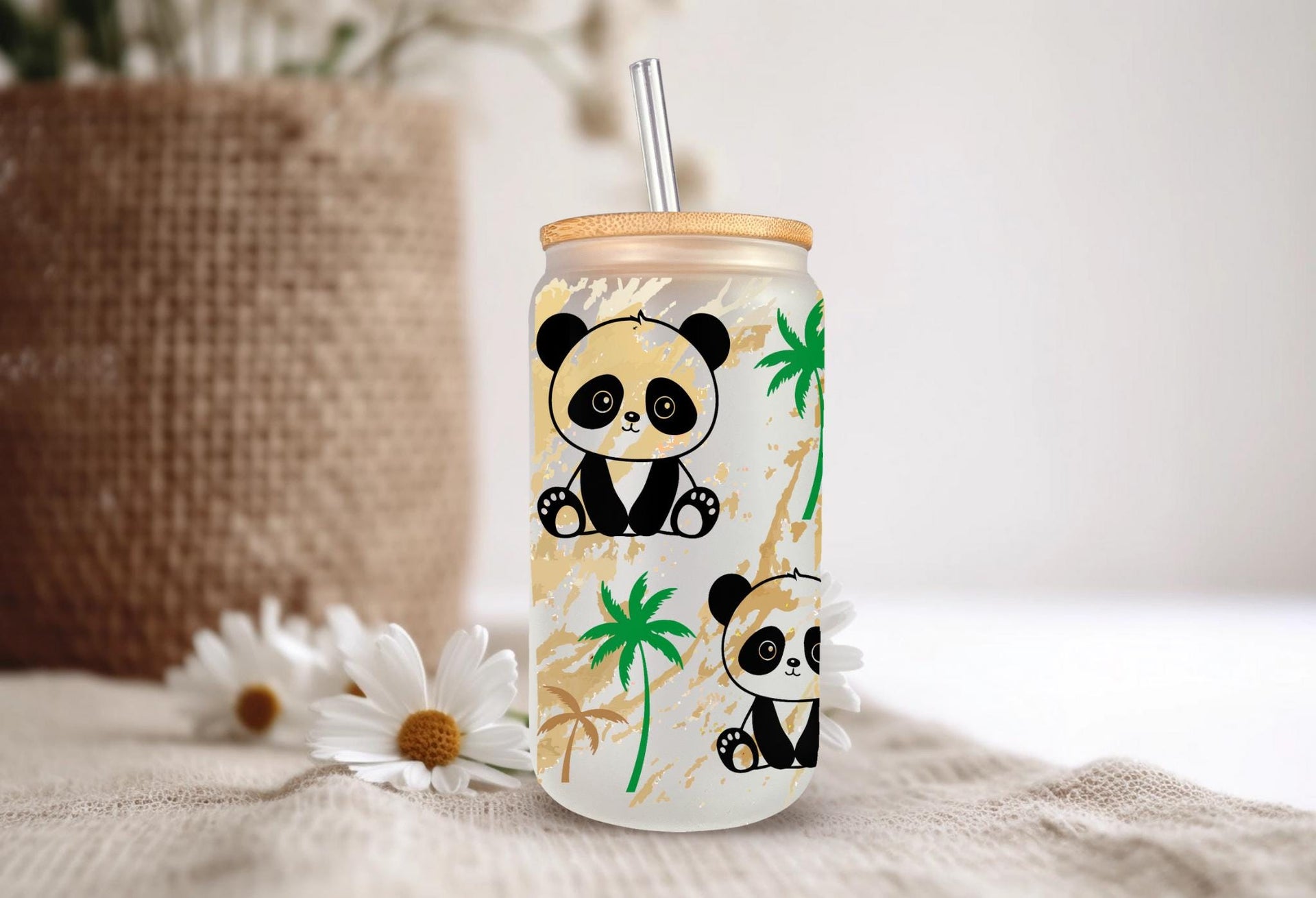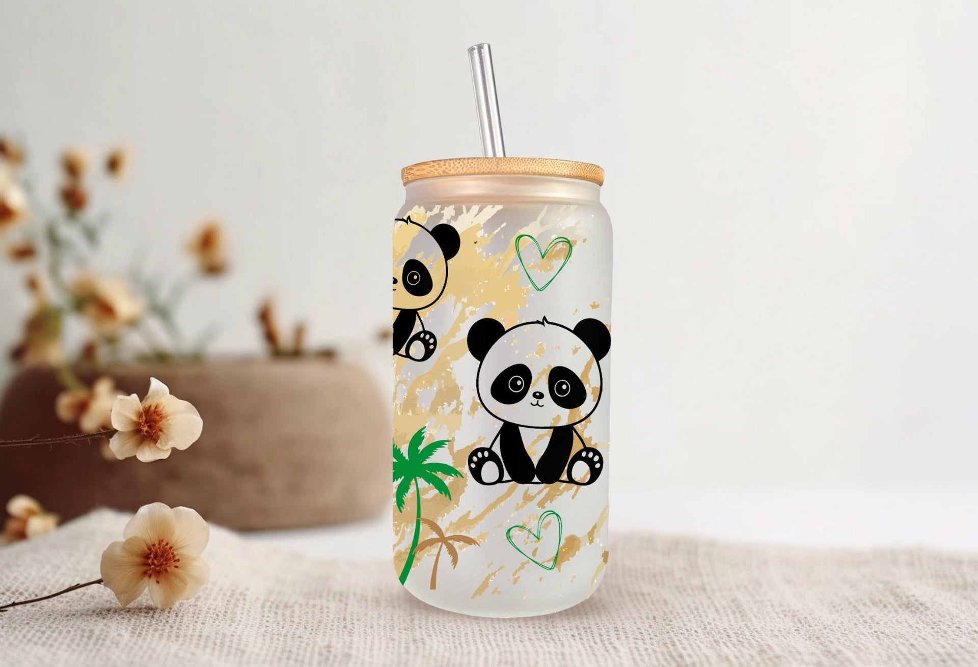 Experience sipping your favorite drink in our Panda Glass Cup! With a capacity of 16oz, this clear or frosted glass cup features adorable pandas that will surely bring joy to your day. A fun and unique addition to your kitchenware collection. Get yours now and feel the panda love!