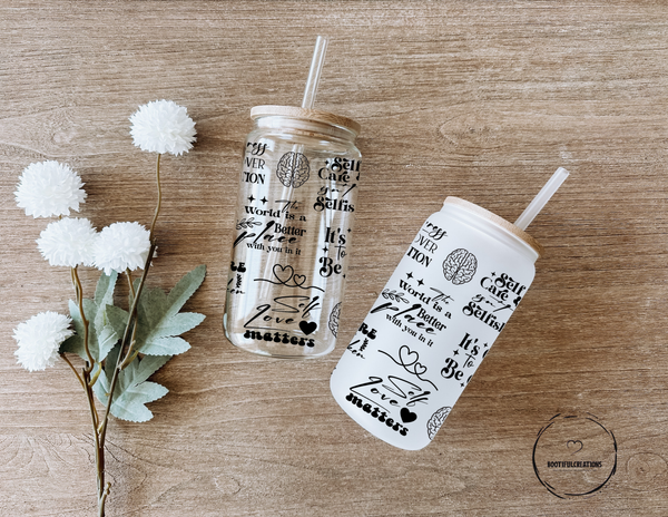 Sip your way to better mental health with our 16oz glass cup! Choose from clear or frosted and be inspired by the mental health sayings engraved on the cup. Embrace daily positivity with each sip.
