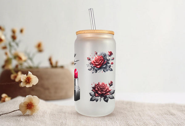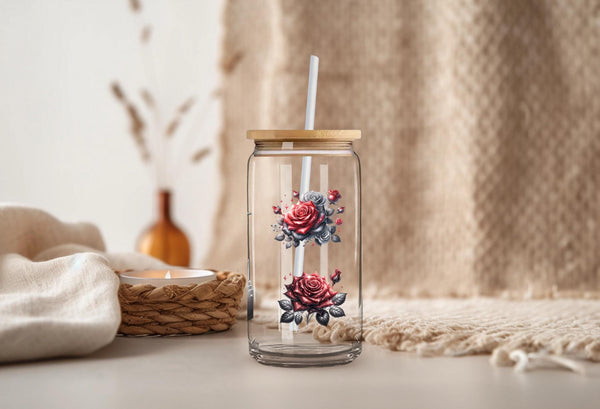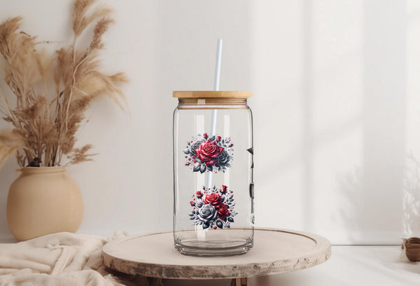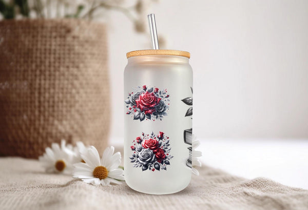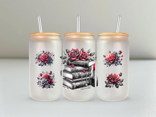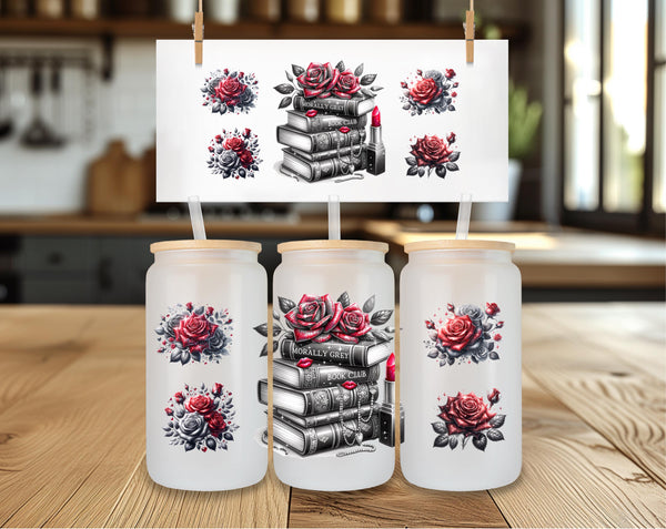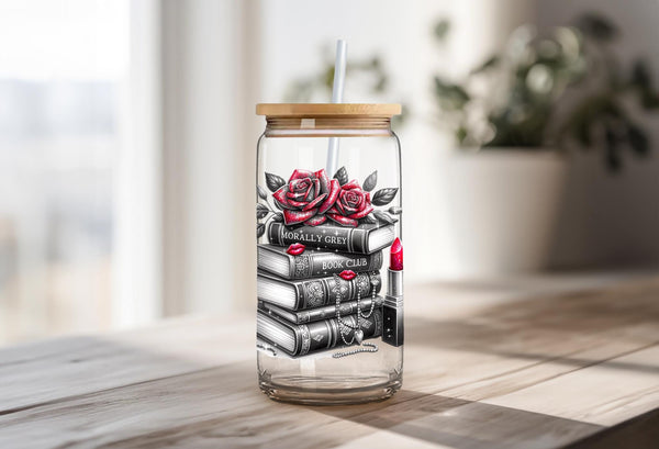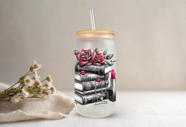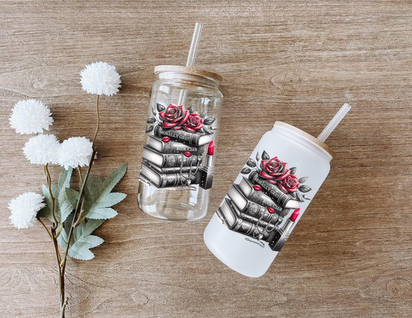 For the sophisticated reader who loves a little darkness with their romance! This elegant can-shaped glass tumbler features a dramatic design combining classic gothic romance elements with a modern bookworm twist. It's the perfect companion for your latest dark fantasy or spicy contemporary read.