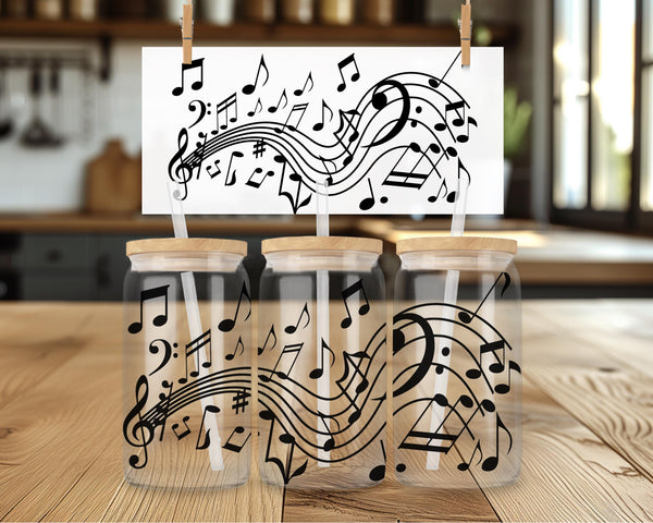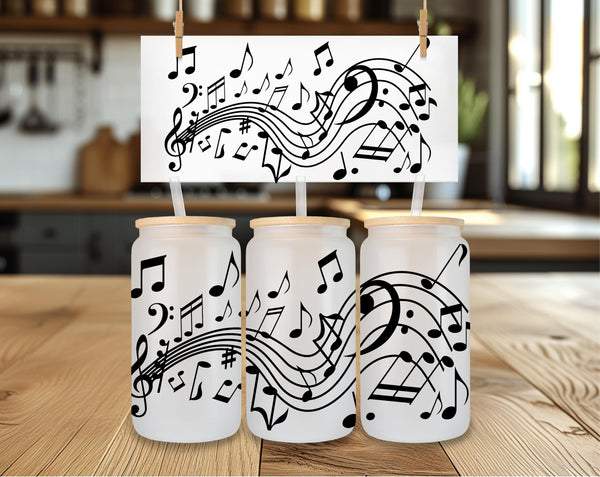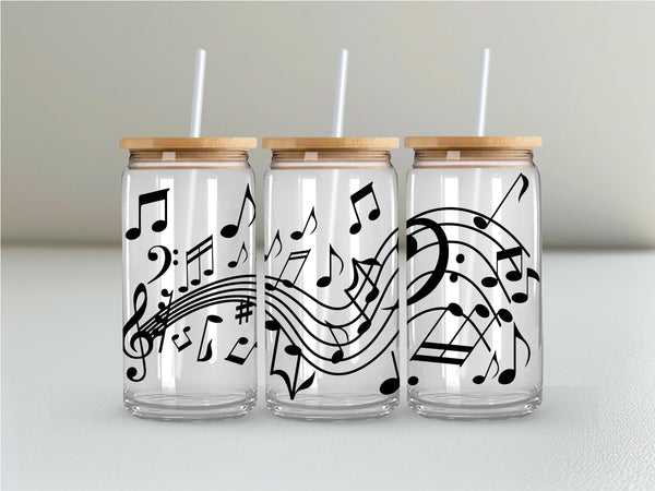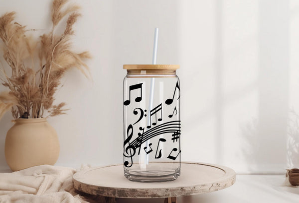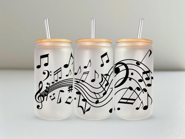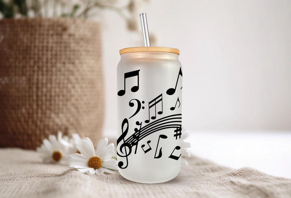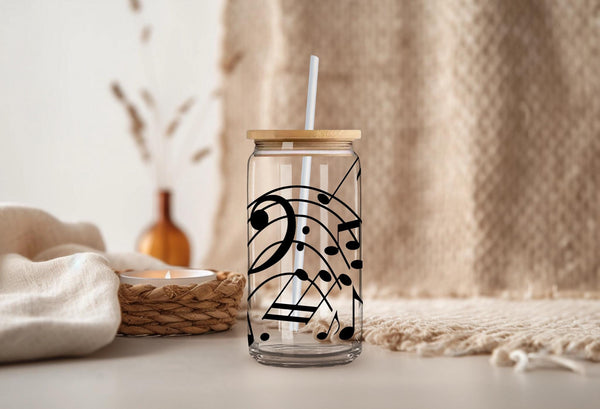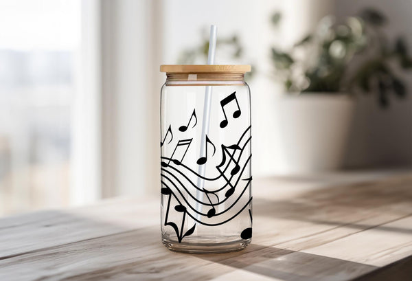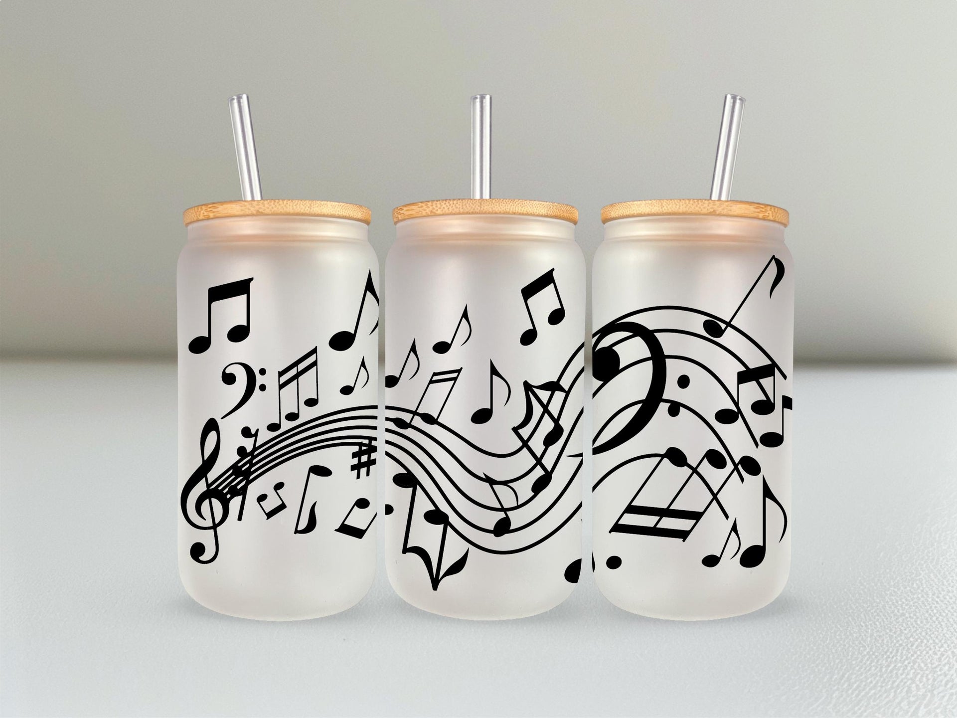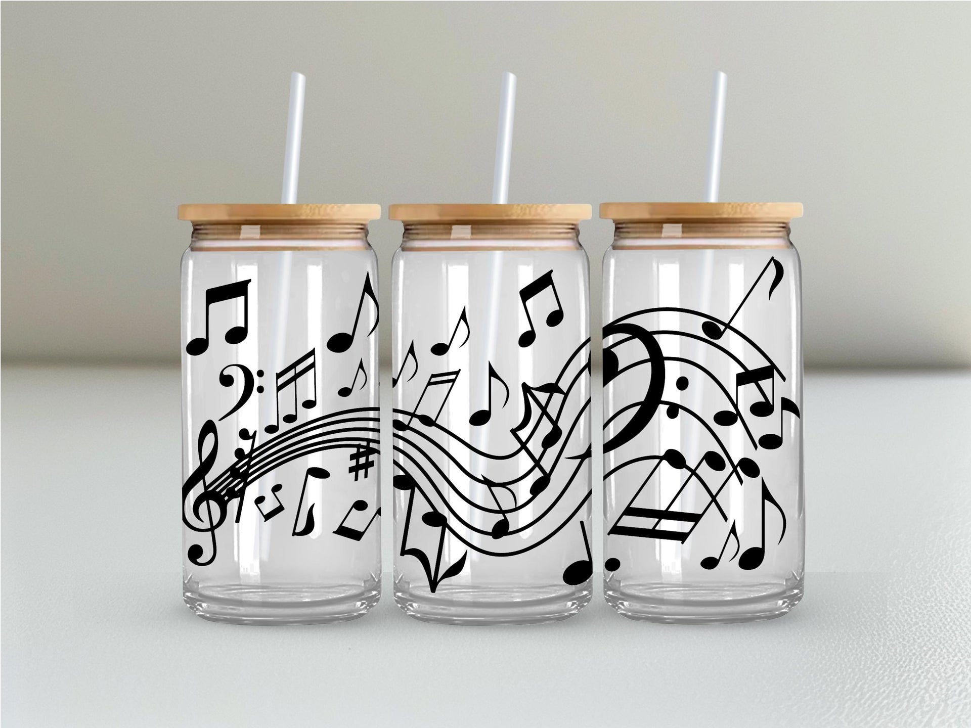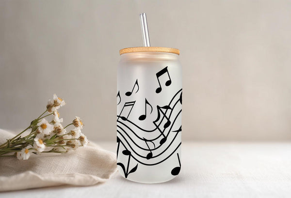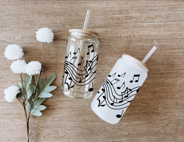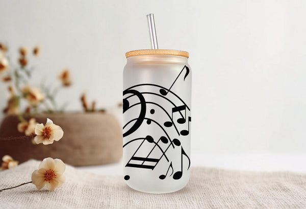 Sip in style with our Musical Notes Glass Cup! This 16oz cup features a whimsical design of musical notes on a clear or frosted glass. Perfect for music lovers, it adds a touch of charm to any drink. Elevate your drinking experience with this unique and functional cup.
