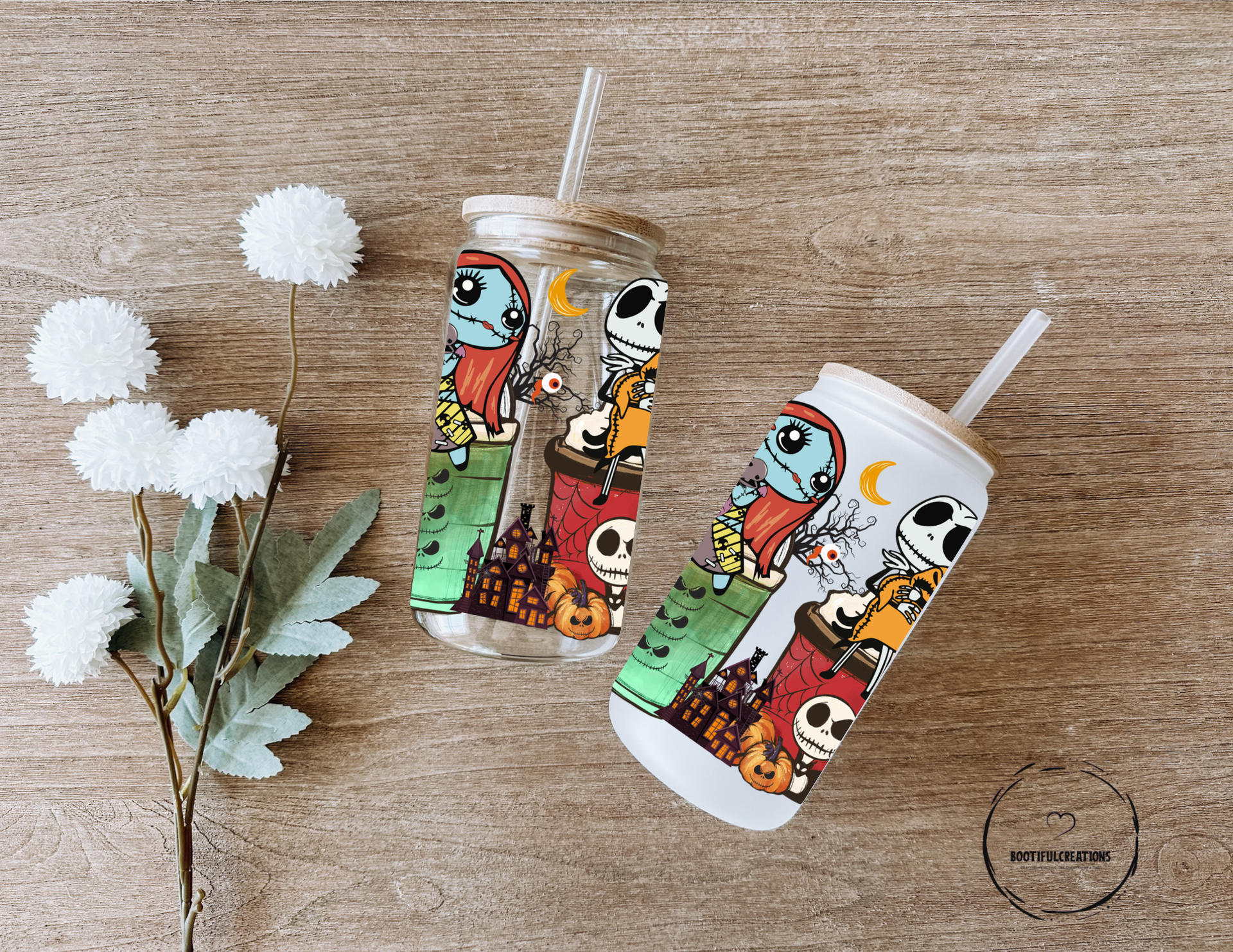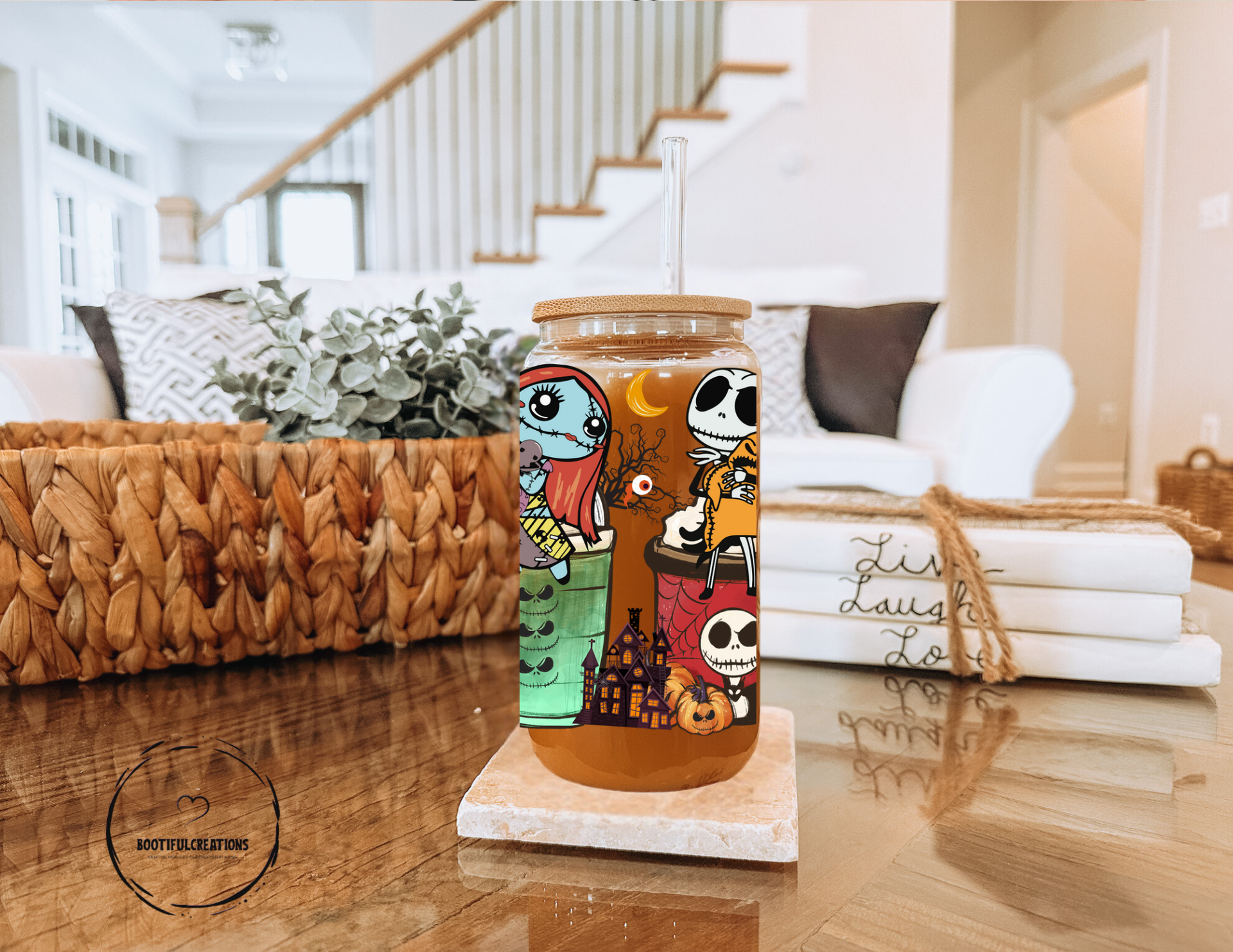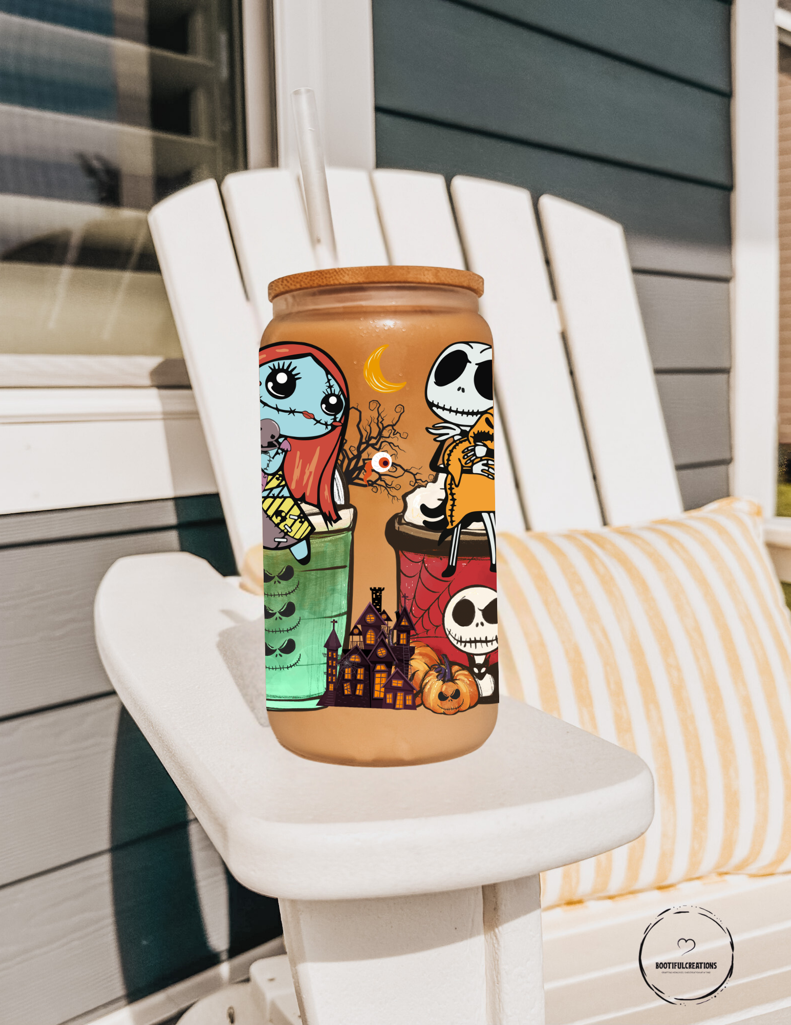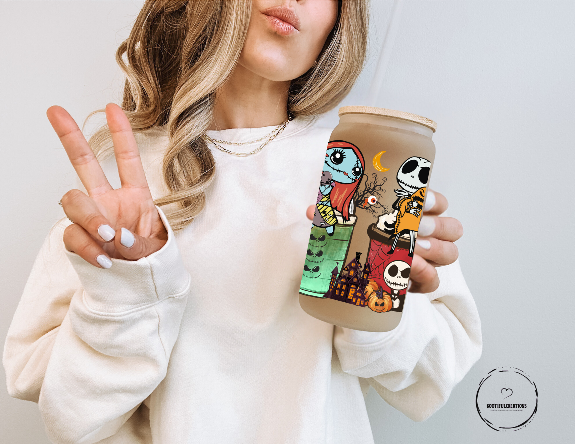 Transform your morning routine with our Nightmare Before Christmas Glass Cup! Featuring iconic characters such as Jack, Sally, and Oogie Boogie, this stunning 16oz glass cup is perfect for all your coffee needs. Choose between clear or frosted and add some spooky fun to your drinkware collection.
