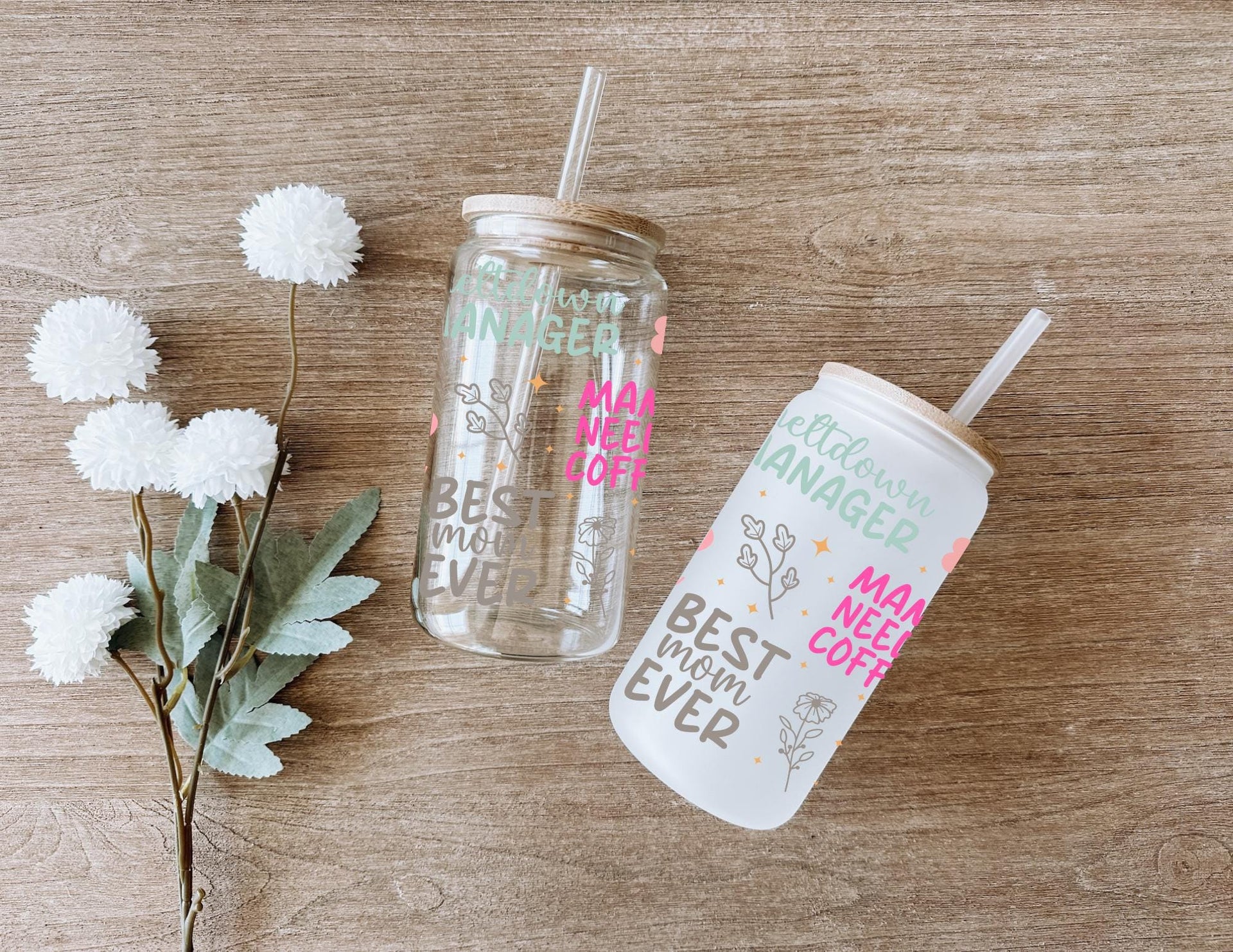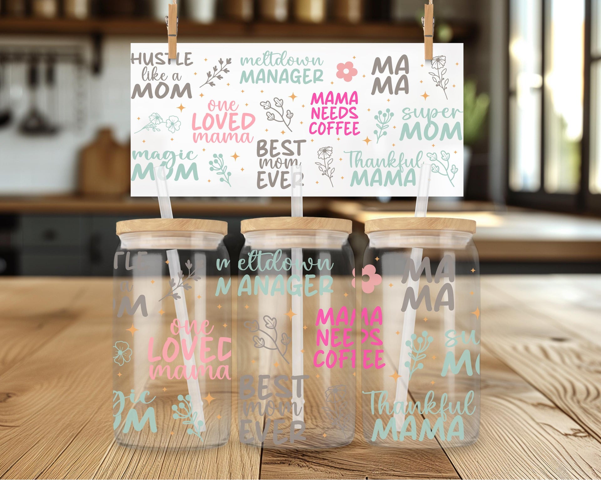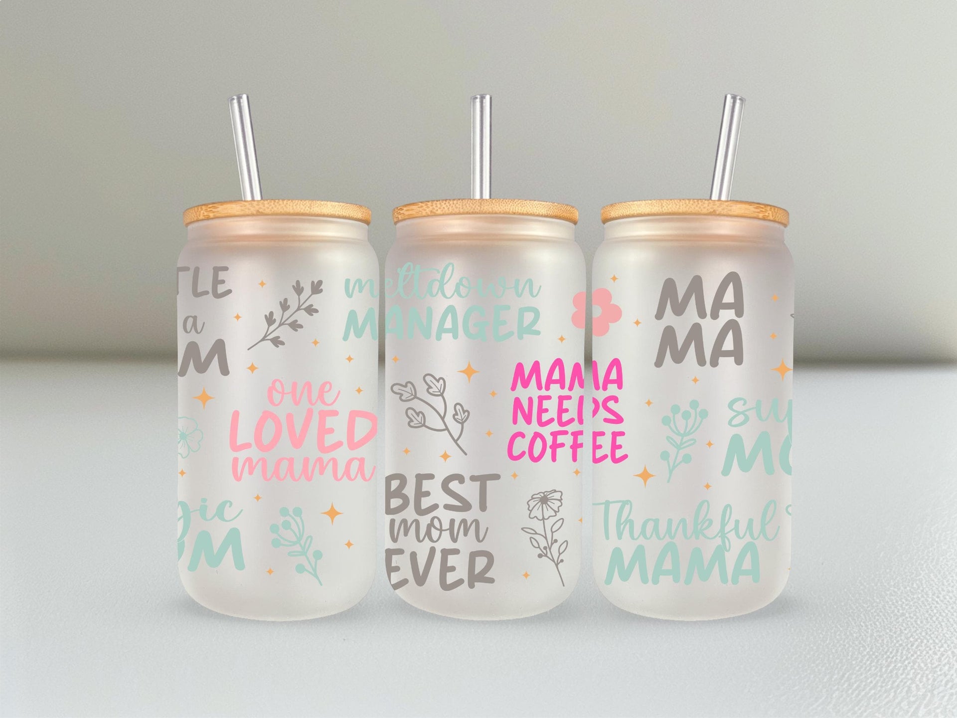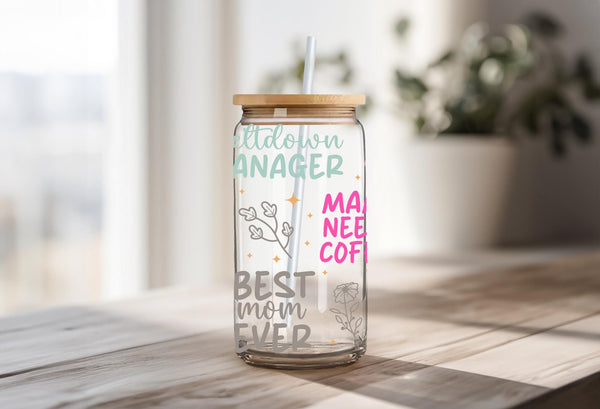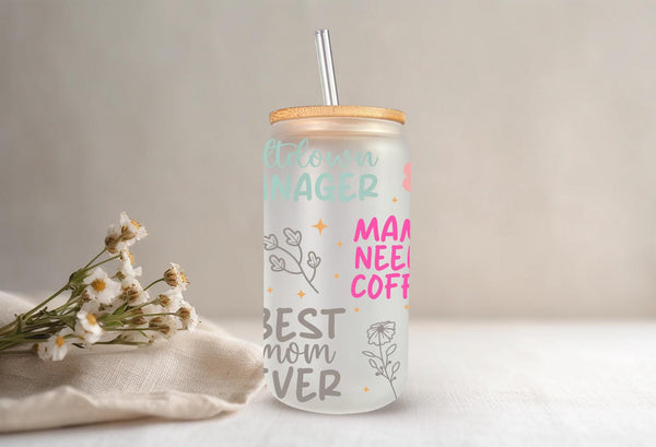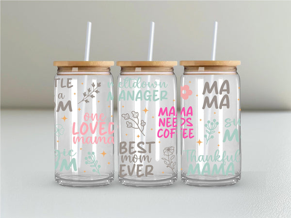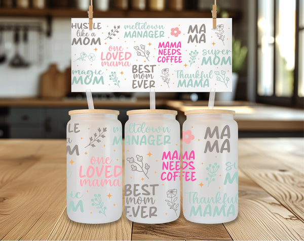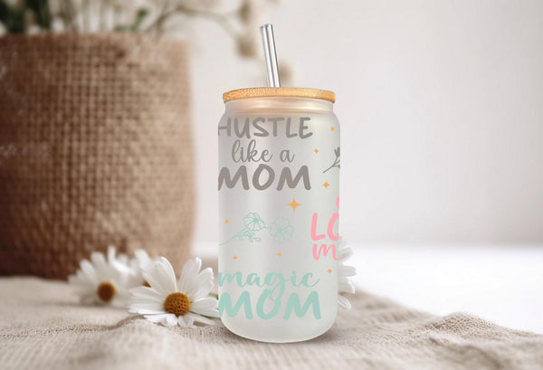 Show your mom some love with our Loving Mom Sayings Glass Cup! With phrases like "hustle like mom" and "best mom ever", this 16oz cup is perfect for any mama. Choose from clear or frosted glass to add a personal touch. Cheers to one loved mama!