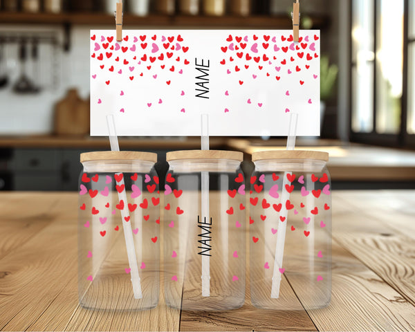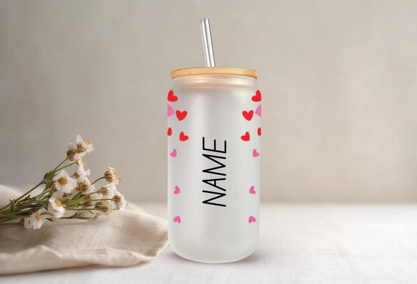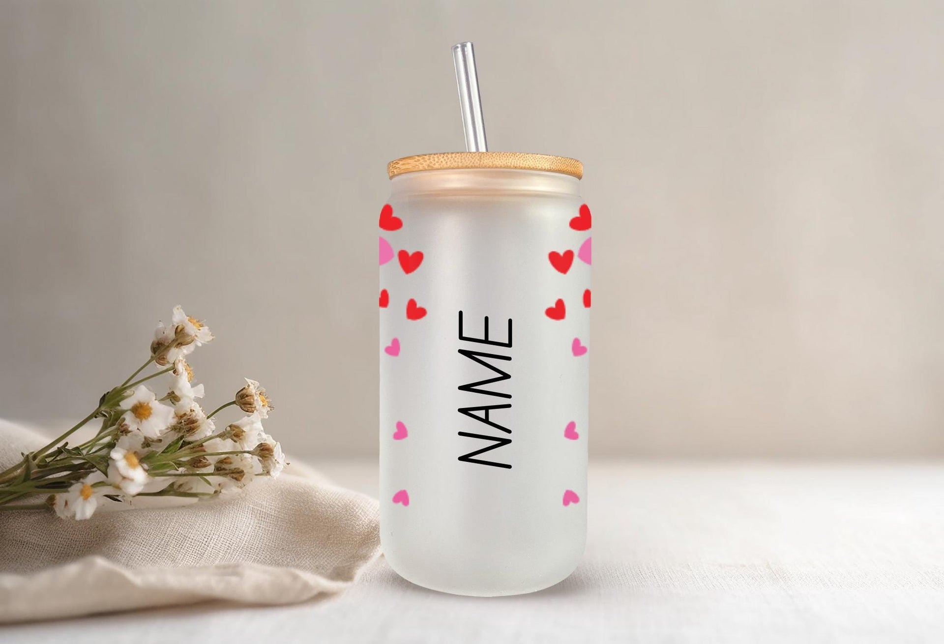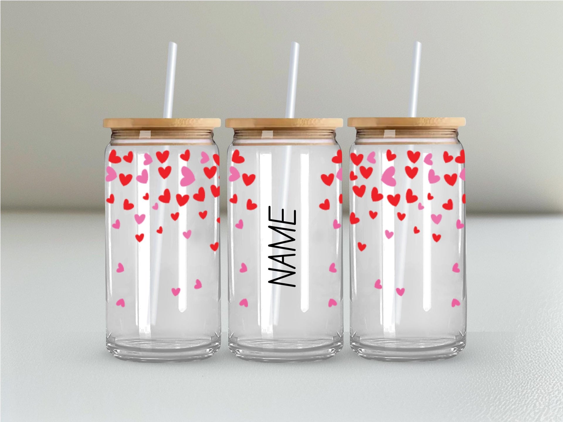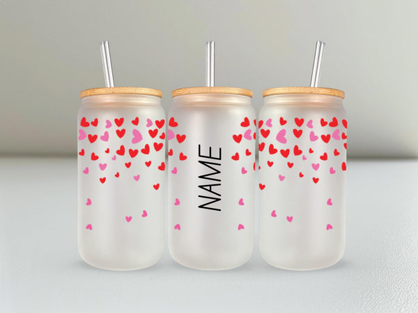 Experience the joy of love with every sip from our Falling Hearts Glass Cup. Adorned with a charming falling hearts design, this 16oz cup can be personalized and comes in both clear and frosted options. Perfect for romantic occasions or as a thoughtful gift for your loved ones.