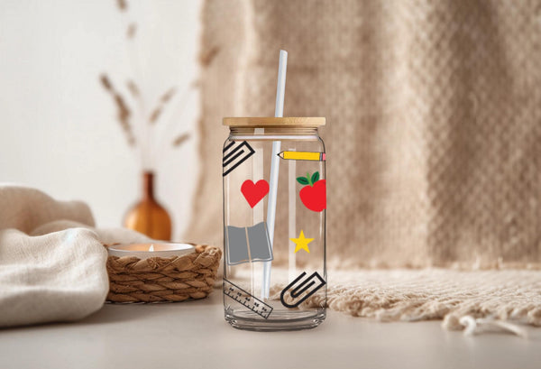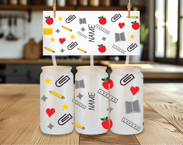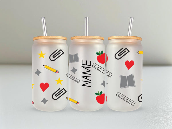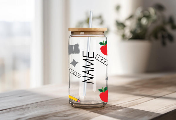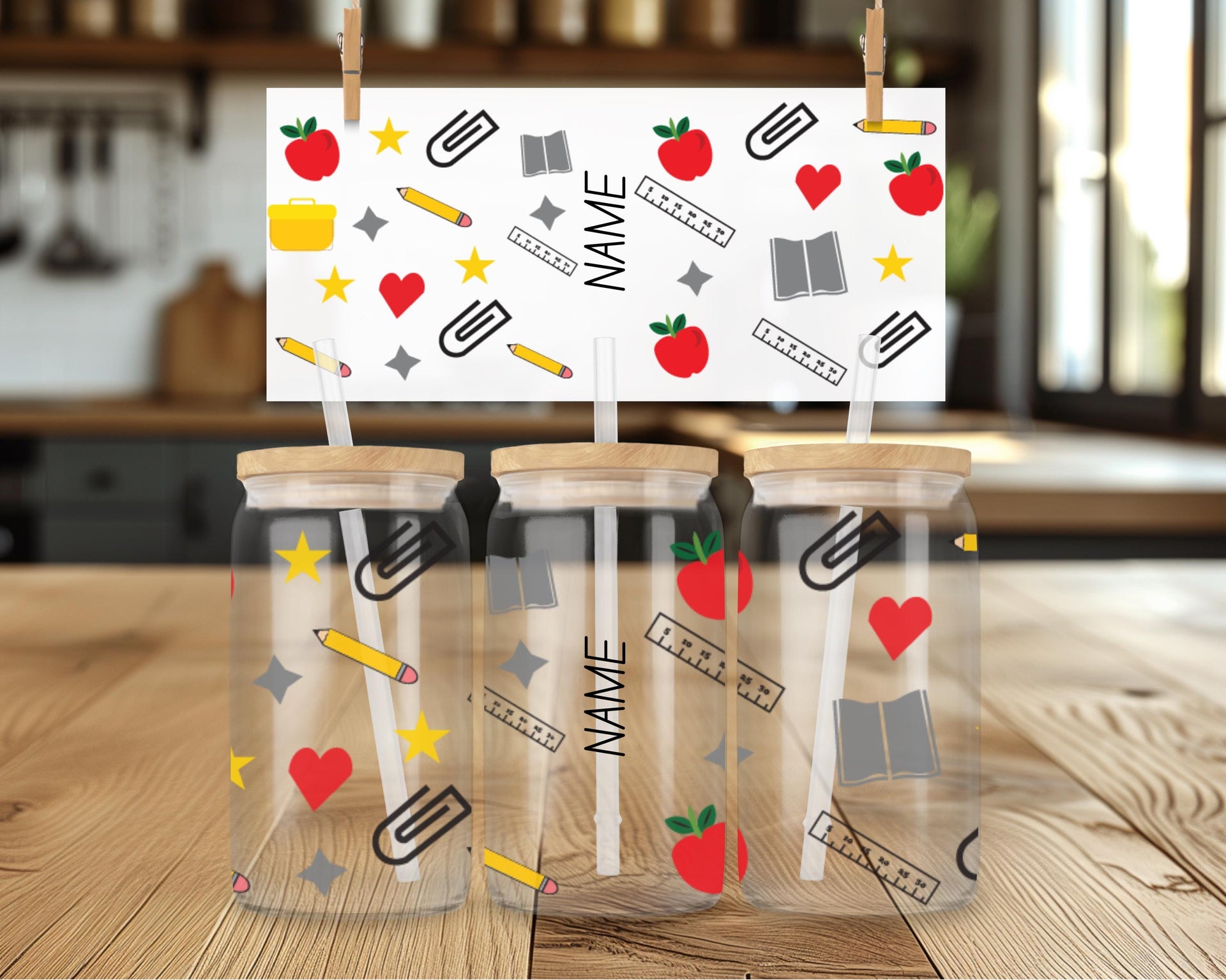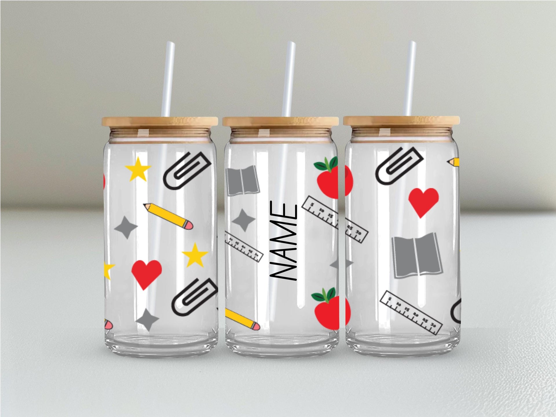 Fuel your favorite teacher’s day with this adorable Personalized School Supplies Glass Can!