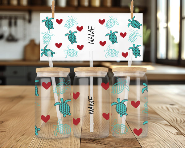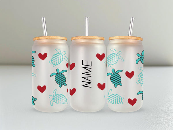 Shell-o there! Make waves with this adorable Personalized Sea Turtle Glass Can!
