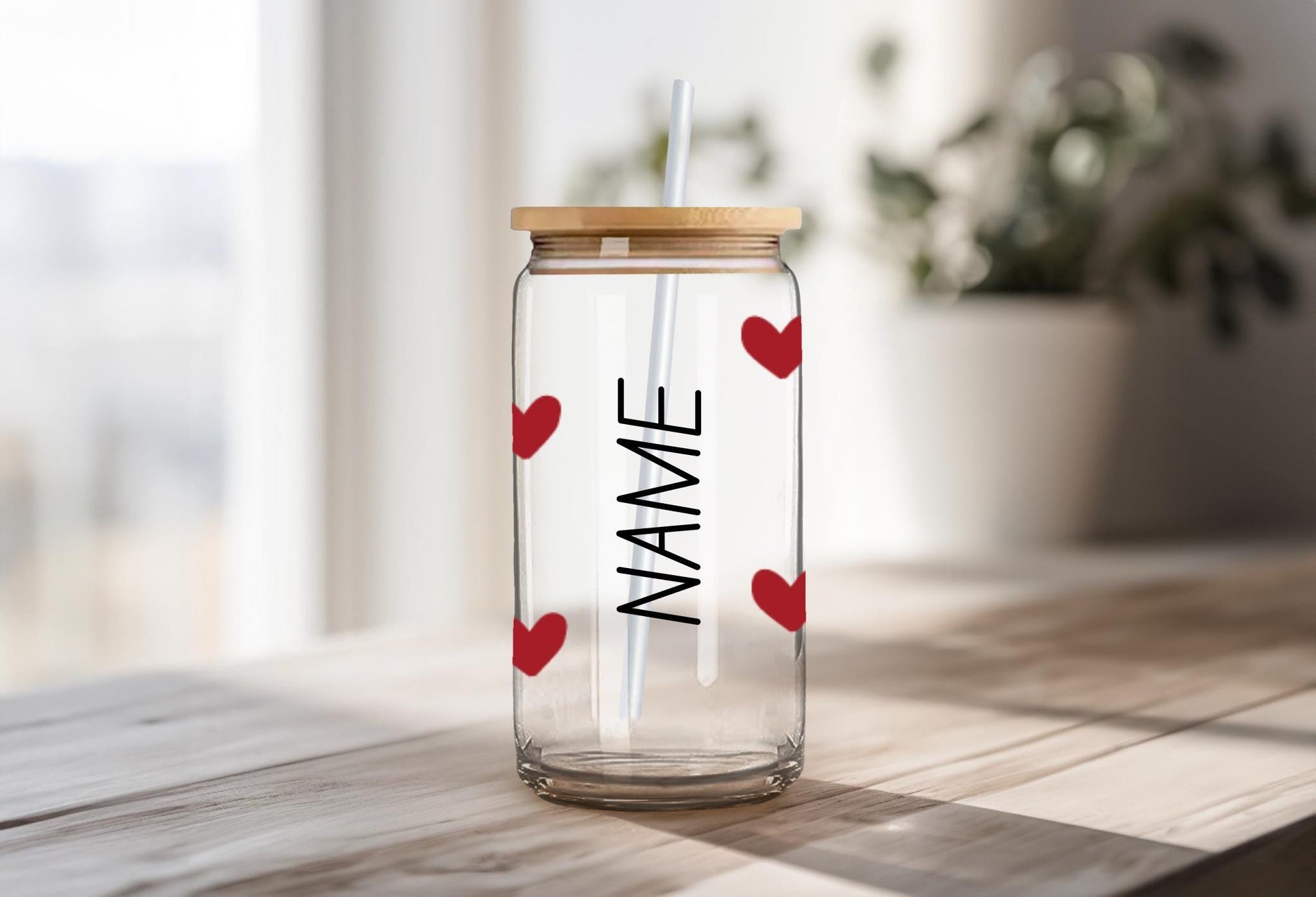 Includes: 1 Glass Can, 1 Bamboo Lid, 1 Reusable Plastic Straw.