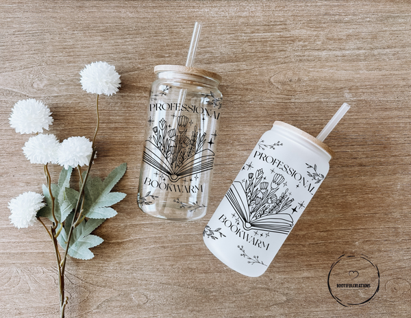 Indulge in your passion for reading with our Professional Bookworm Glass Cup. Adorned with beautiful floral designs and the words "Professional Bookworm", this 16oz cup is a perfect companion for cozy reading sessions. Choose between a clear or frosted cup to add a touch of elegance to your reading nook.