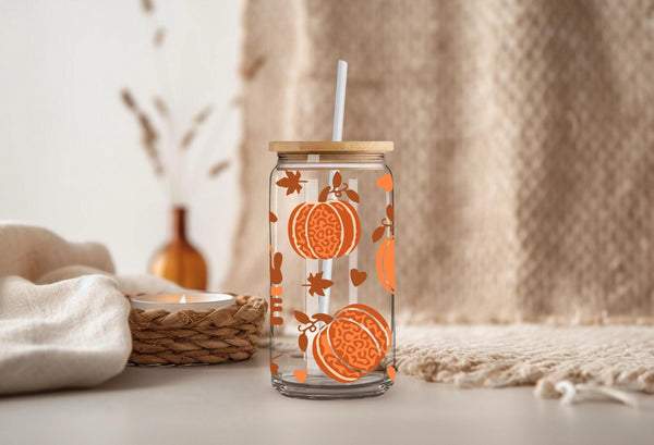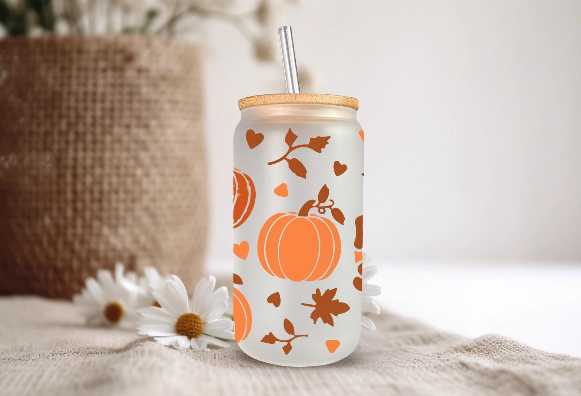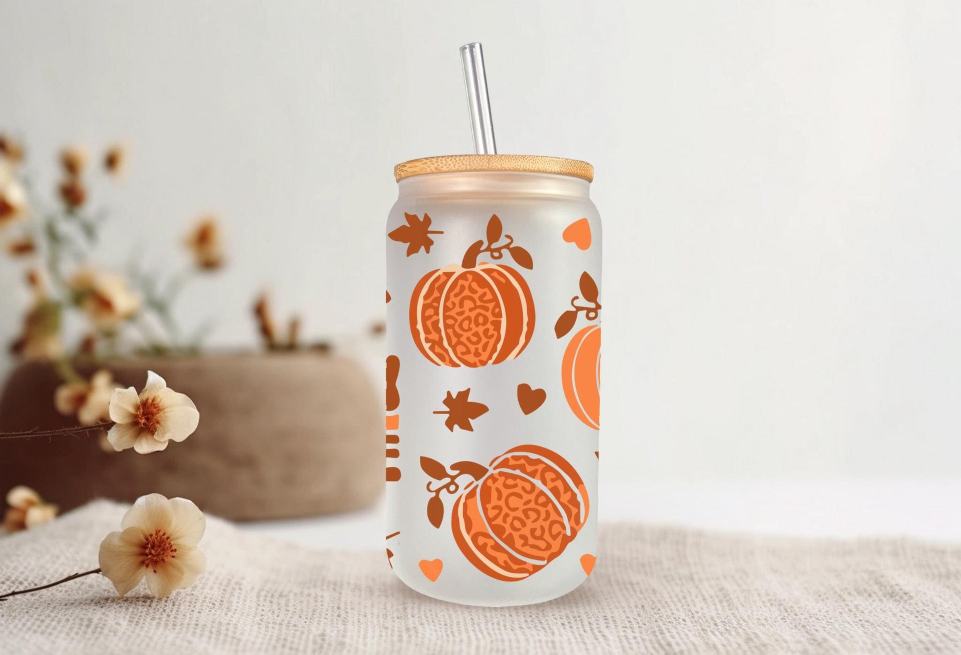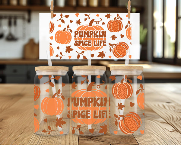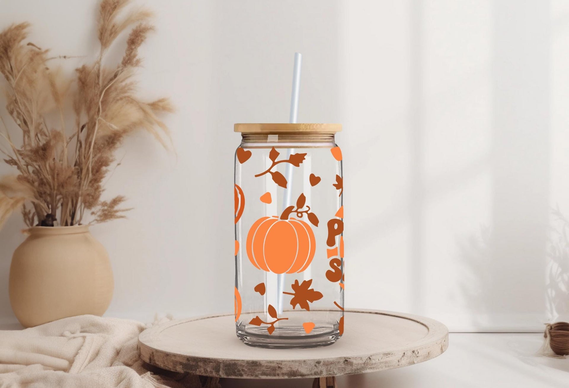 Experience the cozy embrace of Pumpkin Spice Life. Sip from our 16oz glass cup, available in clear or frosted. Indulge in the rich, warm flavors of pumpkin and spice, and let the delicious aroma take you away. Treat yourself to a taste of fall all year round!