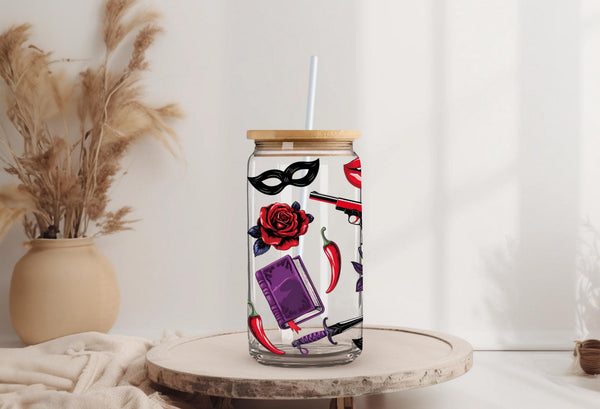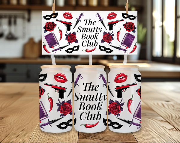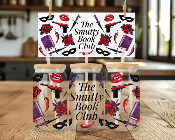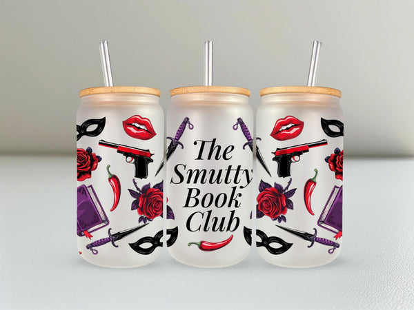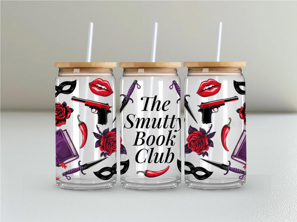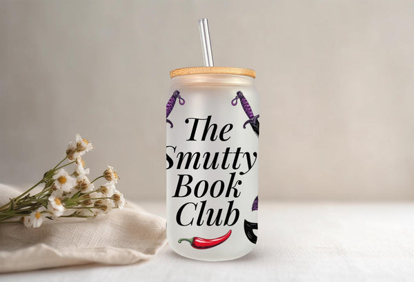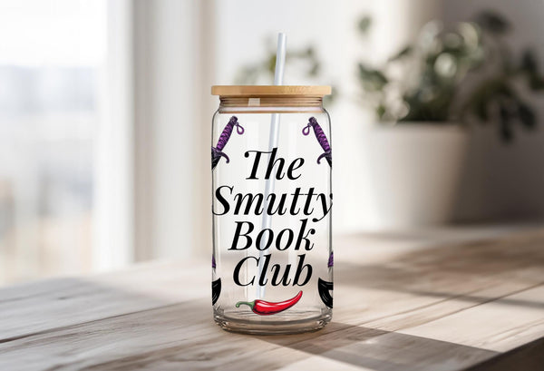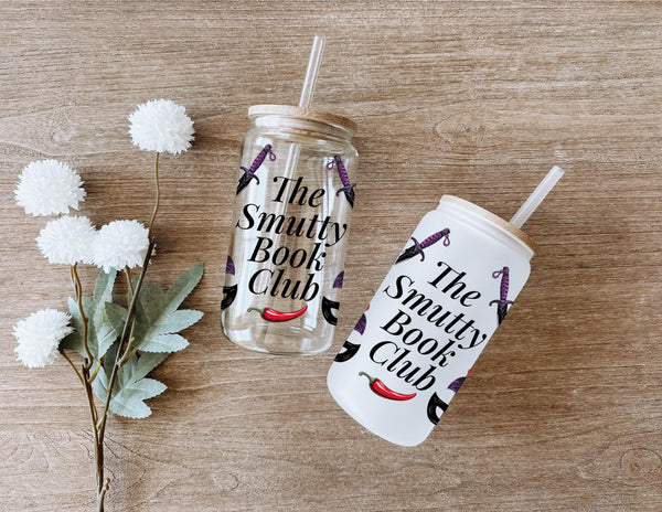 Welcome to "The Smutty Book Club"! This bold and edgy can-shaped glass tumbler is the perfect accessory for members who dive deep into dark romance, thrillers, and all things deliciously dangerous.
