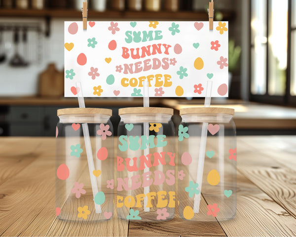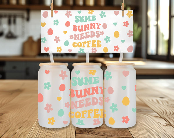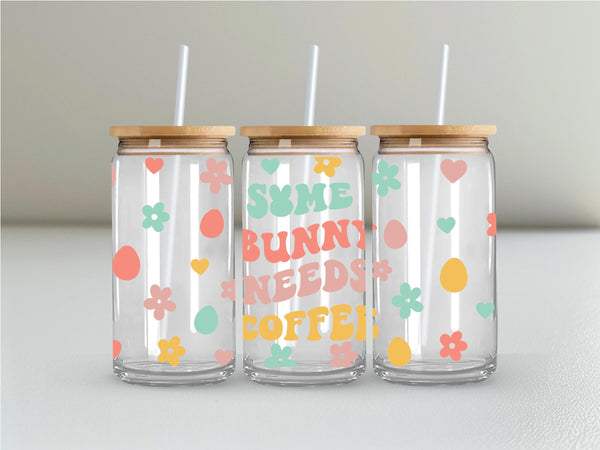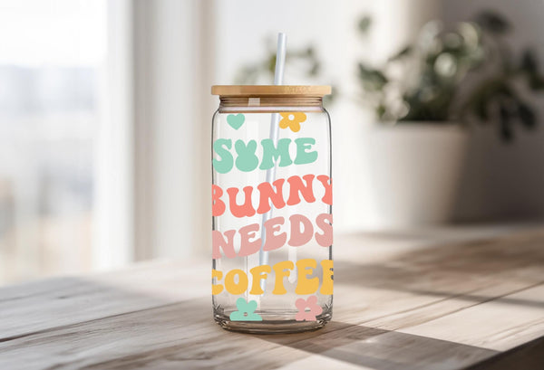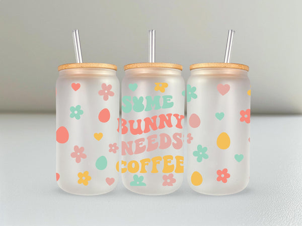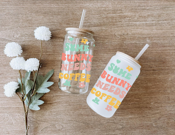 Get your caffeine fix and show off your adorable side with the "Some Bunny Needs Coffee" Glass Cup. At 16oz, this cup holds just the right amount for your morning brew. Adorned with pastel flowers, hearts, and eggs, it's the perfect way to start your day with a touch of cuteness (and caffeine)!