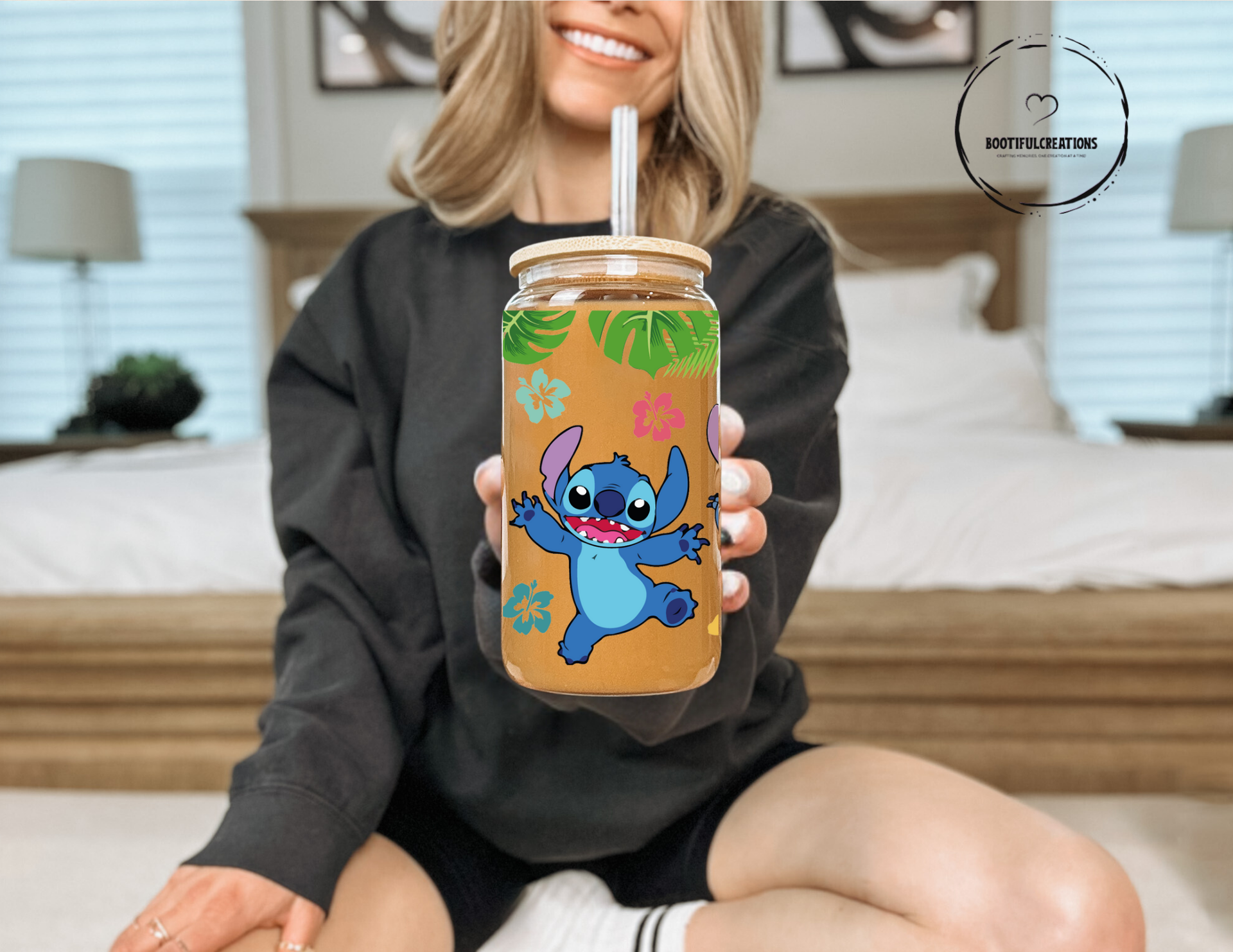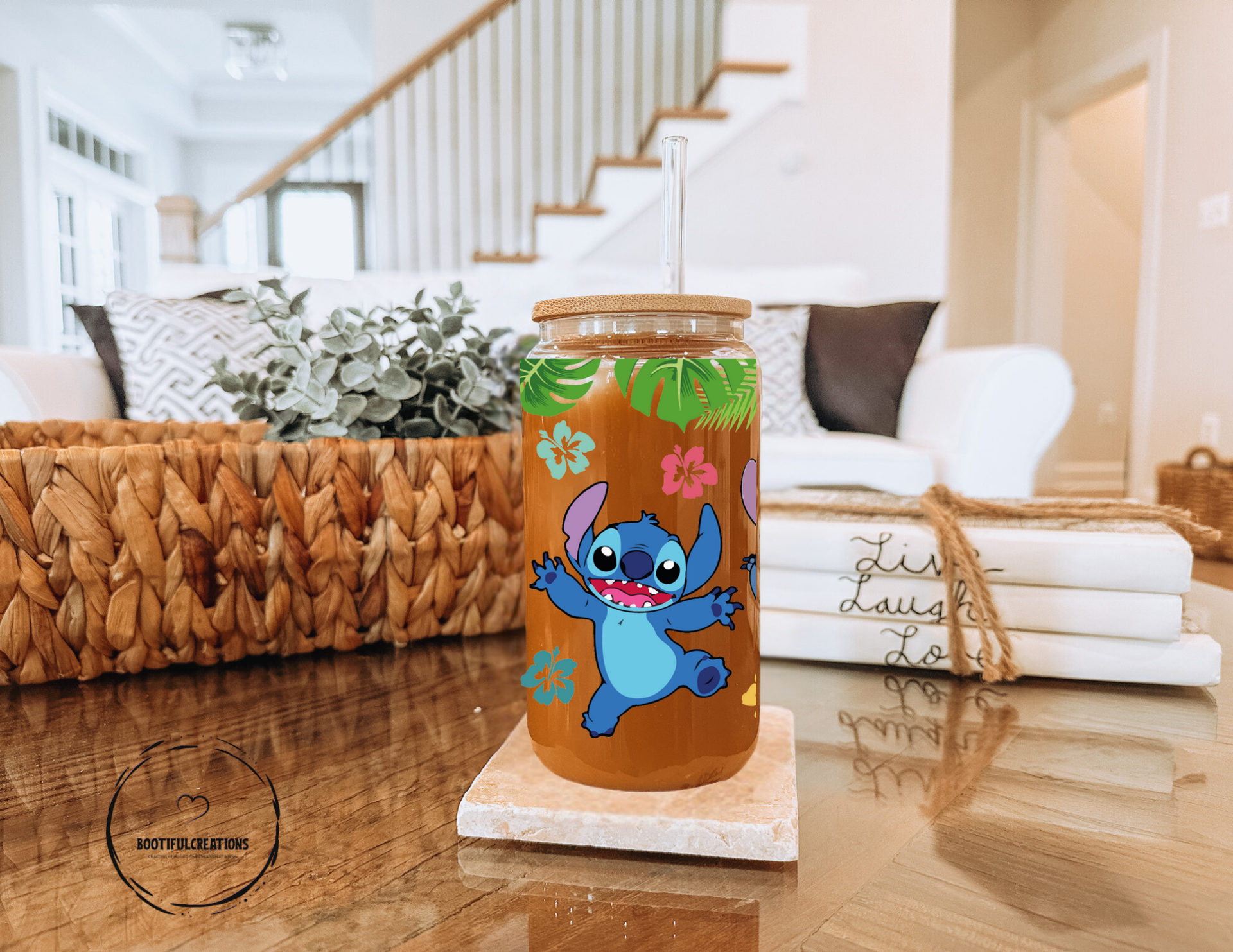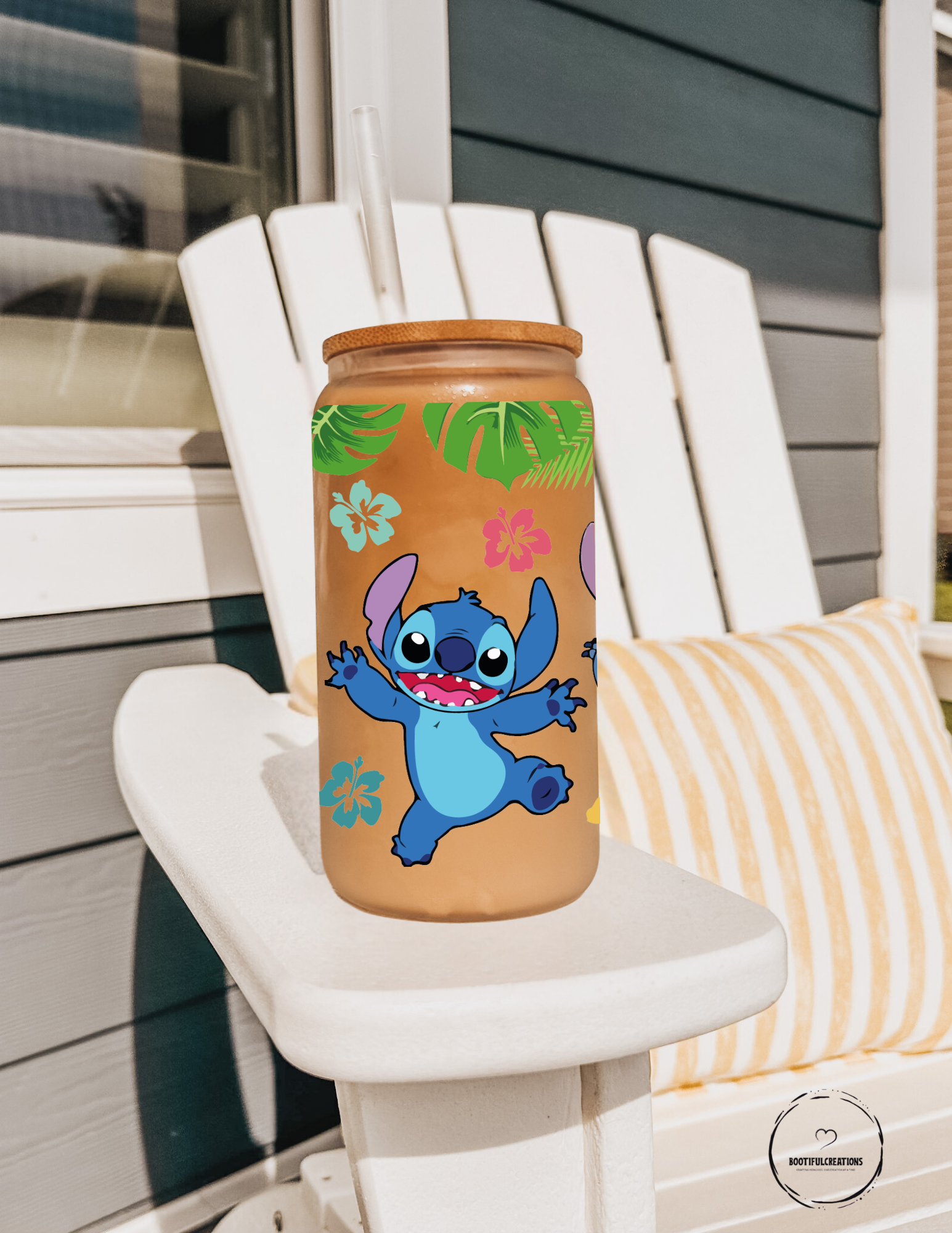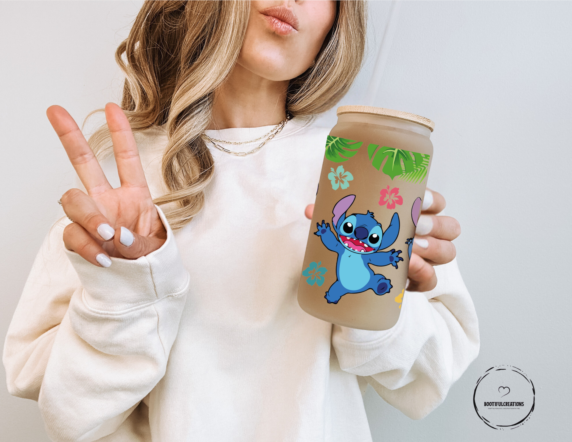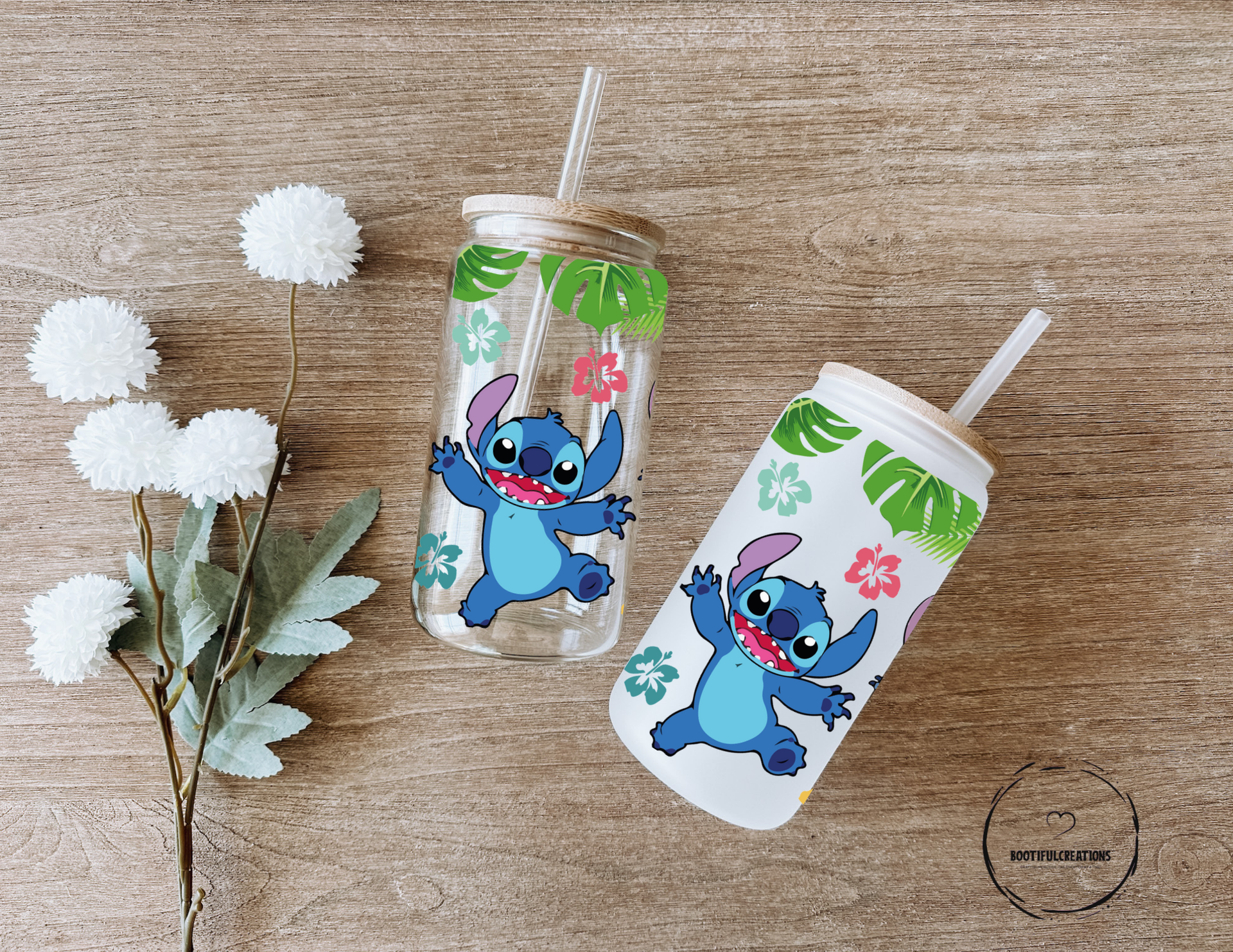 Add a touch of tropical paradise to your morning routine with our Stitch Glass Cup! Featuring intricate stitched detailing of vibrant flowers, this 16oz glass cup comes in a clear or frosted design. Sip your favorite drink in style and transport yourself to an island getaway with every sip.