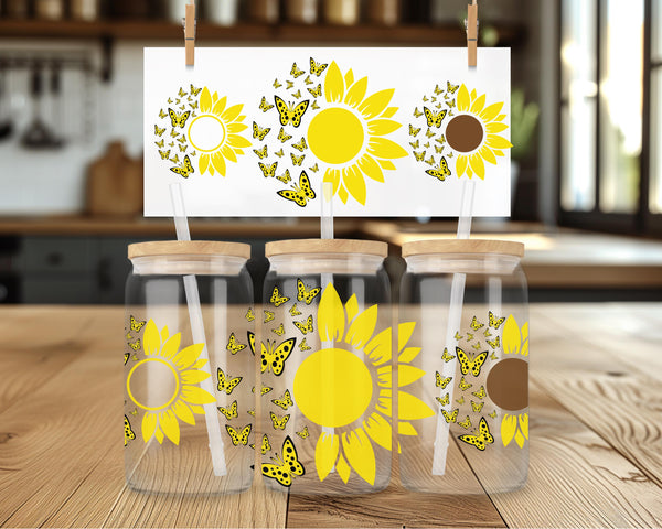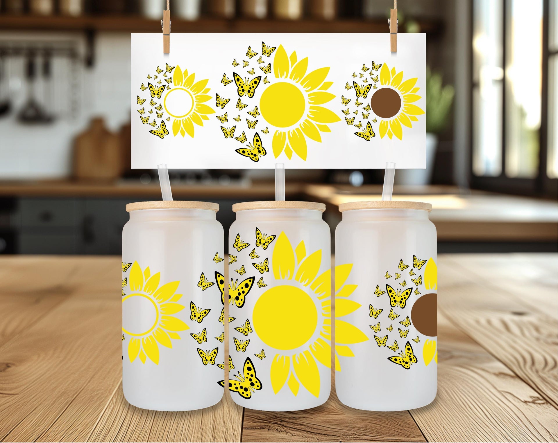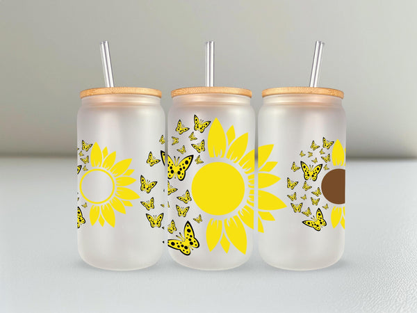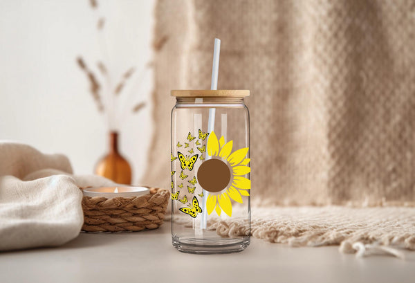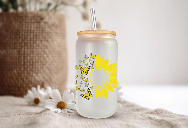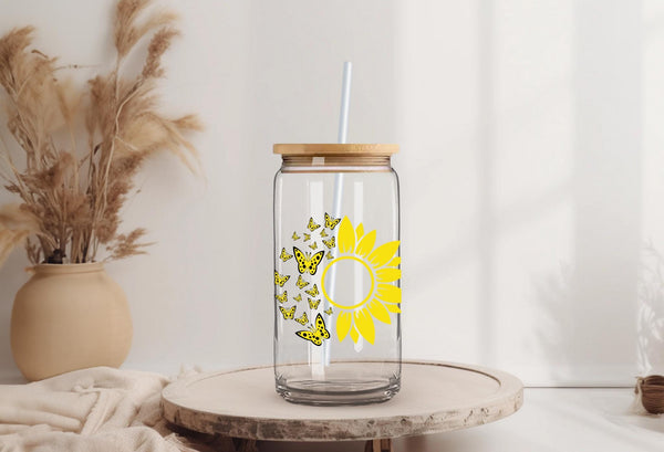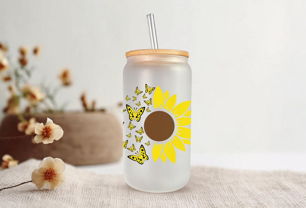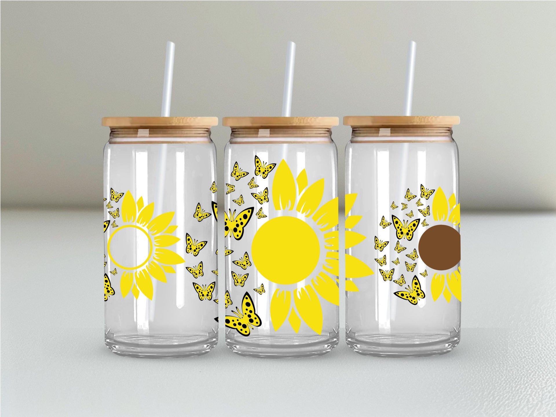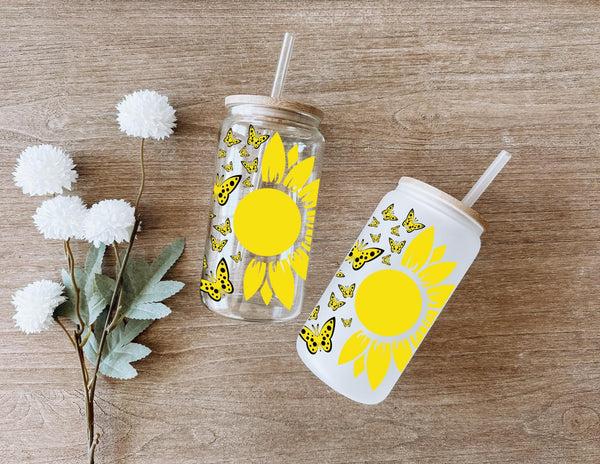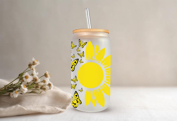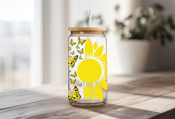 Bring the sunshine indoors with this cheerful and vibrant can-shaped glass tumbler! This beautiful design is a lovely celebration of nature, happiness, and sunny days.