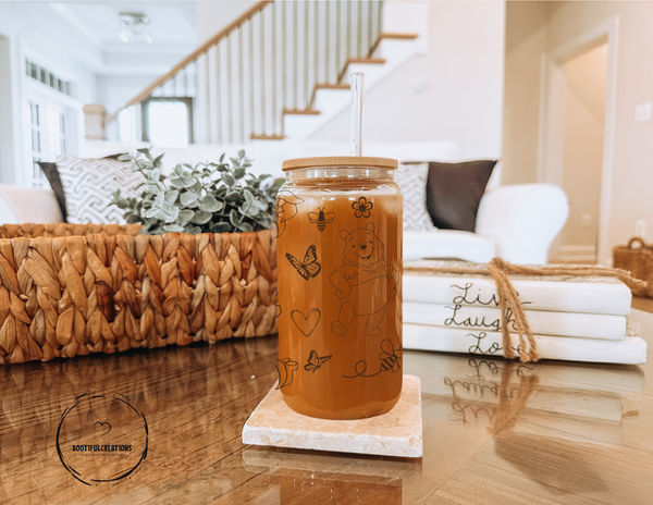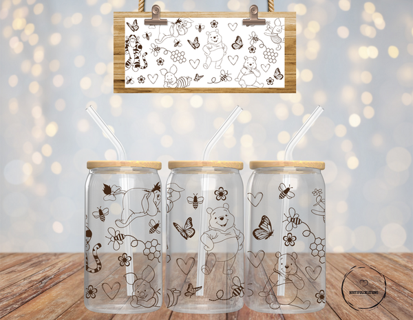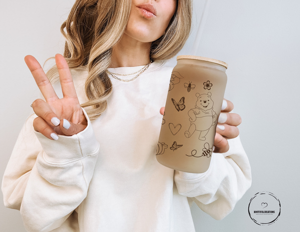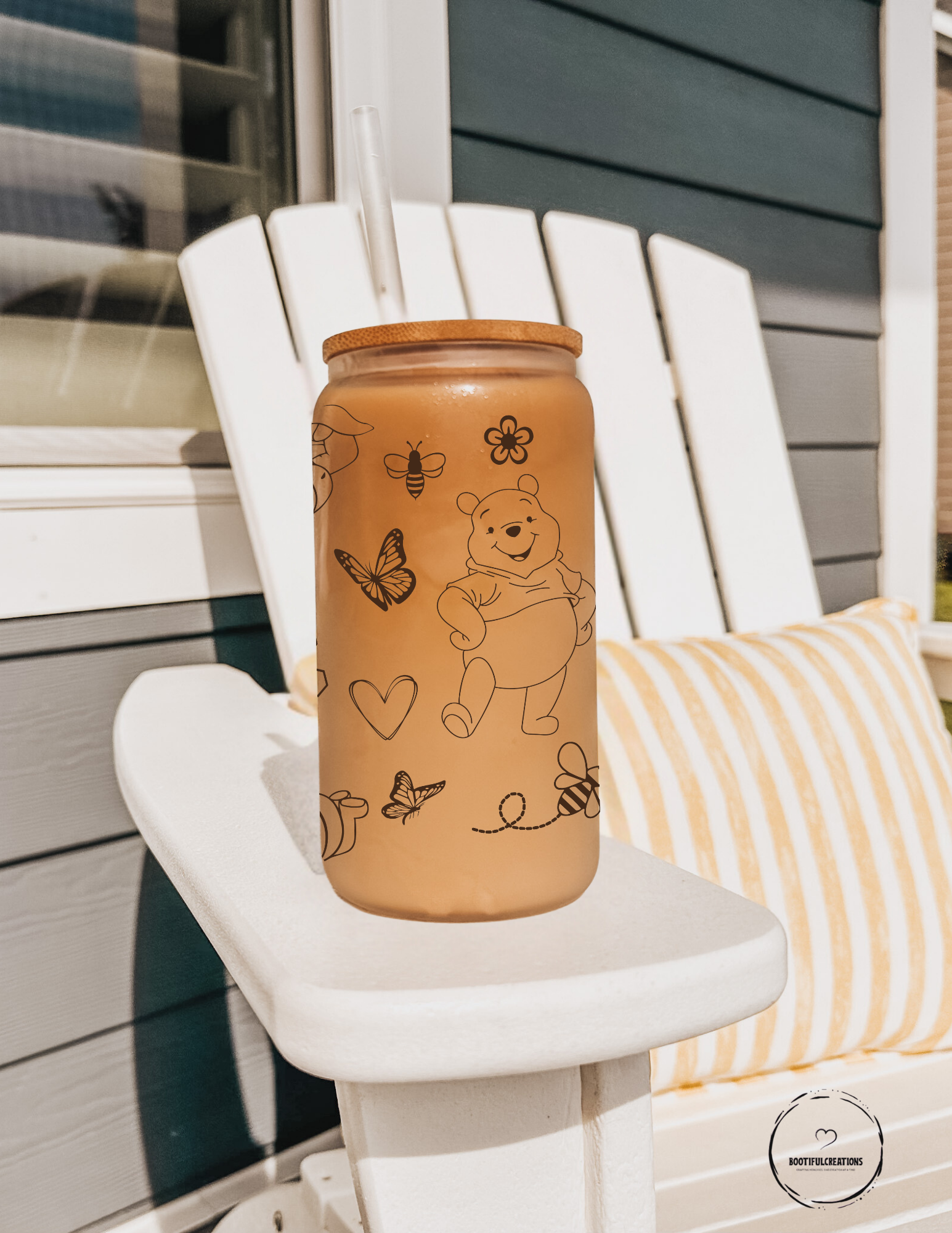 Indulge in your love for Winnie the Pooh with our 16oz glass cup. Available in clear or frosted, this cup features the lovable character and brings a touch of whimsy to your drinkware collection. Perfect for kids and adults alike, it's a charming addition to any tea party or daily routine.