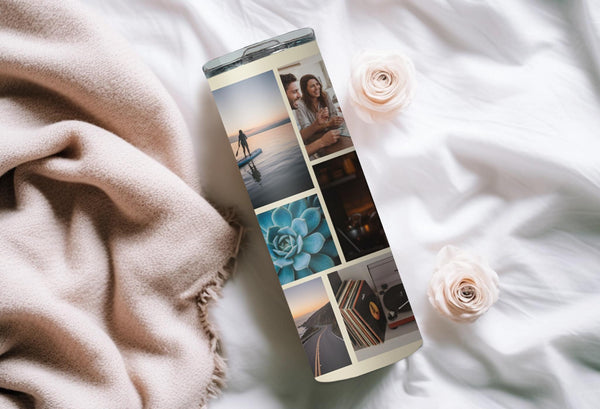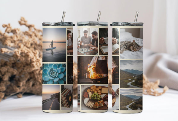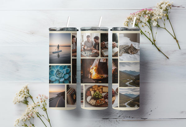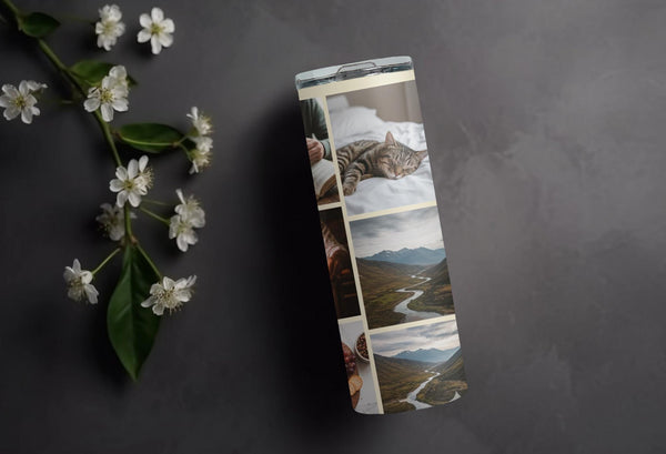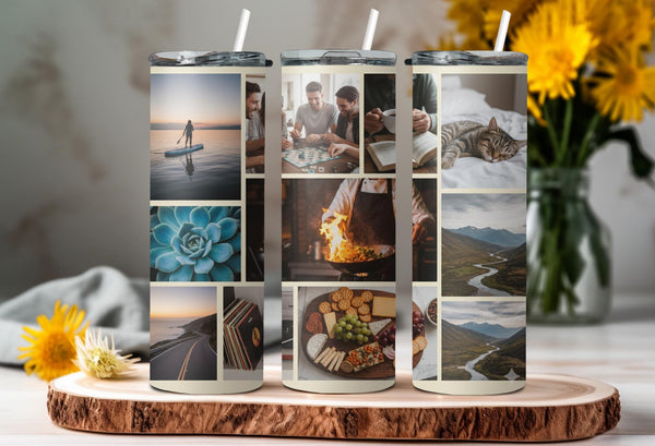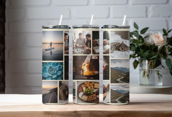 Showcase your memories with our Abstract Modern Art Photo Tumbler! Featuring a sleek geometric design, this tumbler holds 9 photos and keeps your drinks hot for 6 hours and cold for 24 hours. Personalize with a name for a unique touch. Keep your drinks and memories close at hand.