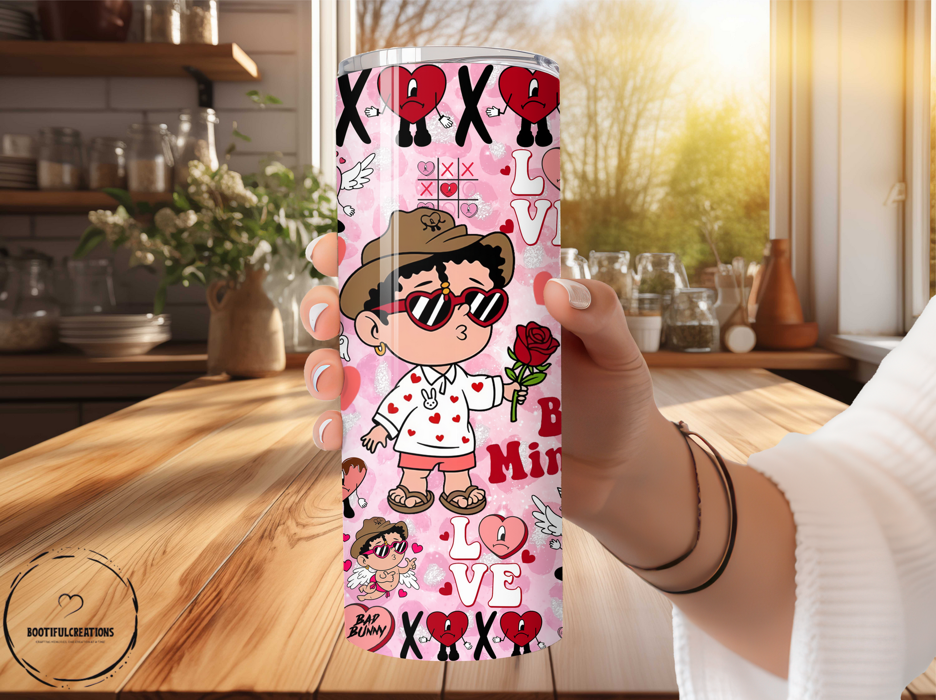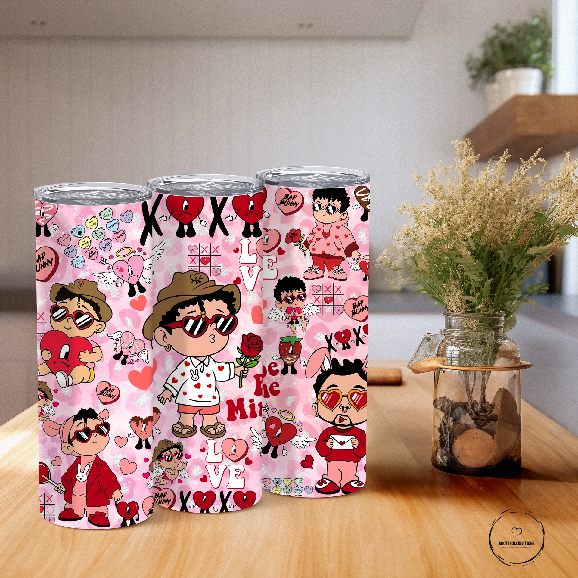 Experience the ultimate Valentine's Day gift with our Bad Bunny tumbler! Keep your drinks hot for up to 6 hours and cold for up to 24 hours. Personalize it with a name for a special touch. Perfect for the Bad Bunny fan in your life. Order now!