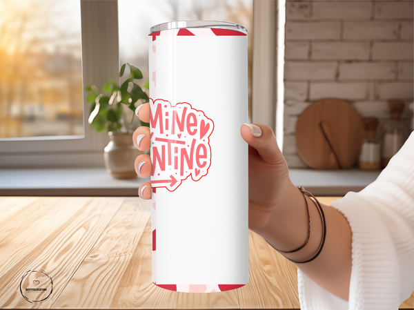 Fall in love with our Be Mine Valentine Photo Tumbler! Playful red font with heart accents and arrow motif. Keep your drinks hot for 6 hours, cold for 24. Personalize with a name and add photos to create a unique and romantic gift. Order now and make this Valentine's Day unforgettable!