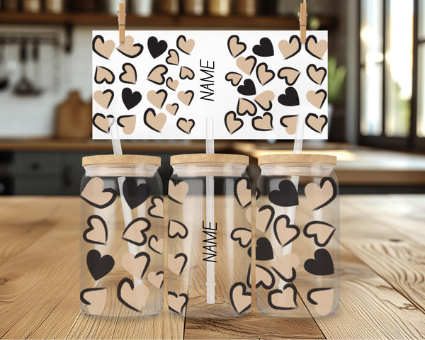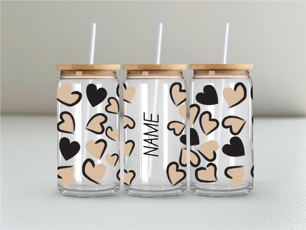 Beige Heart Glass Cup: 16oz Frosted Coffee Cup