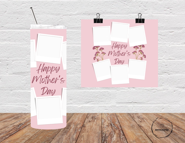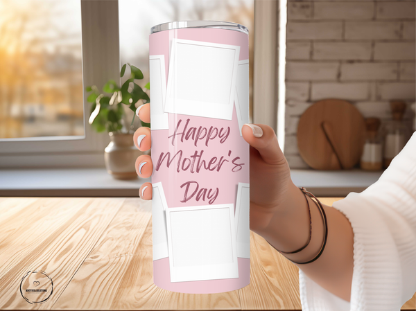 Capture cherished memories and keep your drinks at the perfect temperature with the Cherished Moments Mother's Day Photo Tumbler. This tumbler features a soft pink background with a heartfelt "Happy Mother's Day" message and space for 6 photos. Keeps drinks hot for 6 hours and cold for 24 hours. Personalize it with a name for the perfect gift!