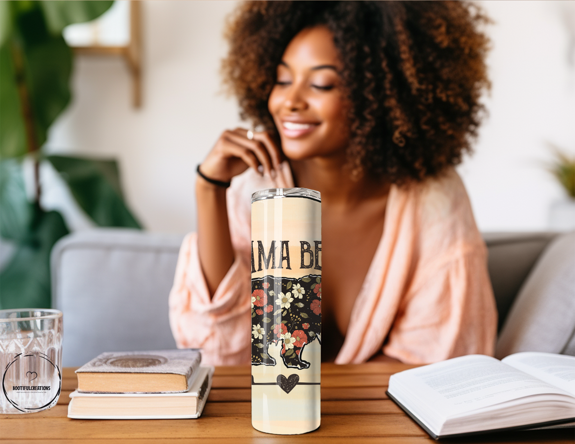 Stay hydrated in style with our Floral Mama Bear Tumbler! Our tumbler features a beautiful "Mama Bear" design with delicate flowers, perfect for any mom on the go. Keep your drinks hot for up to 6 hours or cold for up to 24 hours. Make it extra special by personalizing it with a name. Order yours today and show off your mama bear pride!