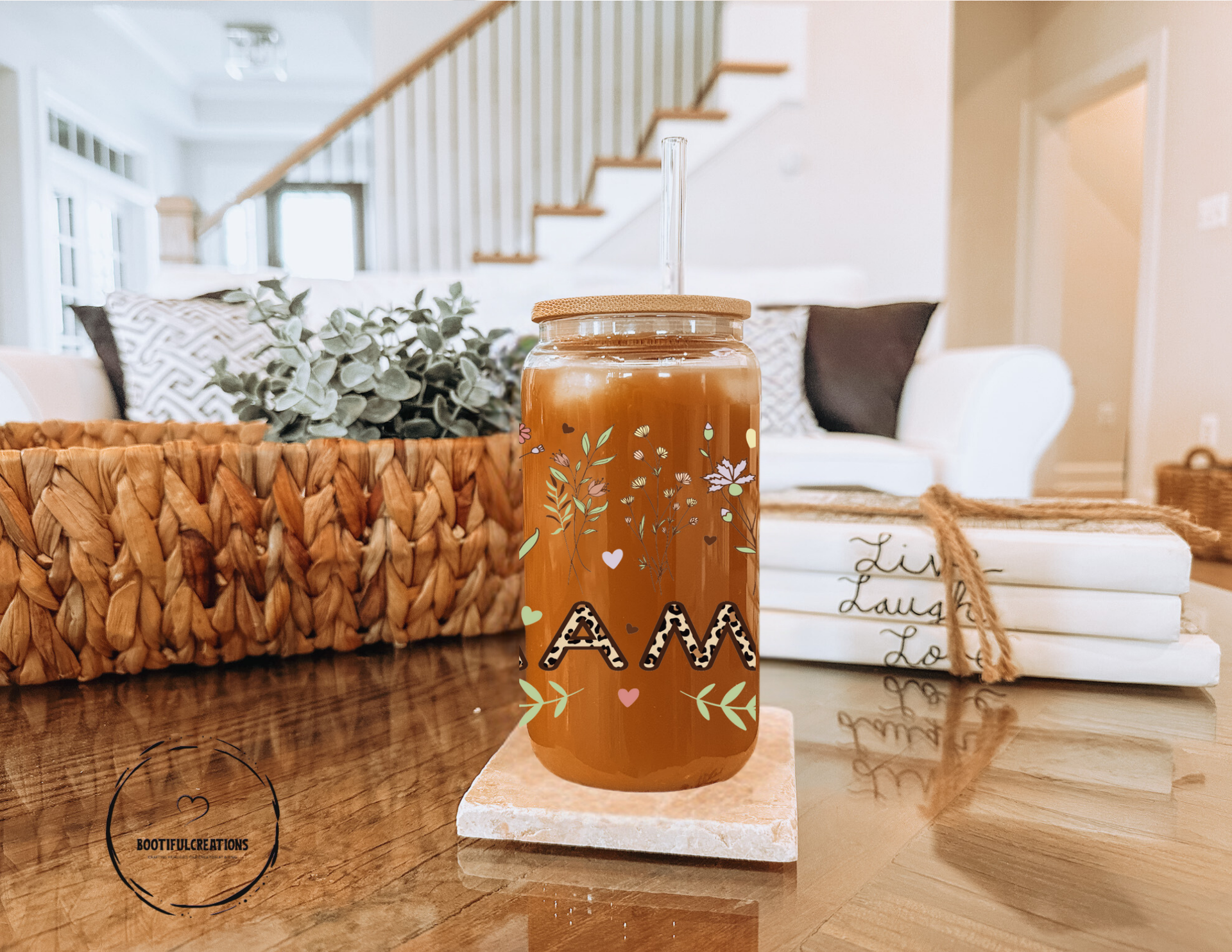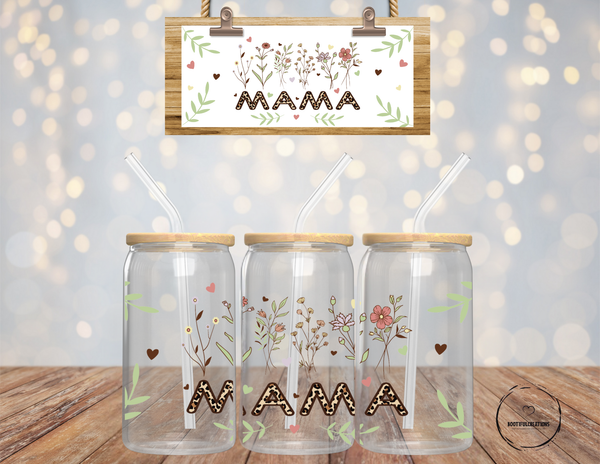Indulge in your motherhood with our Floral Mama Glass Cup. Featuring a beautiful floral design and "MAMA" in playful leopard print, this 16oz glass cup comes in both clear or frosted options. Embrace your style and stay hydrated in any setting.