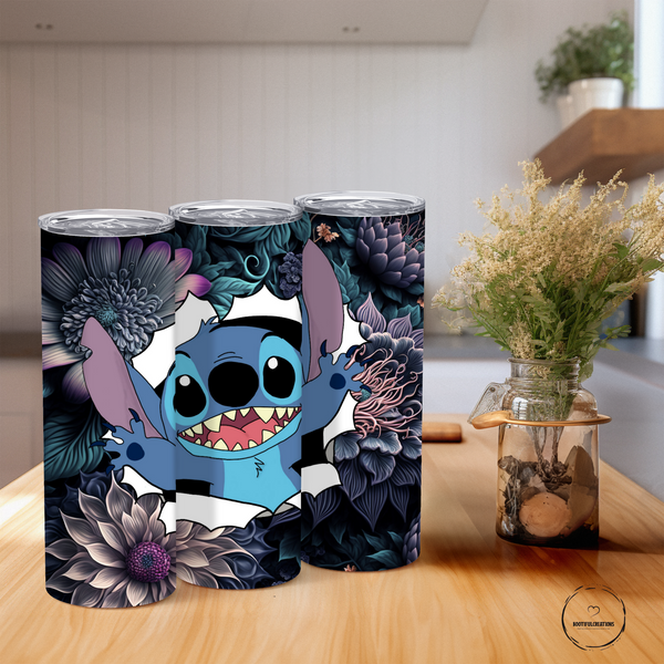 Stay stylish and hydrated with our Floral Stitch Tumbler! Keep your drinks hot for up to 6 hours and cold for up to 24 hours with its insulated design. Personalize it with your name for a unique touch. With its beautiful floral pattern and everyone's favorite alien, Stitch; this tumbler will make a statement wherever you go!