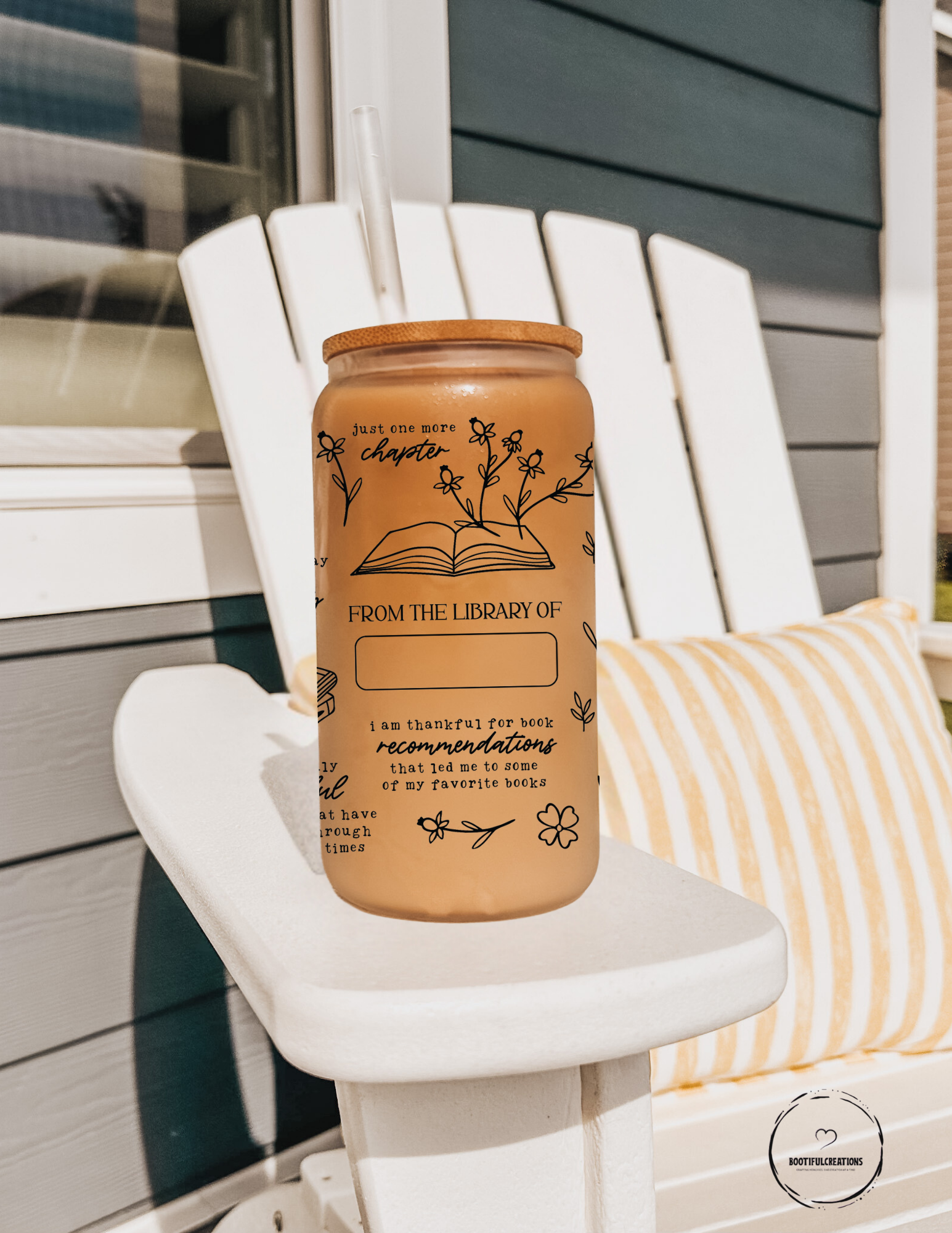 Experience the joy of reading with our From the Library of Glass Cup! Personalized with book lover quotes and "From the Library of" message, this 16oz cup is perfect for your favorite hot or cold beverages. Choose from clear or frosted glass for a unique touch.