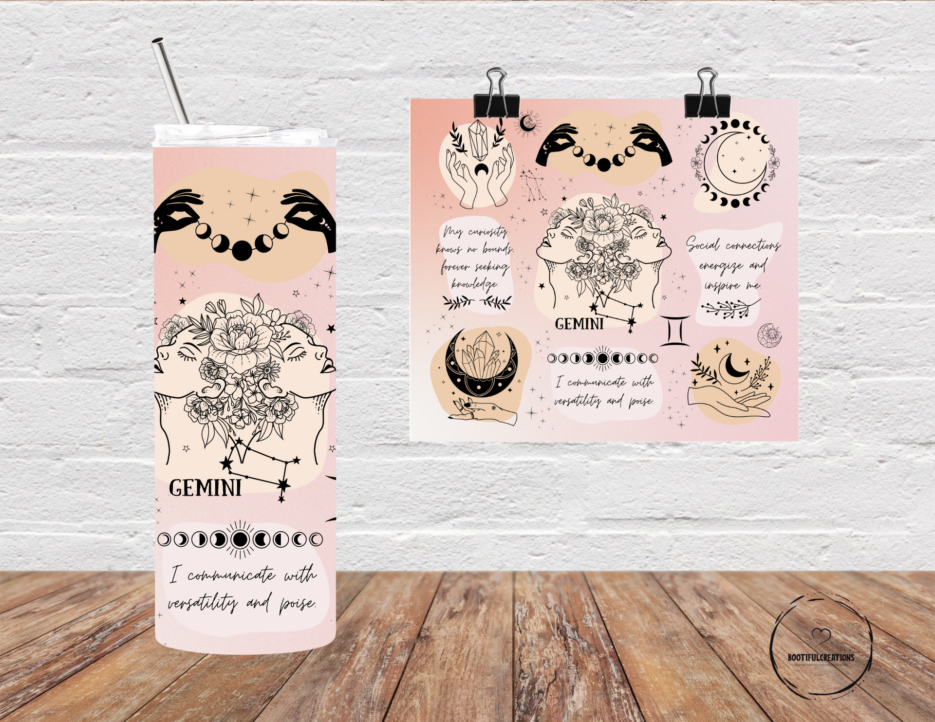 Stay hydrated and stylish with our personalized Gemini Zodiac Sign Tumbler! Keep your drinks hot for up to 6 hours or cold for up to 24 hours. Perfect for on-the-go Gemini's, this tumbler can also be customized with a name. Embrace your astrological energy and quench your thirst with this must-have tumbler!
