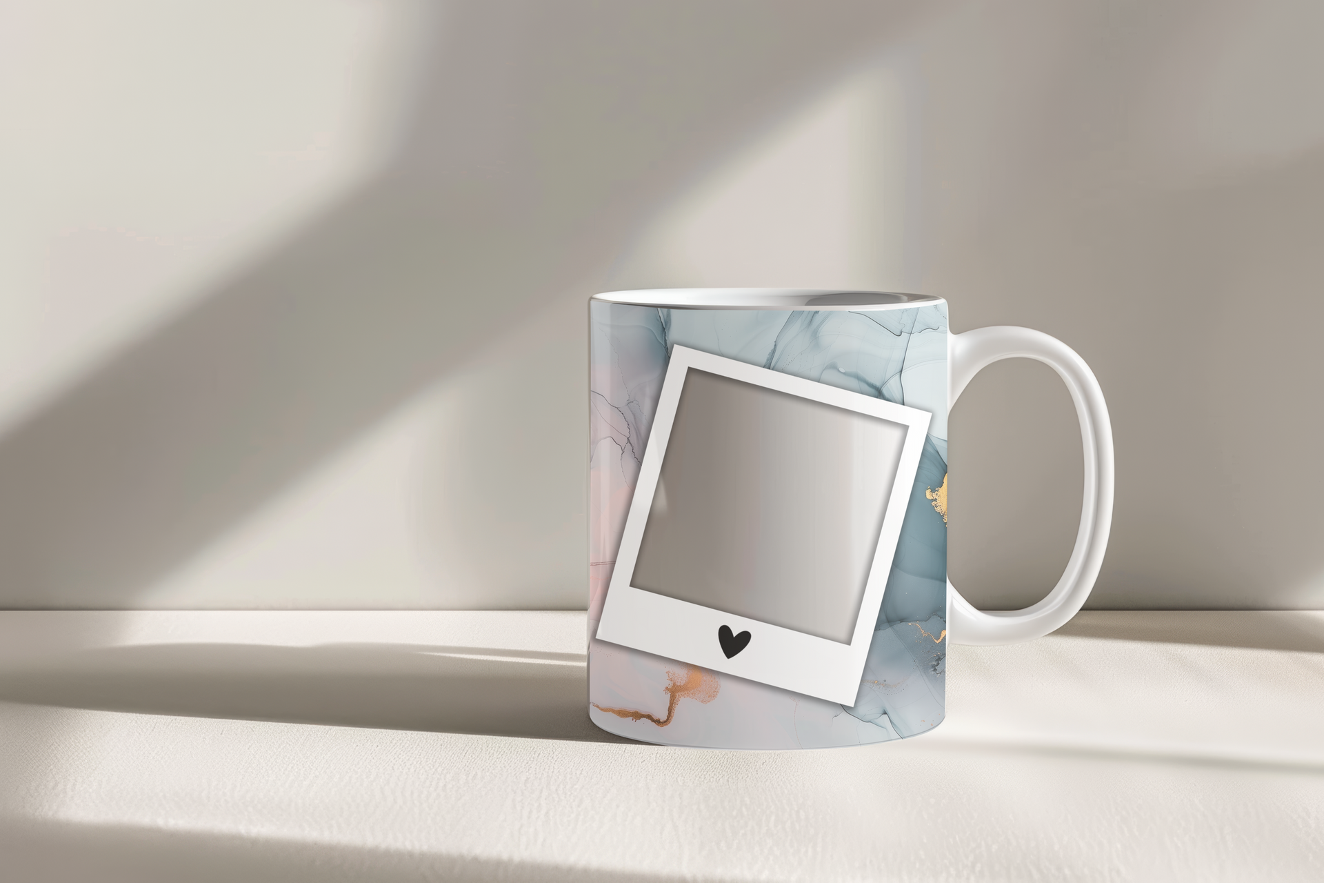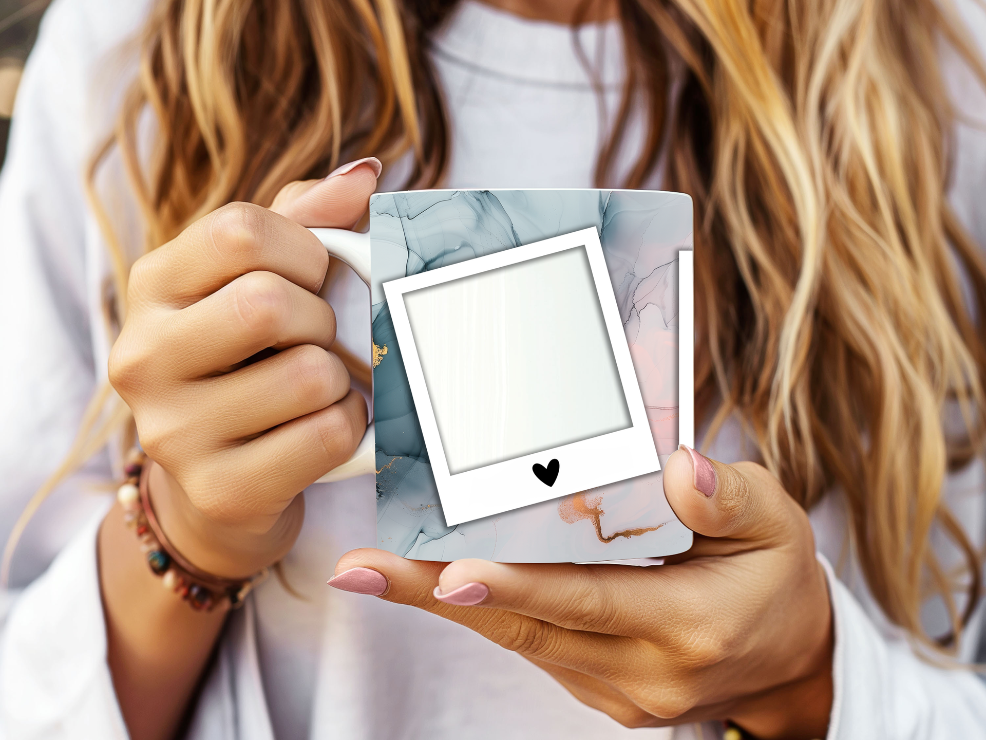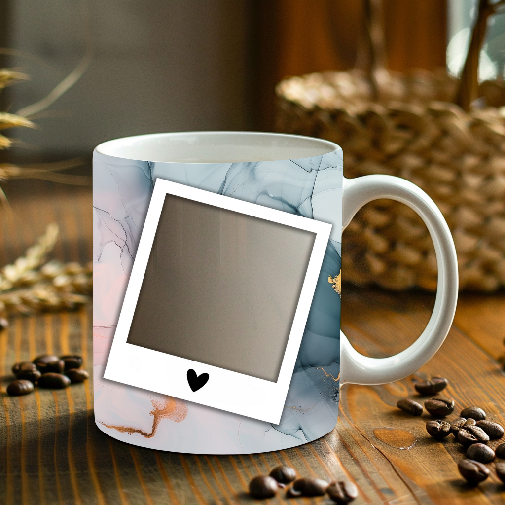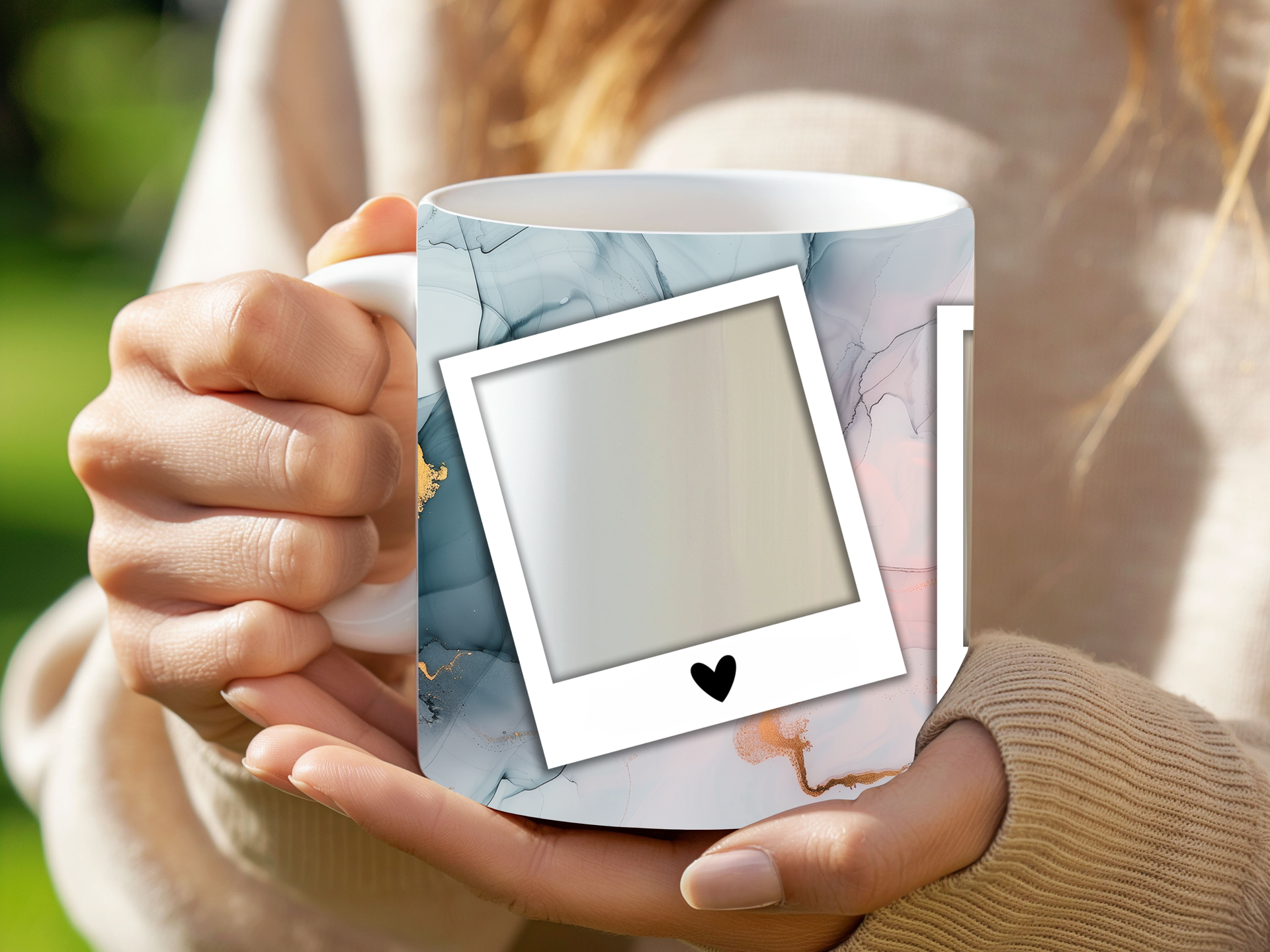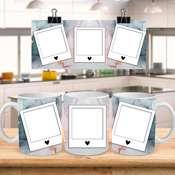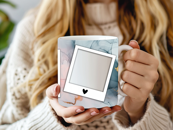 Showcase your cherished memories with our stunning customizable Photo Frame Coffee Mug! This elegant mug features a serene pastel marble design, beautifully swirled with soft blue, pink, and hints of gold, creating a calming and artistic backdrop for your favorite moments. Each mug is thoughtfully designed to display three of your beloved photos within classic polaroid-style frames, each subtly adorned with a charming heart detail. Perfect for your daily coffee, tea, or any hot beverage, this mug transforms into a unique personal keepsake or a thoughtful gift for family and friends on any special occasion. It's available in both a convenient 11oz size and a more generous 15oz capacity to suit your preference. Simply add your desired photos to create a truly personalized and heartwarming mug that will be treasured for years to come!