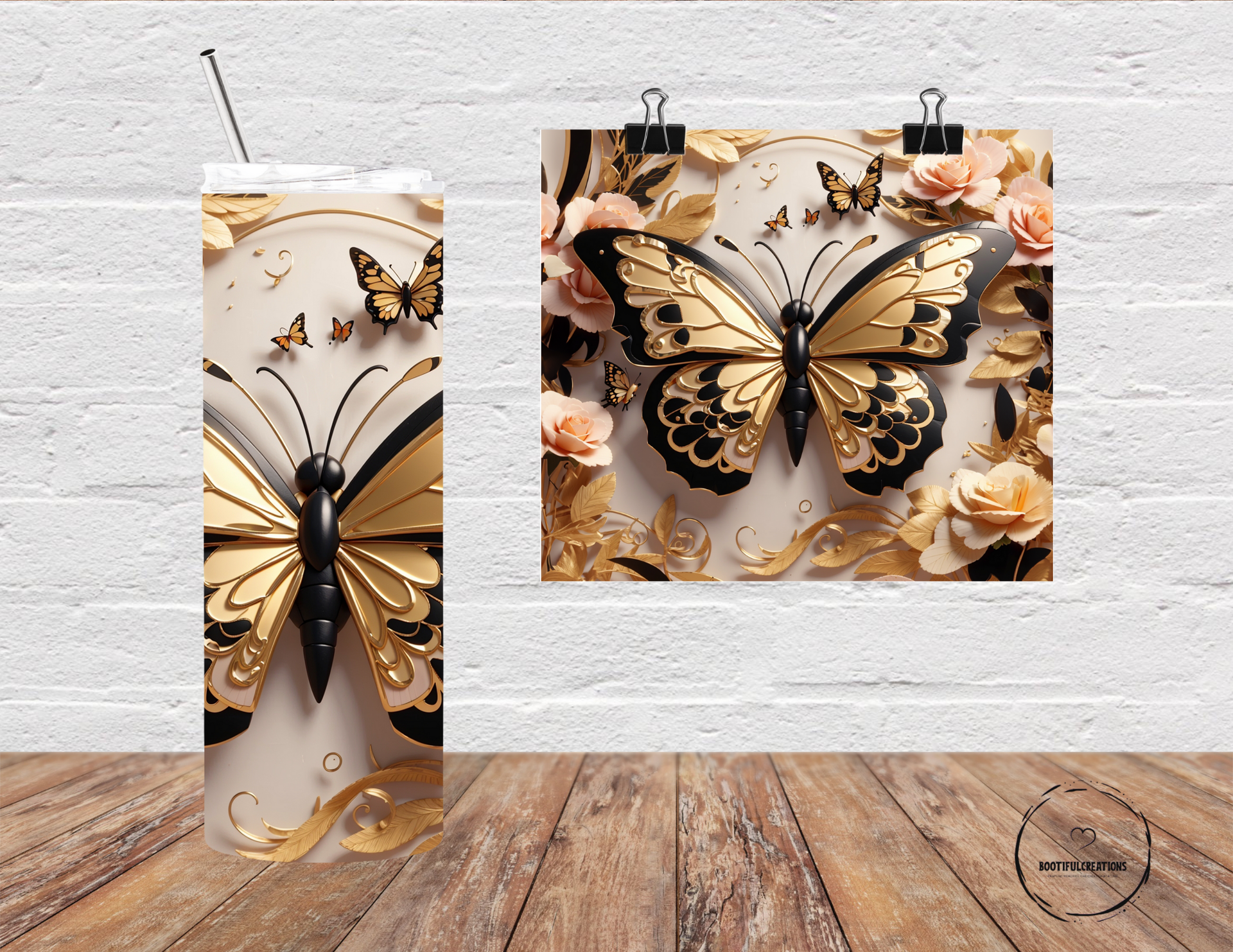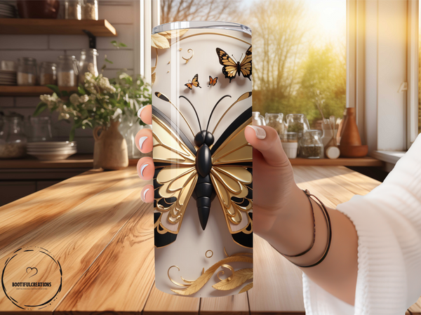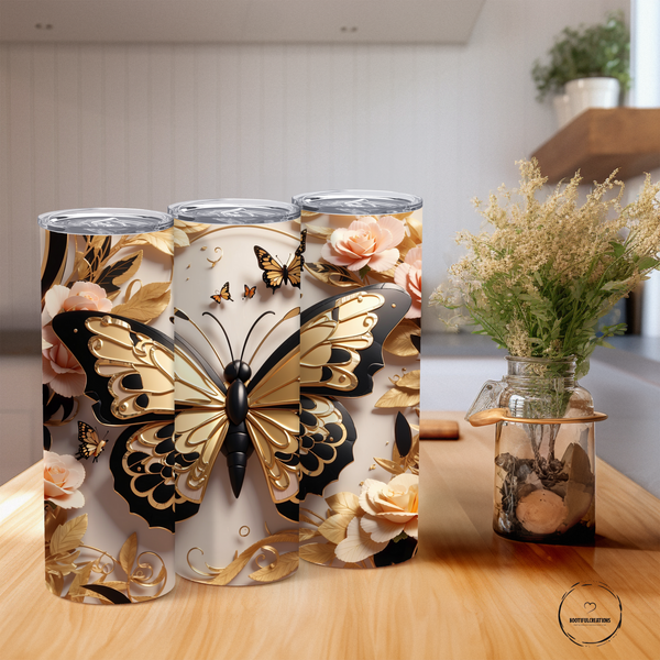 Indulge in luxury with our Gold Butterfly Tumbler! Featuring a striking 3D gold butterfly design, this tumbler will keep your drinks hot for up to 6 hours and cold for up to 24 hours. Personalize it with a name for a unique touch. Elevate your daily routine with this elegant and functional tumbler.