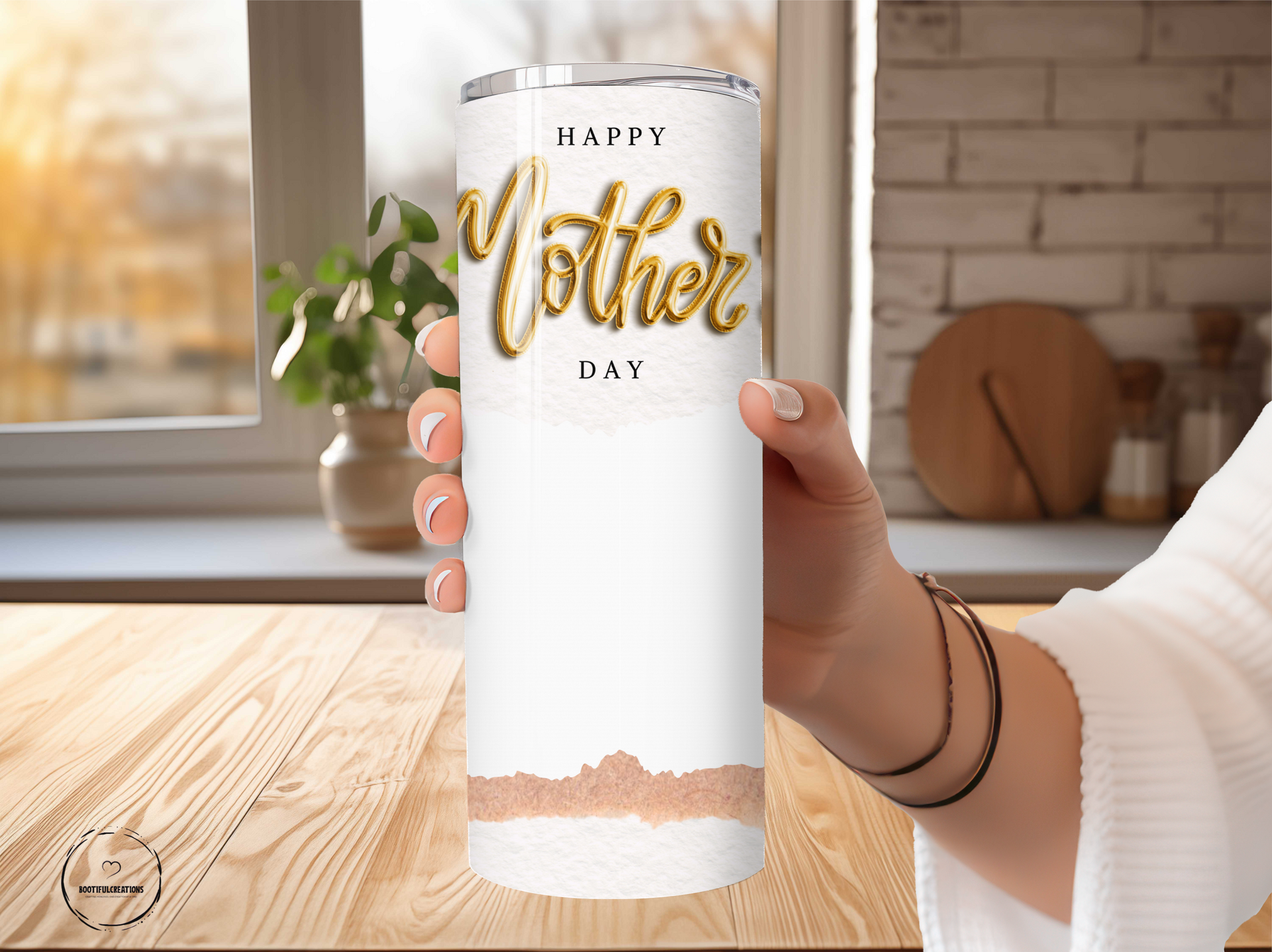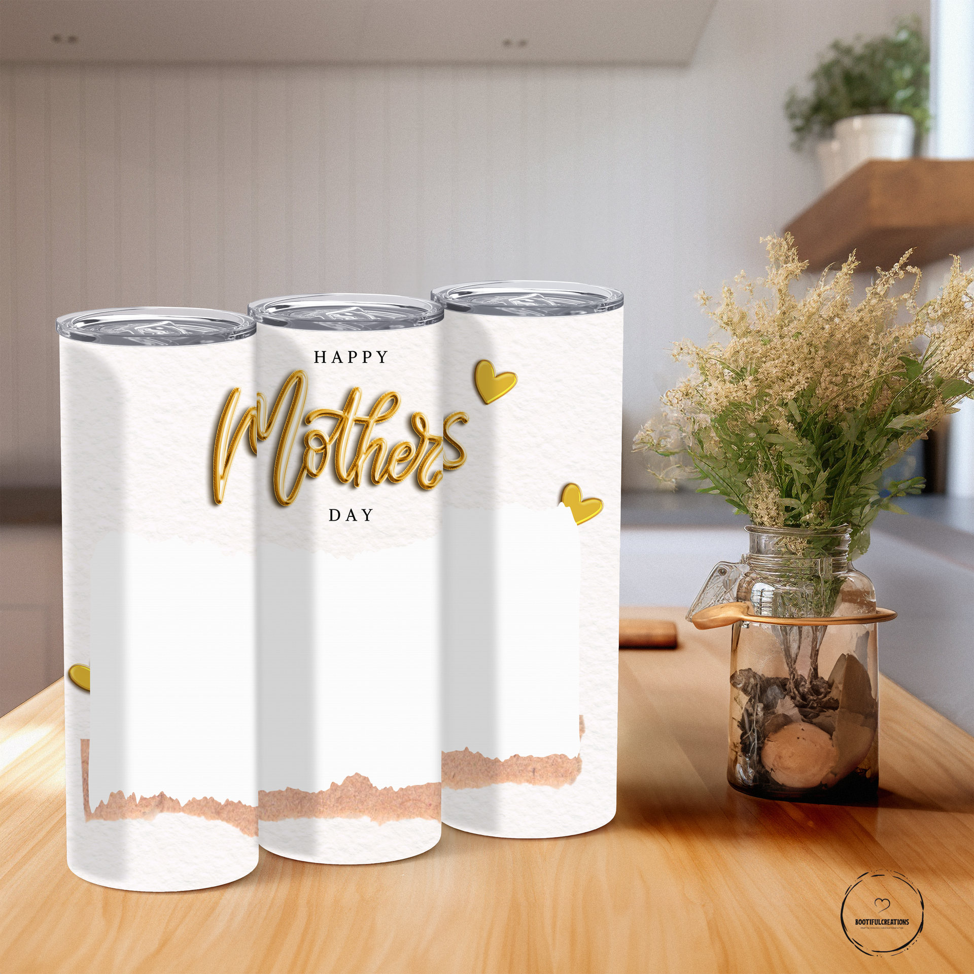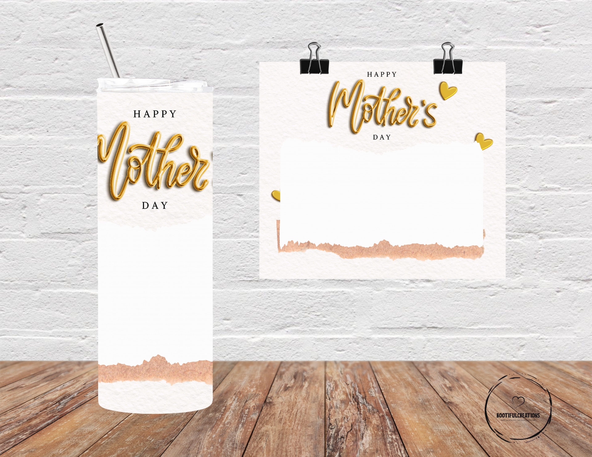 Celebrate Mother's Day with our Golden Heartfelt Photo Tumbler! Adorned with elegant "HAPPY Mother's DAY" script and a subtle textured background, this tumbler adds a touch of sophistication. Keeps drinks hot for up to 6 hours and cold for up to 24 hours. Personalize with a name and add a special photo.