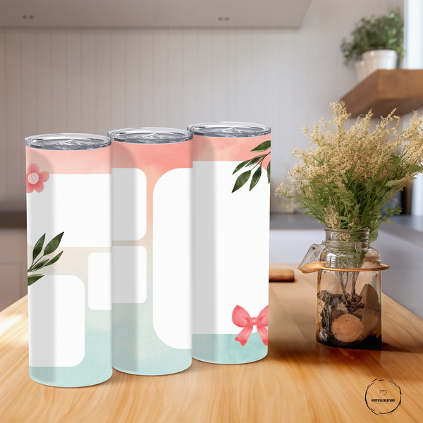 Elevate your daily hydration routine with our Gradient Floral Photo Tumbler. Adorned with delicate florals, a charming bow, and a beautiful gradient design, this tumbler holds your drink hot for up to 6 hours and cold for up to 24 hours. Personalize it with a name and showcase up to 4 photos. Stay hydrated and stylish!
