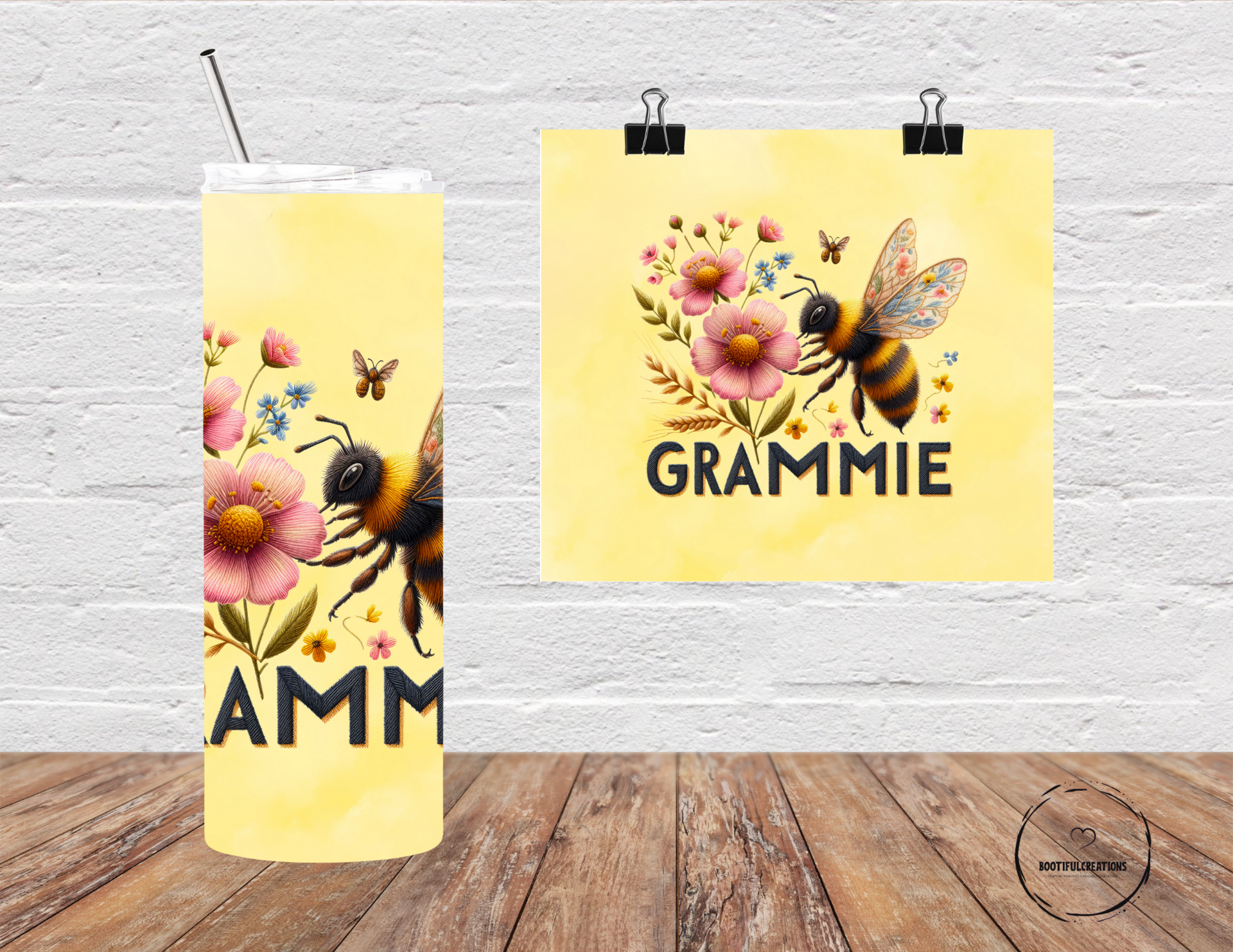 Stay hydrated with the Grammie Tumbler! Featuring a charming bumblebee and floral design, this tumbler keeps drinks hot for up to 6 hours and cold for up to 24 hours. Personalize with a name for a unique touch. Perfect for the passionate "Grammie" in your life!