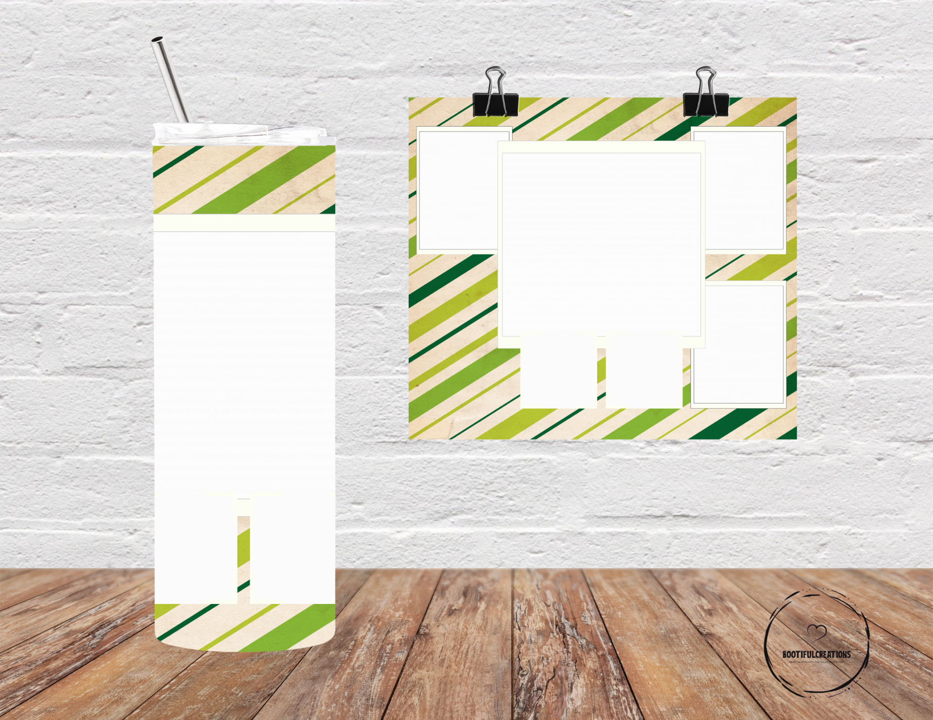 Stay hydrated in style with our Green Striped Photo Tumbler! Keep your favorite drinks hot for up to 6 hours and cold for up to 24 hours. Adorned with green stripes and customizable with a name, this tumbler also features 6 photo spaces for a personal touch. Get yours today!