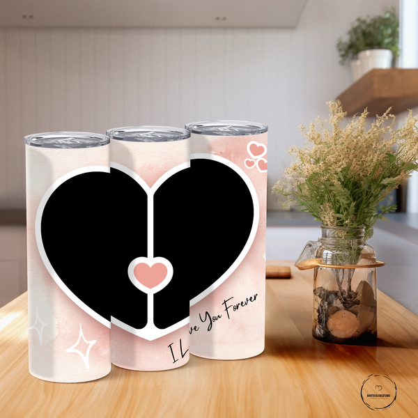 Show your love with the I Love You Forever Heart Photo Tumbler. The soft pink gradient background and elegant "I Love You Forever" phrase in black cursive make it a romantic gift. Keep drinks hot for up to 6 hours and cold for up to 24 hours. Personalize with a name and add 2 photos to make it truly special.