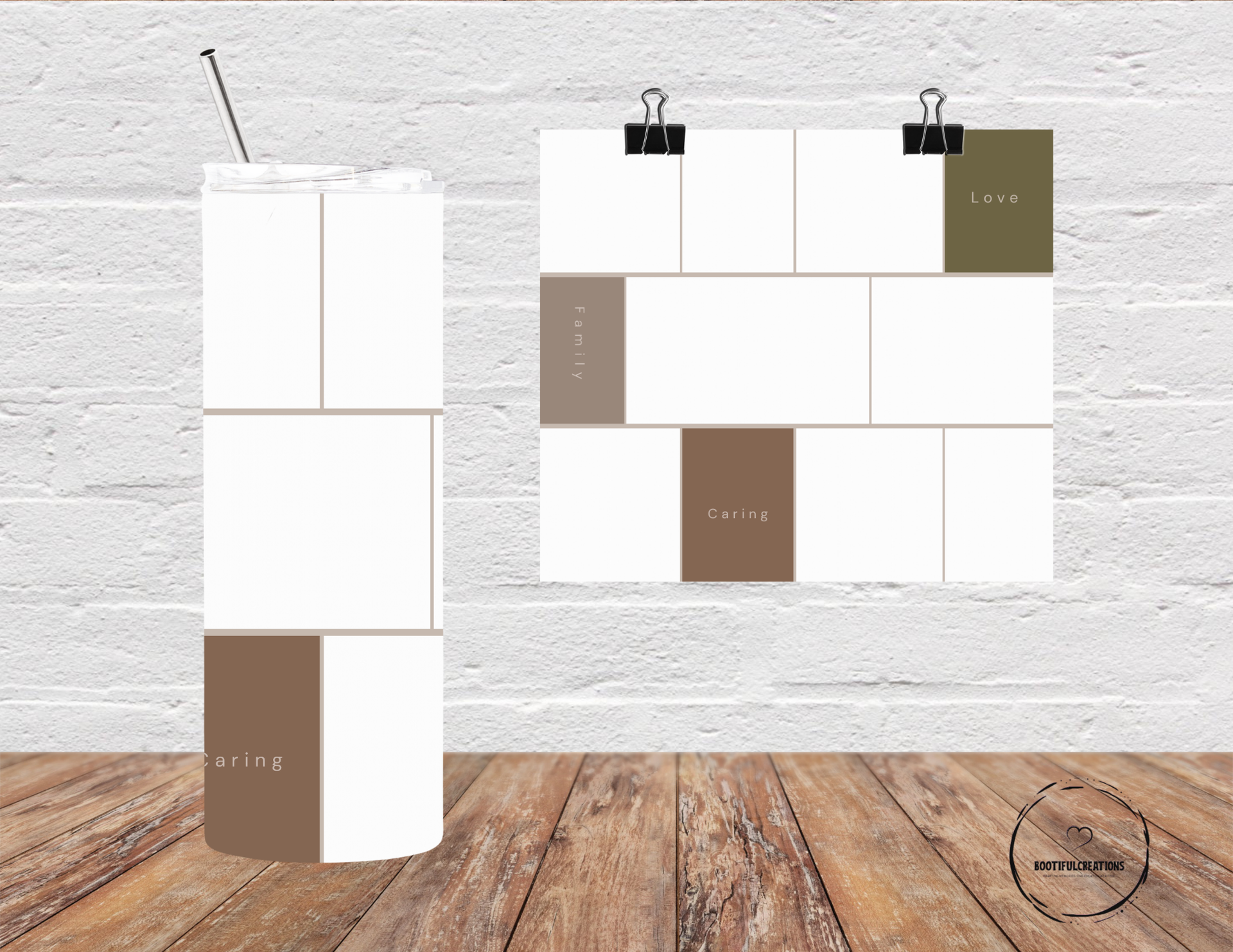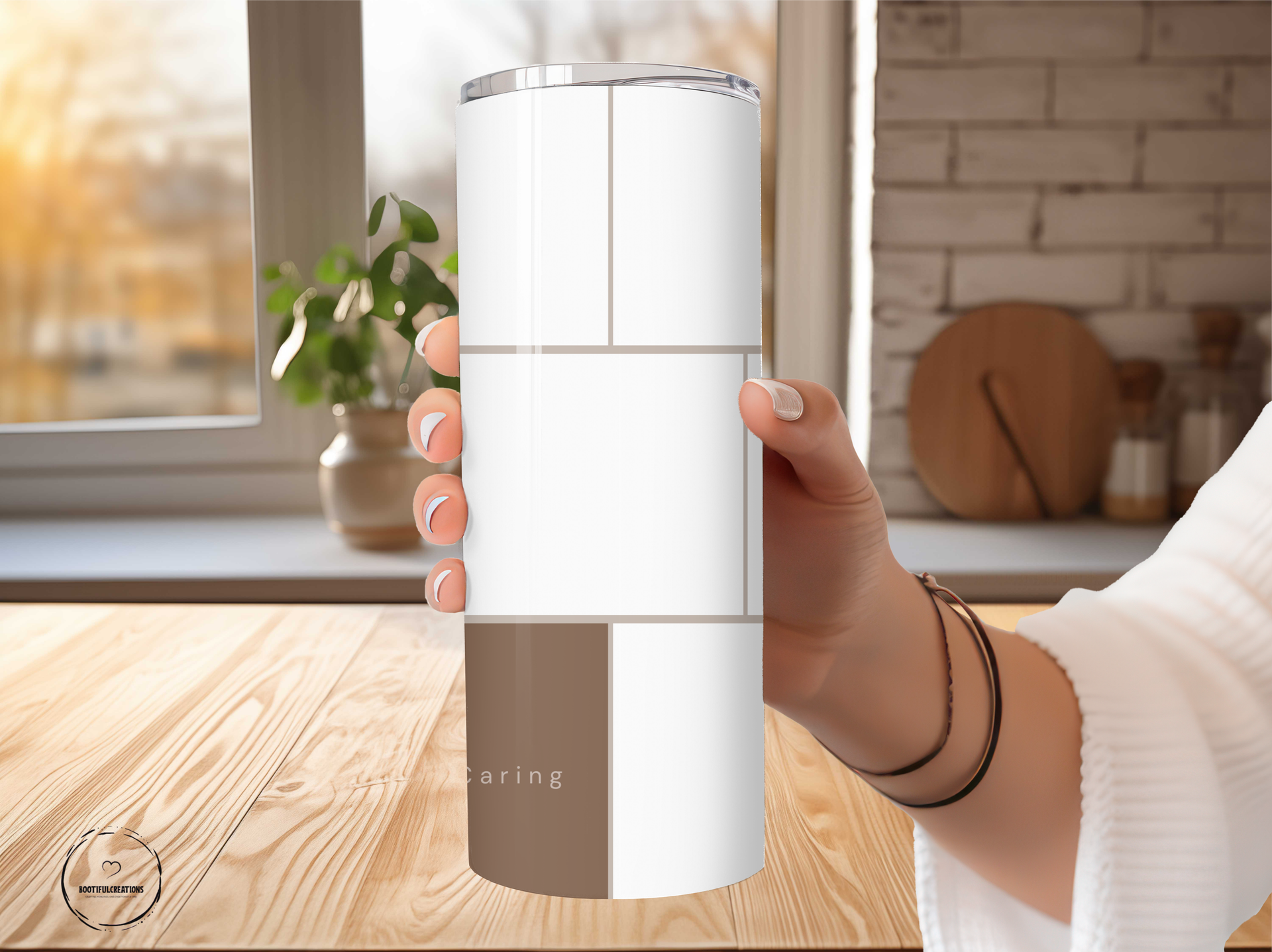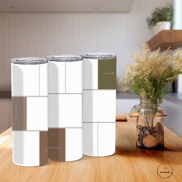 Stay inspired on the go with our Inspirational Minimalist Photo Tumbler! The modern, white design features subtle brown accents and inspirational words like "Family" and "Love." Keep your drinks hot for up to 6 hours or cold for up to 24 hours. Personalize it with a name and showcase up to 8 photos.