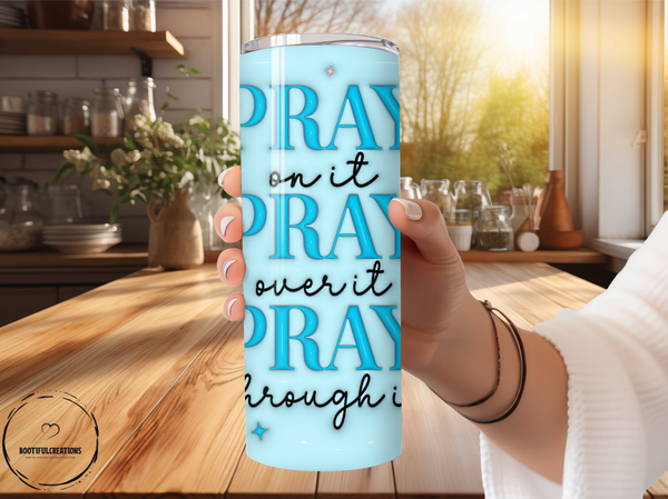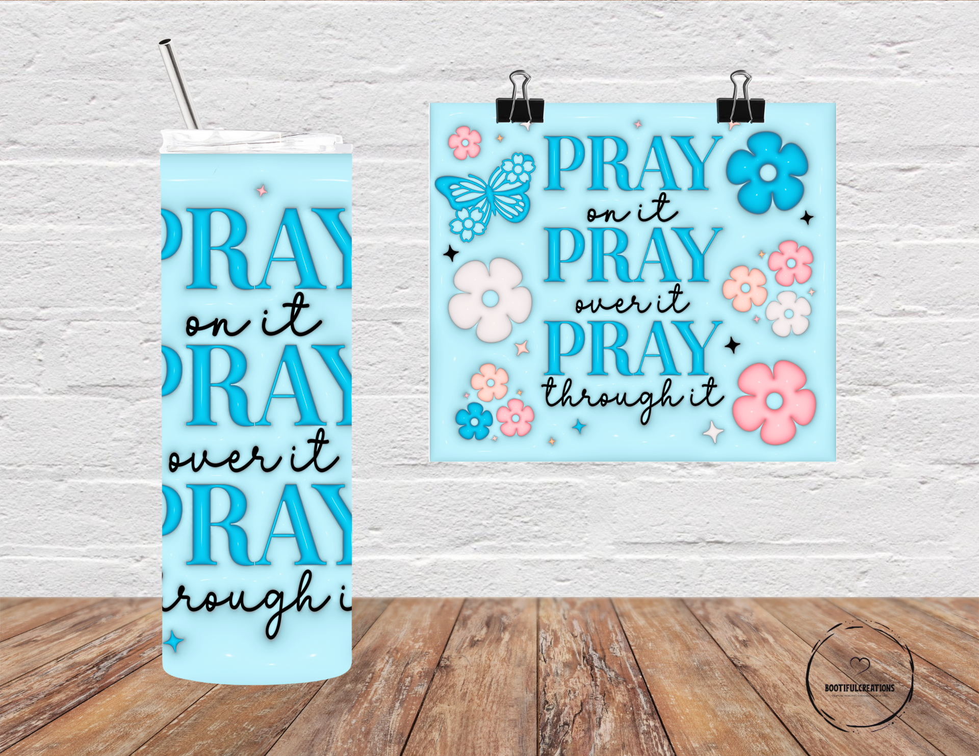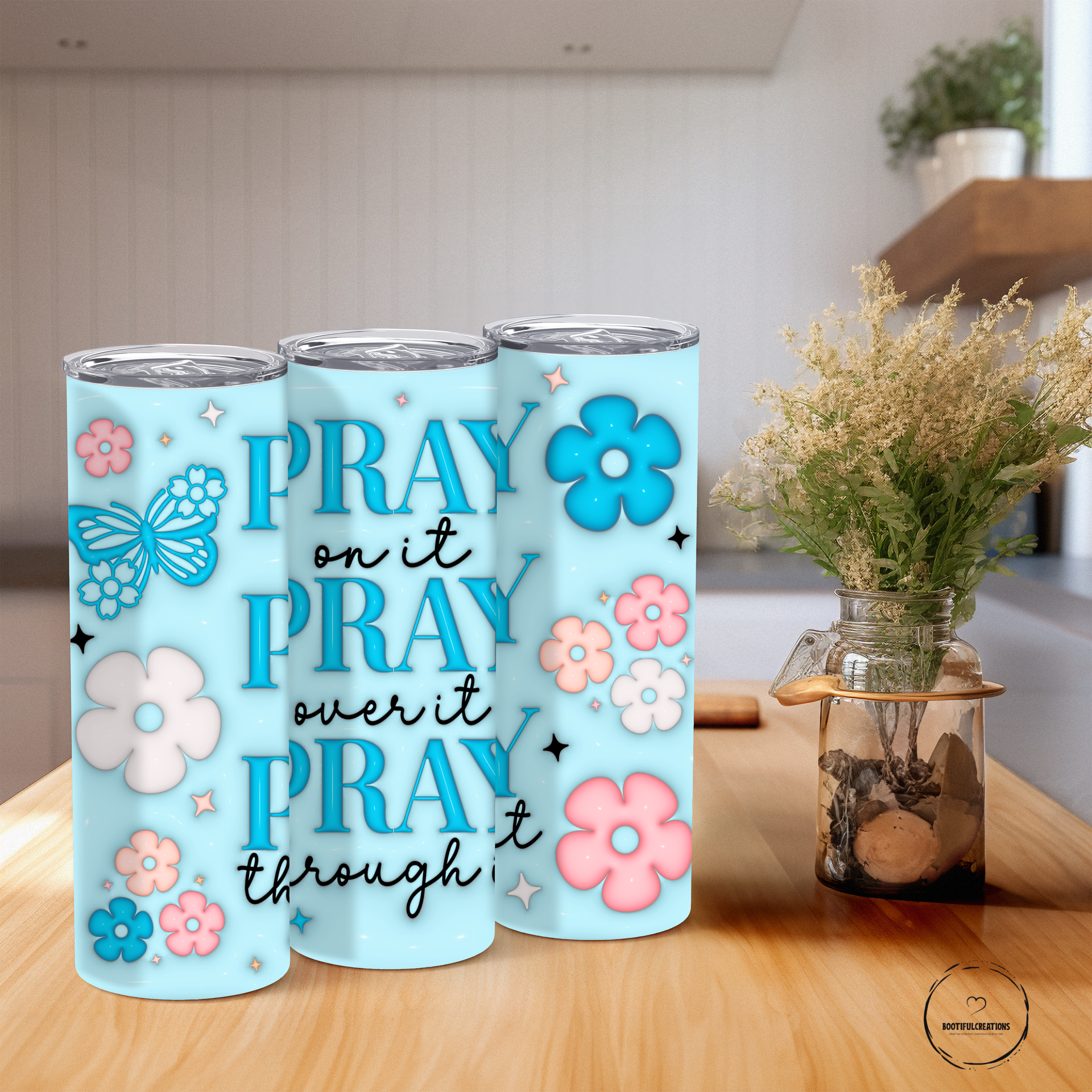 Introducing the 'Pray On It' Floral Tumbler, a must-have for those who believe in the power of prayer. Keep your drinks hot for up to 6 hours and cold for up to 24 hours. The beautiful floral design and the option to personalize with a name makes it the perfect gift for any occasion. Stay hydrated and inspired with this tumbler.
