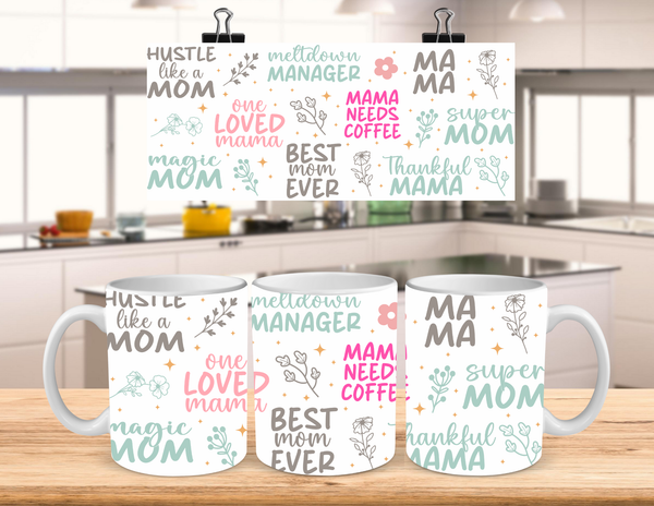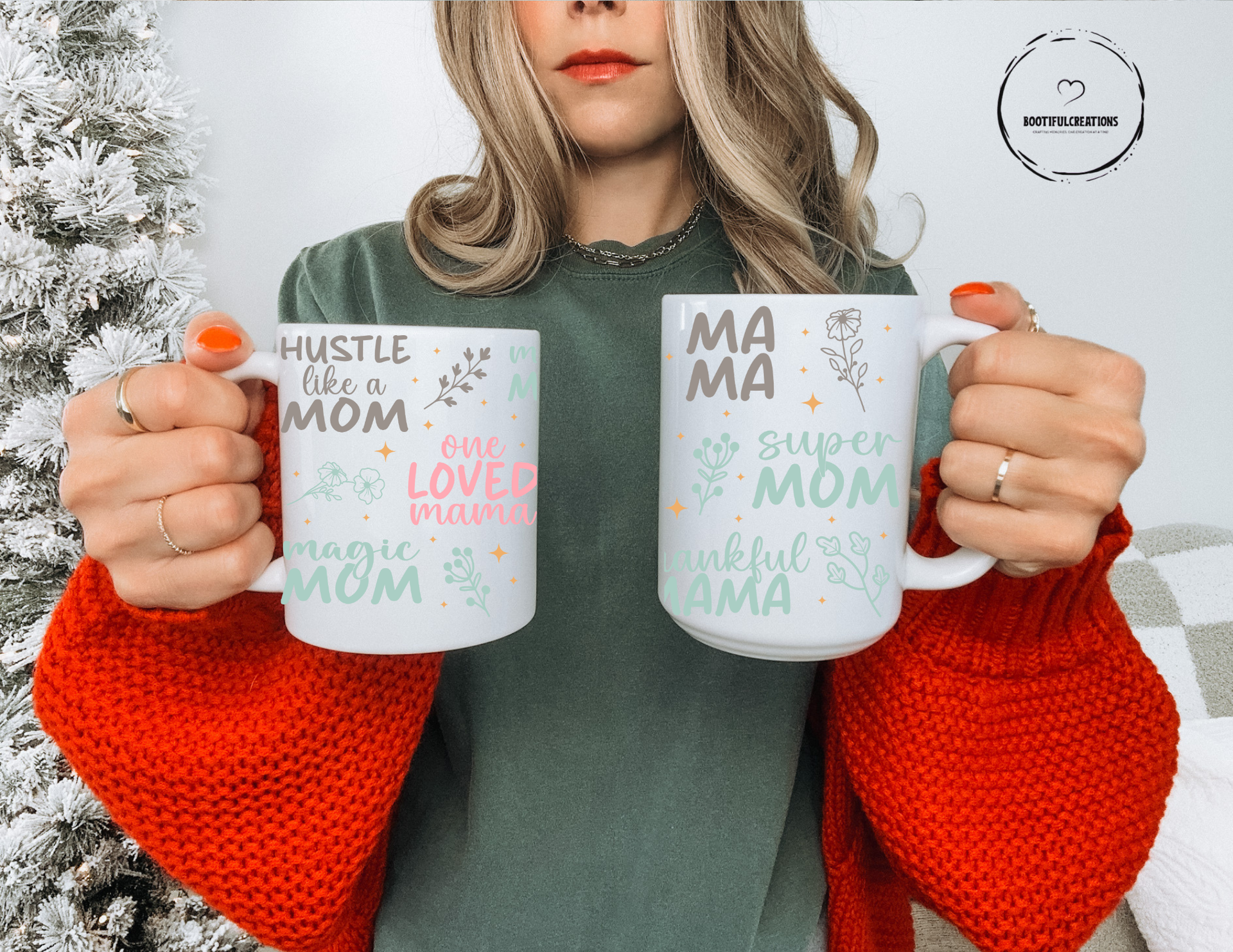 Sip your morning coffee in style with our Loving Mom Sayings Coffee Mug! This ceramic mug comes in 11oz or 15oz and features charming phrases like "hustle like mom" and "one loved mama". Perfect for any busy mom who needs a boost. Treat yourself or give as a gift to the best mom ever!