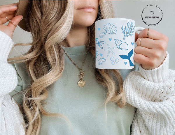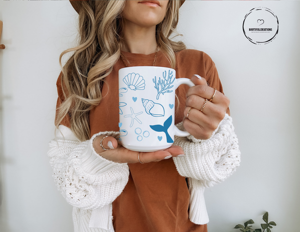 Indulge in some ocean vibes every morning with our Mermaid Coffee Mug! This beautiful ceramic coffee mug features a whimsical mermaid design and is available in both 11oz and 15oz sizes. Start your day off right with a touch of magic and style in every sip.