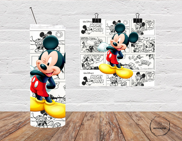 Introducing the must-have Mickey Mouse Comic Strip Tumbler! Keep your drinks hot for up to 6 hours and cold for up to 24 hours with its insulated design. Featuring a fun comic strip background and the beloved Mickey Mouse, this tumbler can even be personalized with a name for a truly unique touch. Perfect for Disney lovers and on-the-go convenience!
