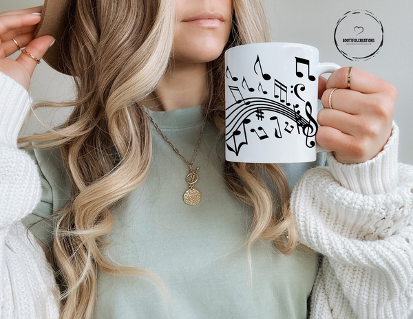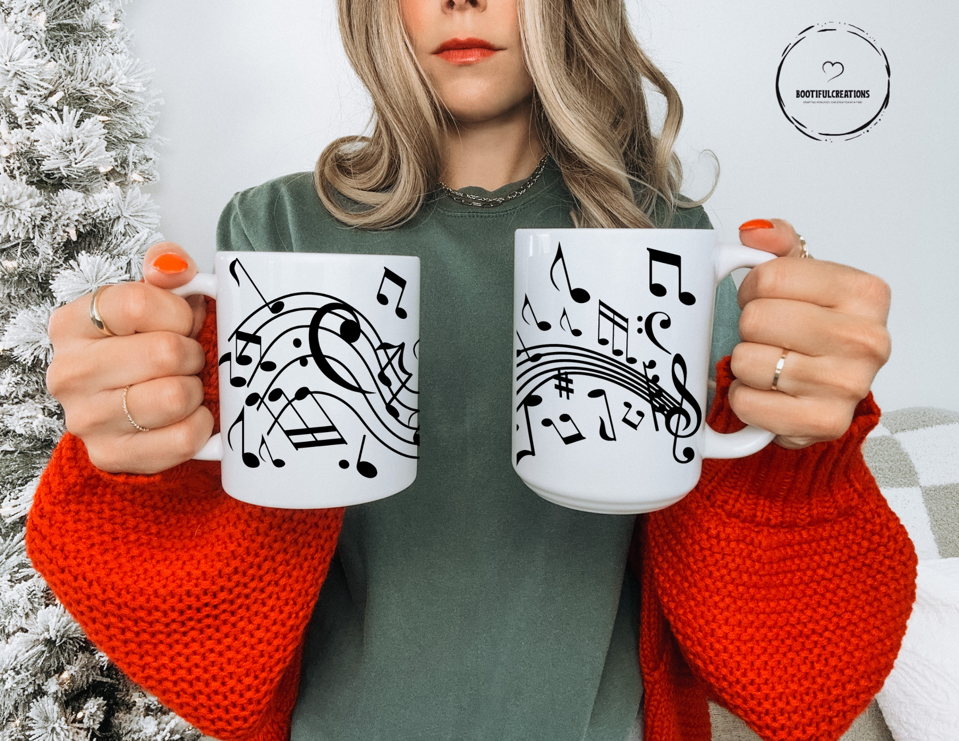 Start your day with a symphony of flavor and style with our Musical Notes Coffee Mug! This unique ceramic mug features elegant musical notes and is available in both 11oz and 15oz sizes. Perfect for any music lover, this mug will inspire your senses and elevate your coffee experience. Order now!