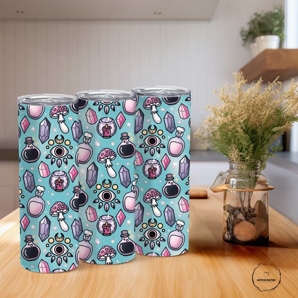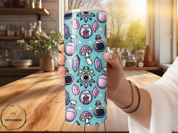 Indulge in the enchanting power of the Mystical Potion Pattern Tumbler. Keep your drinks hot for up to 6 hours and cold for up to 24 hours. Personalize it with a name for a truly magical touch. Perfect for those who believe in the power of potions and the importance of hydration.