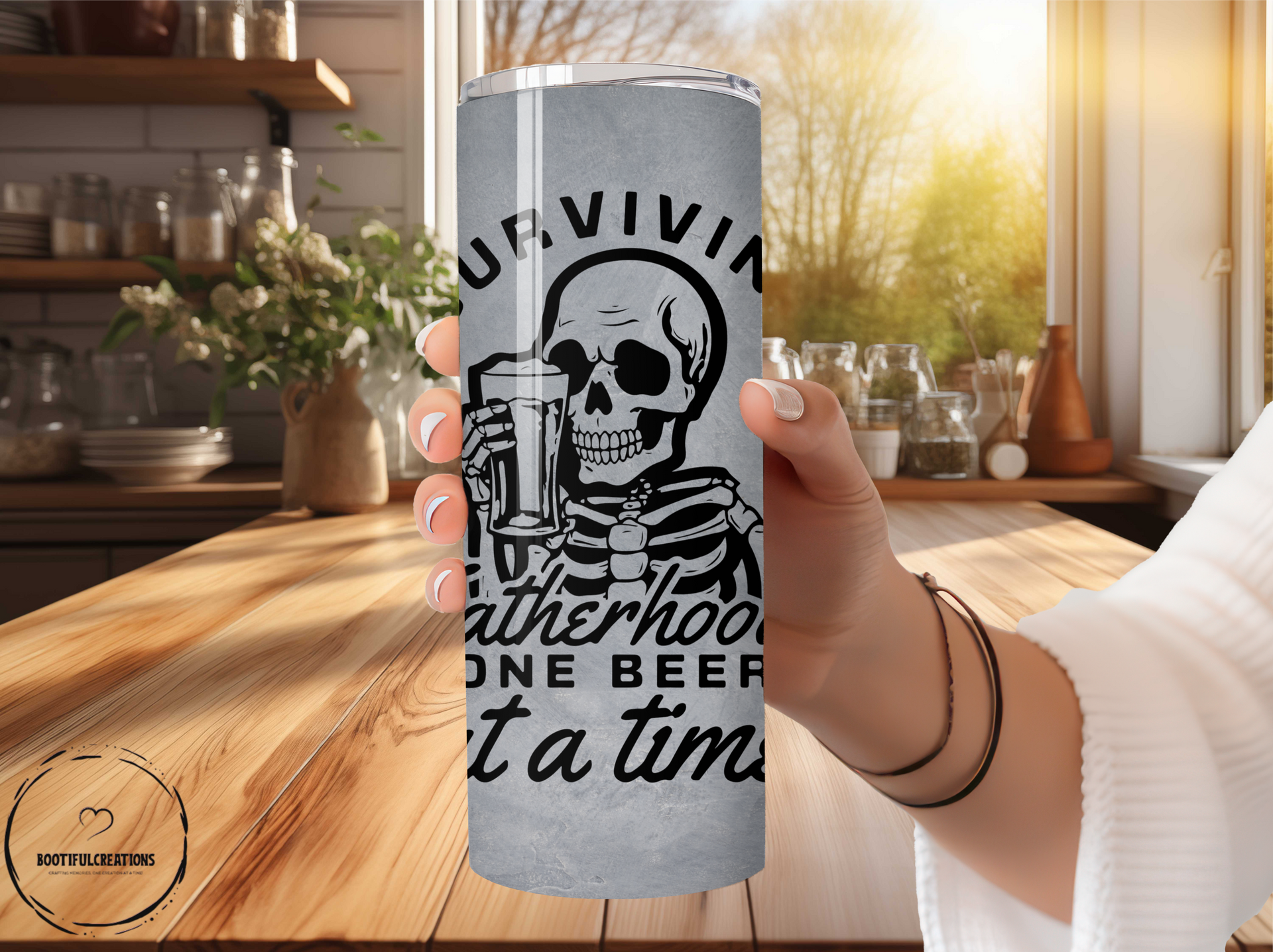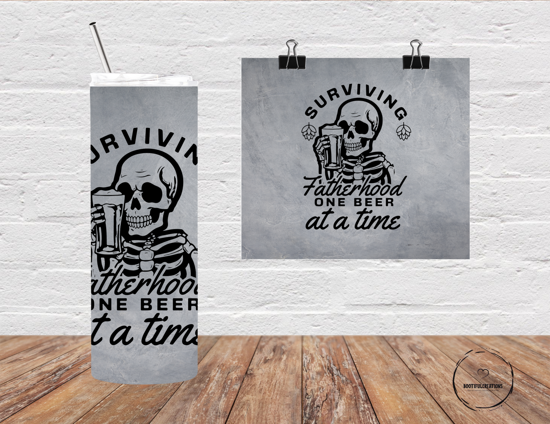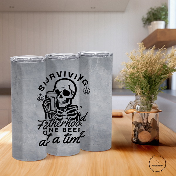 Introducing the One Beer at a Time Tumbler - the perfect accessory for any hard-working dad! With its durable design and ability to keep drinks hot for up to 6 hours and cold for up to 24 hours, it's the ideal gift for busy fathers. Plus, personalize it with a name for a truly one-of-a-kind present. Get yours today and start surviving fatherhood one beer at a time!